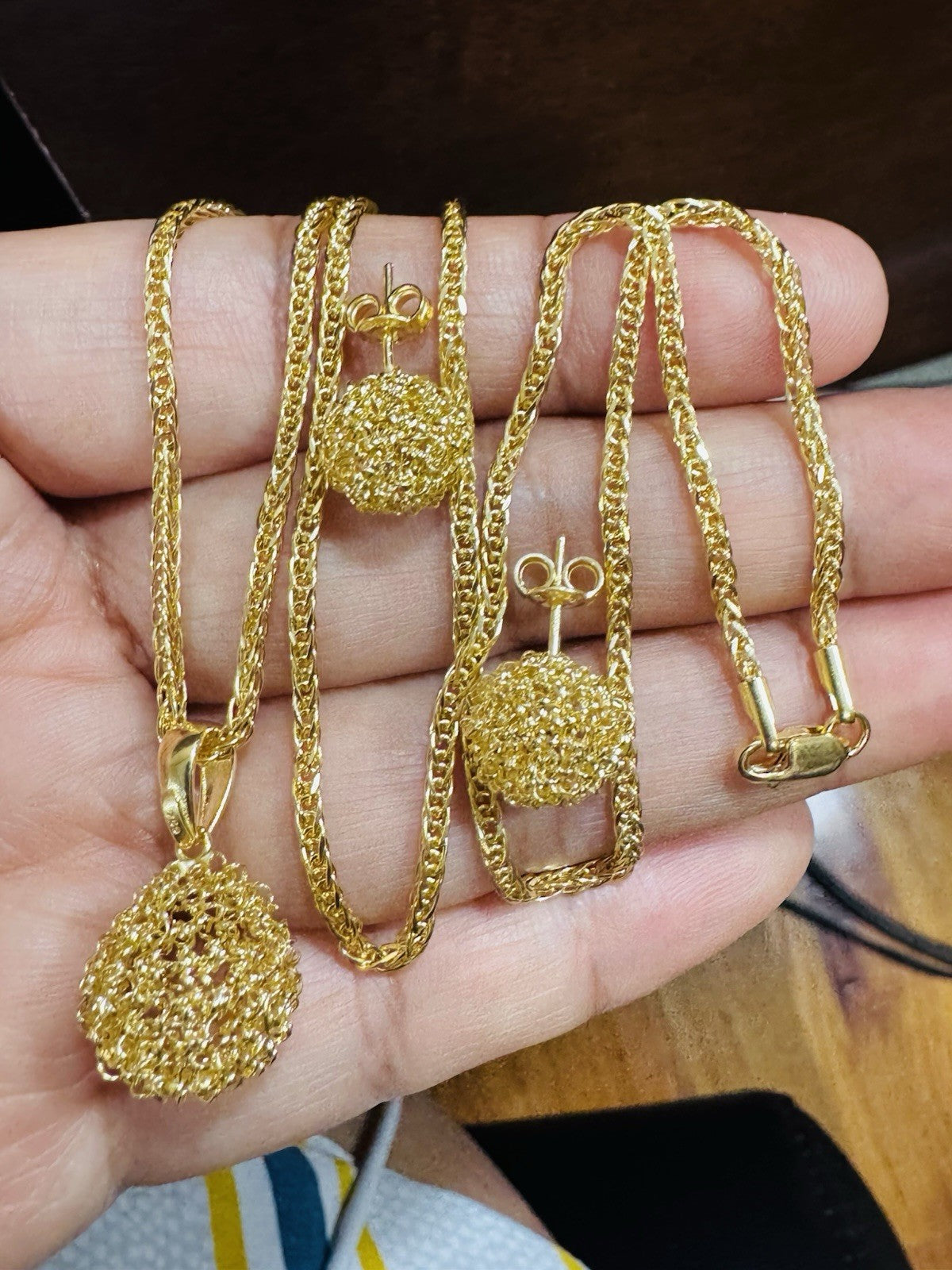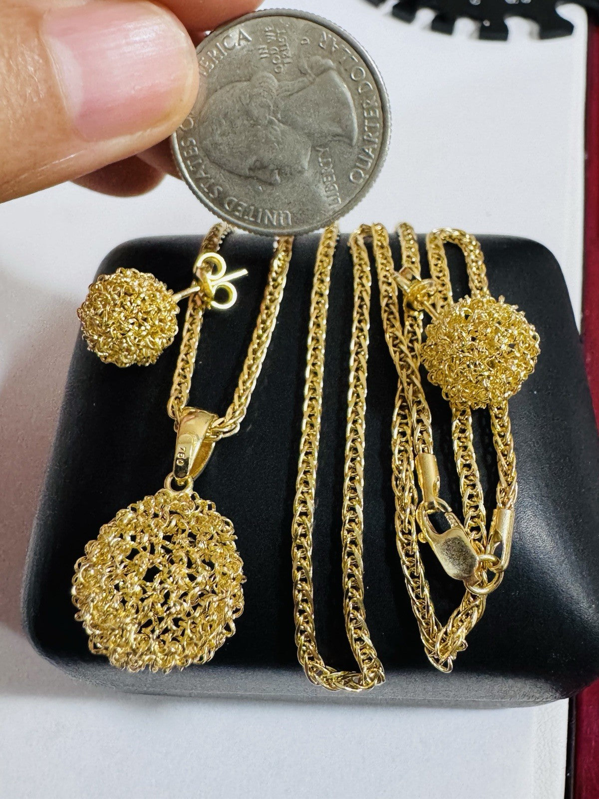 Metal: 18K Yellow Gold Set Earring & Necklace (Real and Genuine 18k Au750 Gold (Not Gold plated -Not Filled)