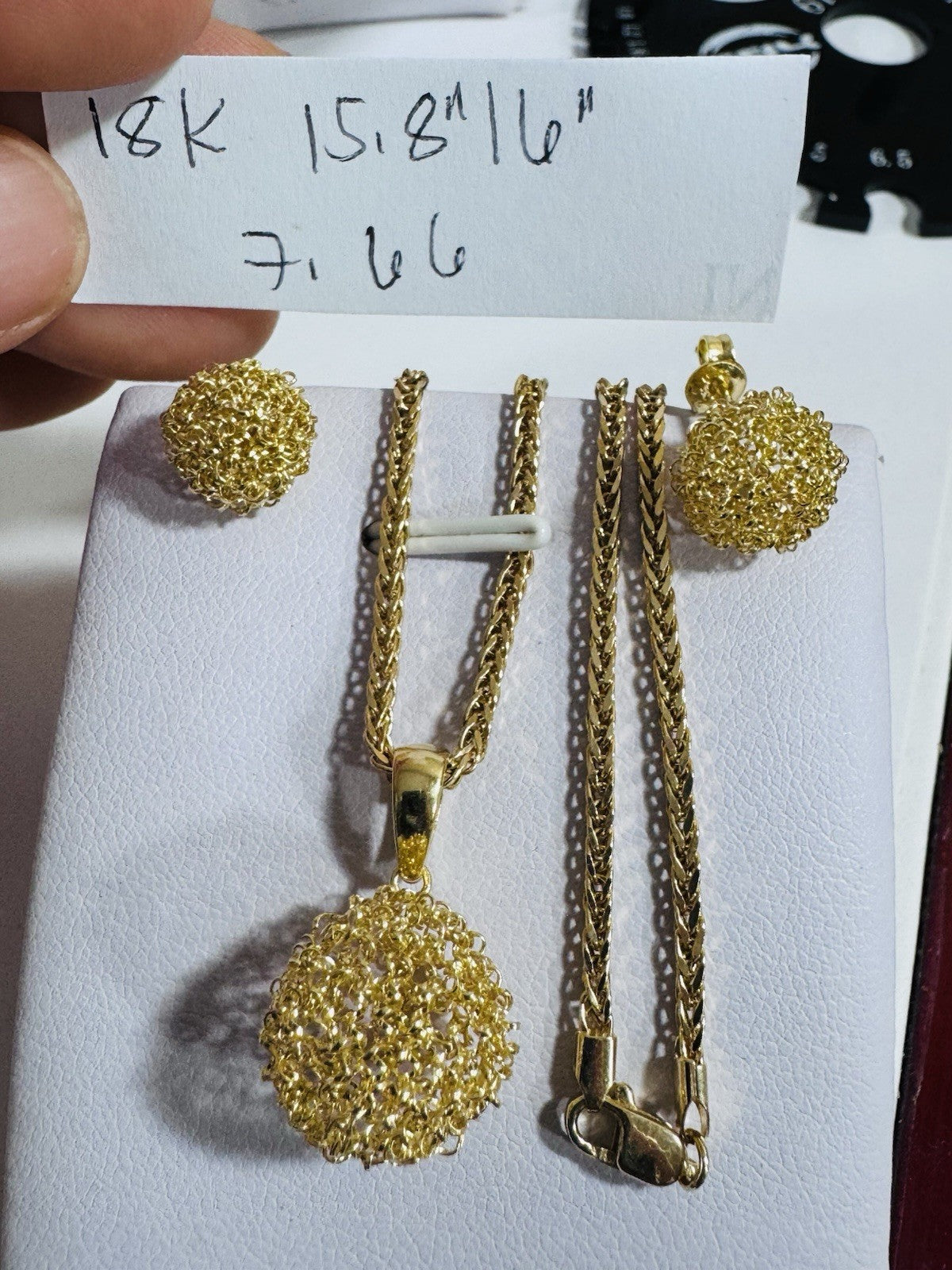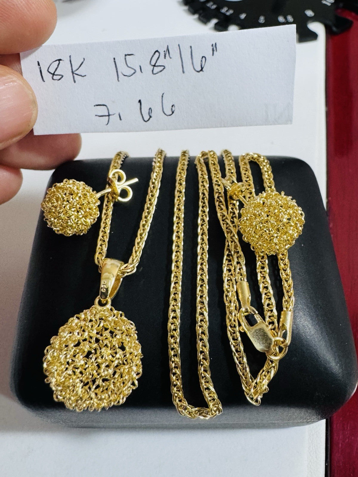 Pure 18K 750 DUBAI Gold Round Ball Earring & Necklace 15.8”/16” Long 2mm 7.66g