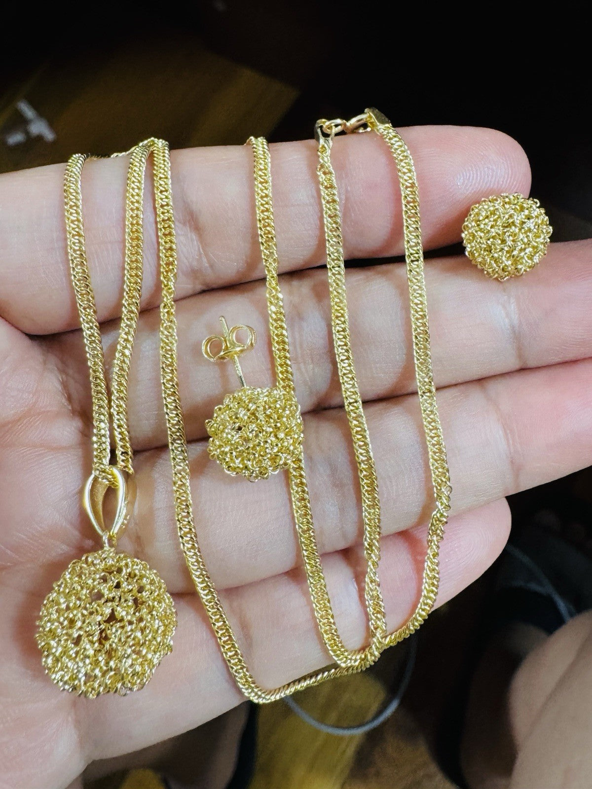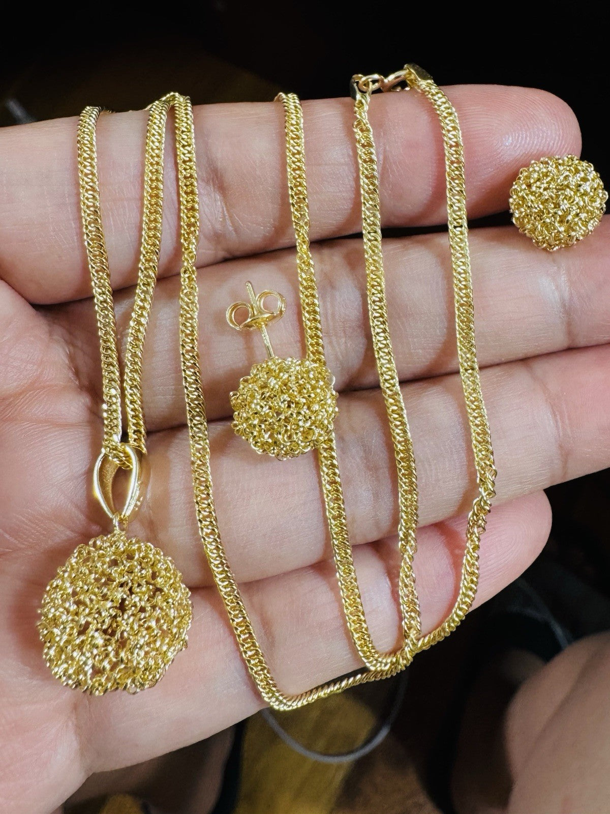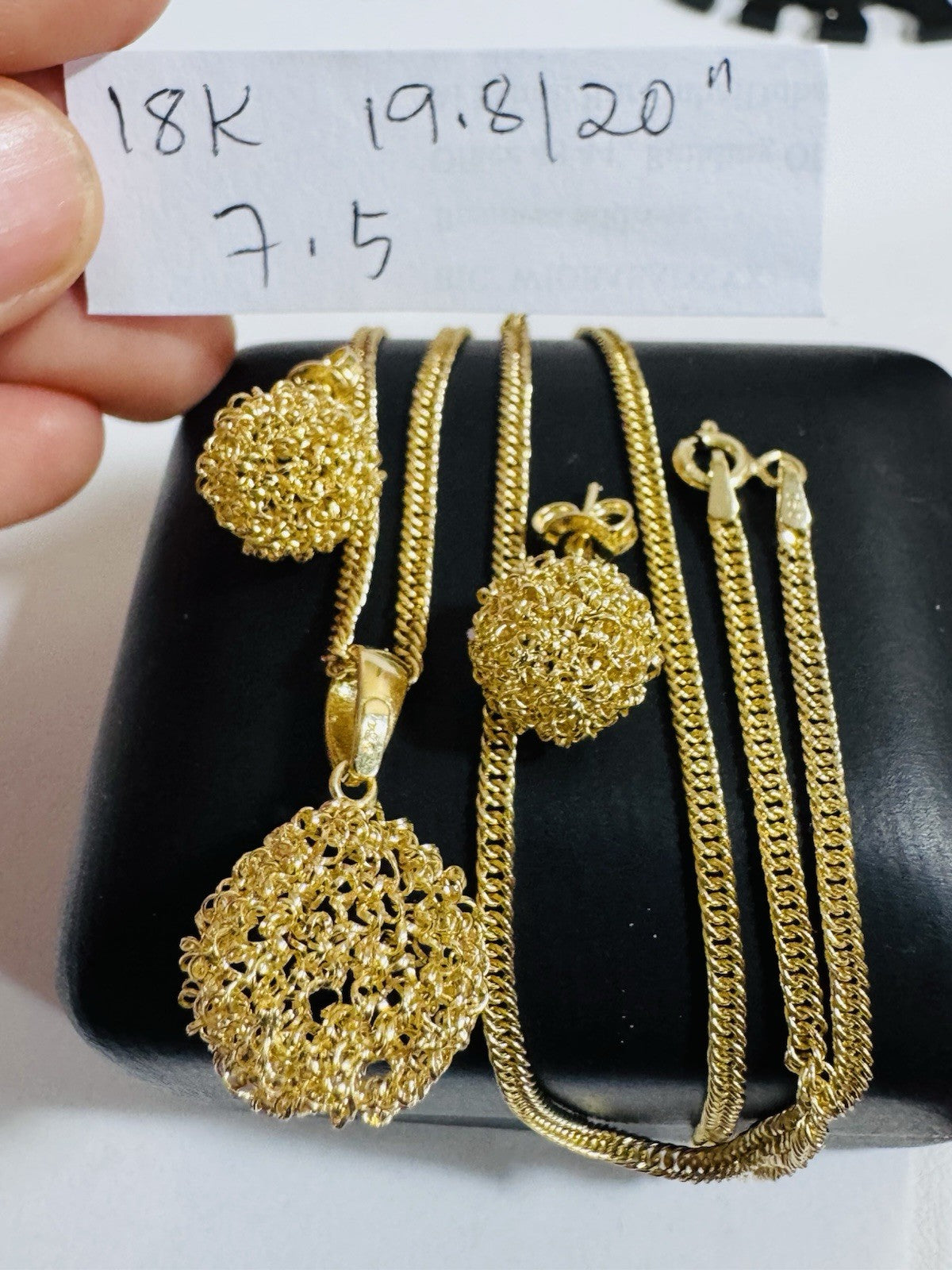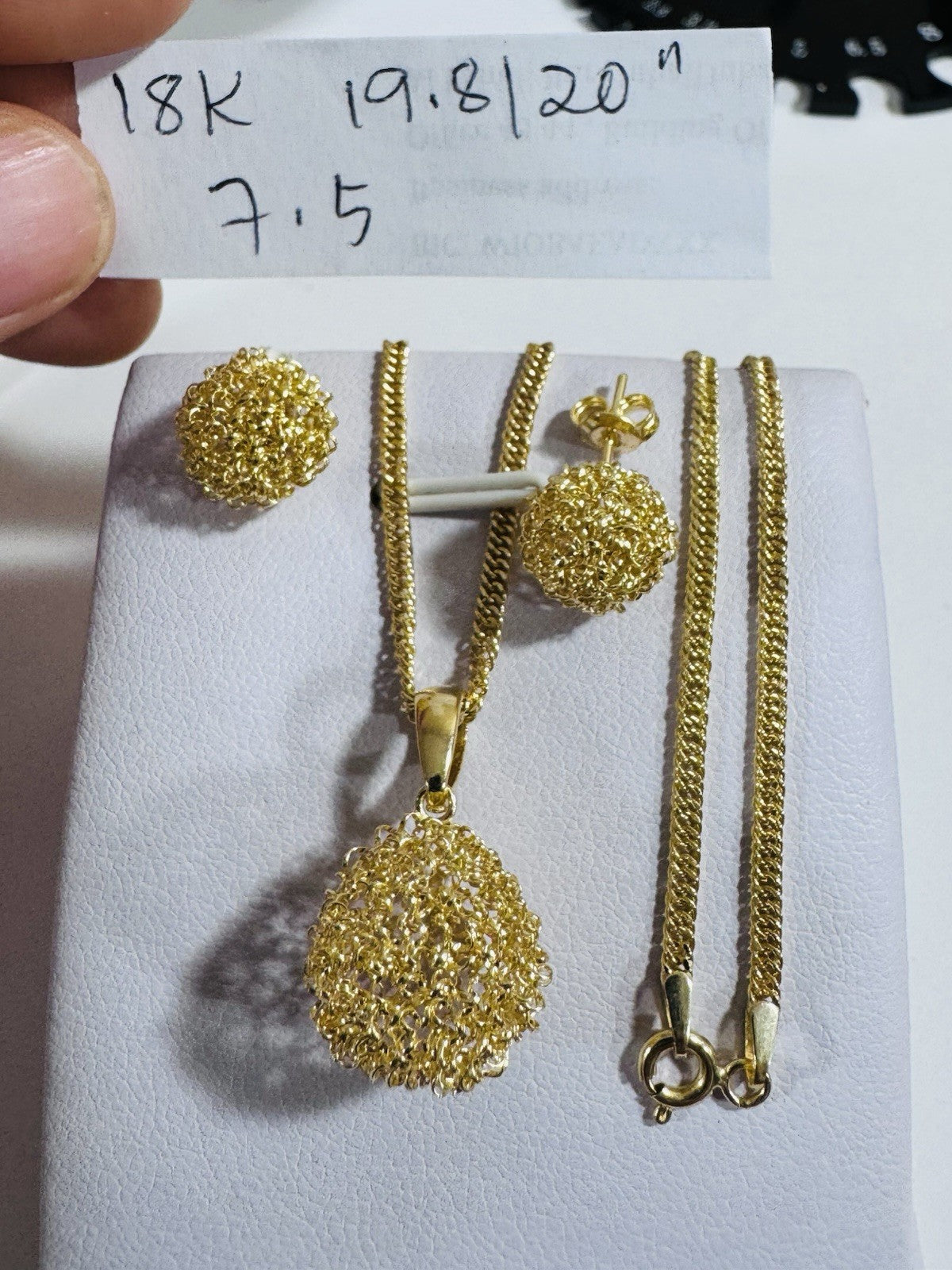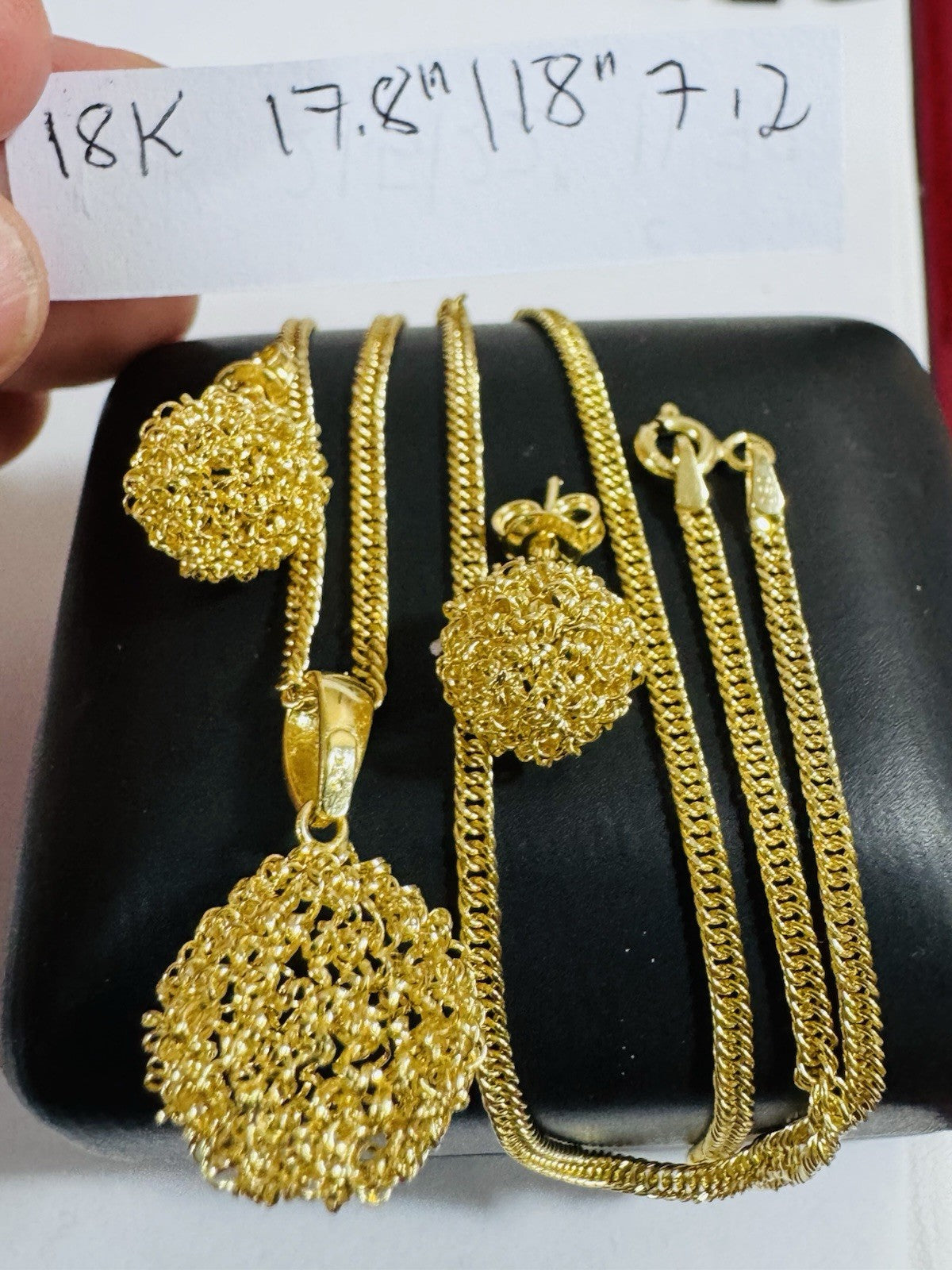 Metal: 18K Yellow Gold Set Earring & Necklace (Real and Genuine 18k Au750 Gold (Not Gold plated -Not Filled)