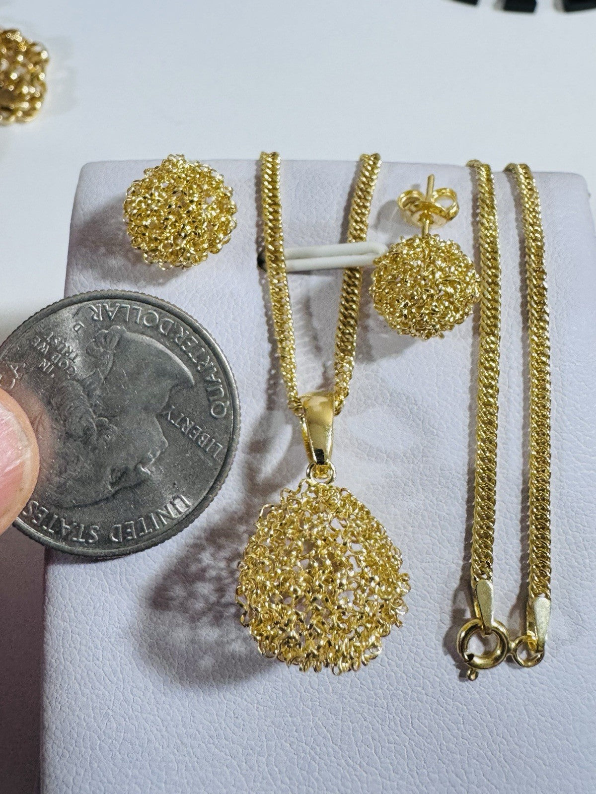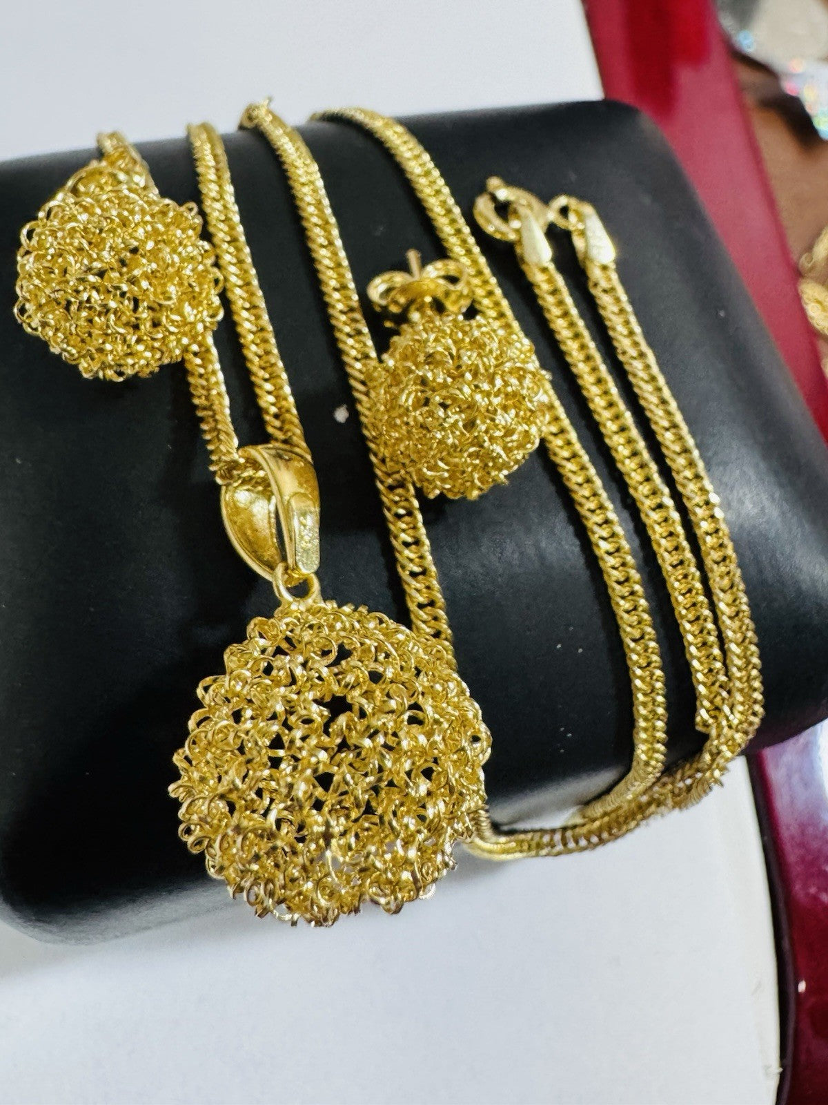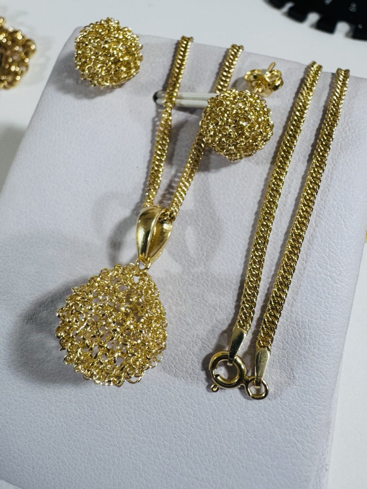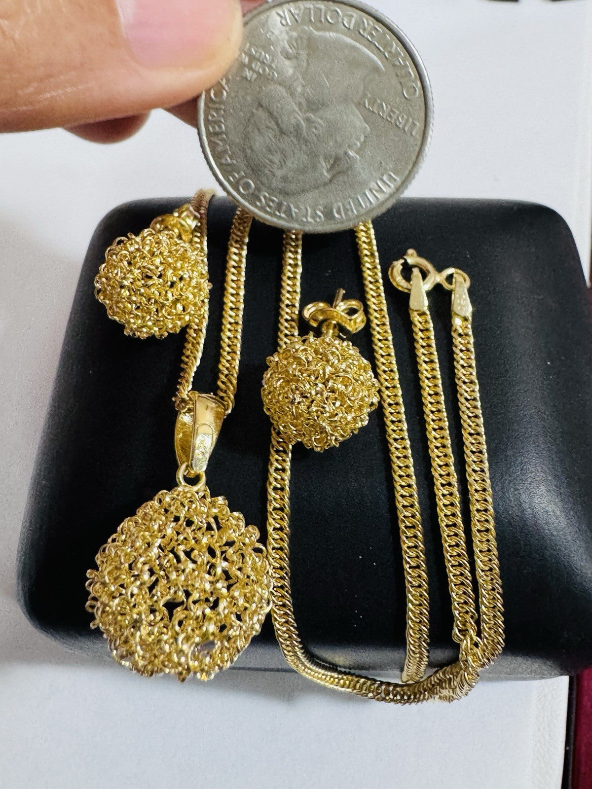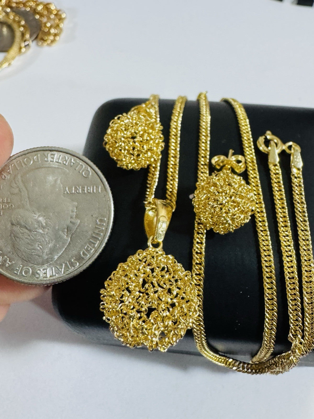 Metal: 18K Yellow Gold Set Earring & Necklace (Real and Genuine 18k Au750 Gold (Not Gold plated -Not Filled)
