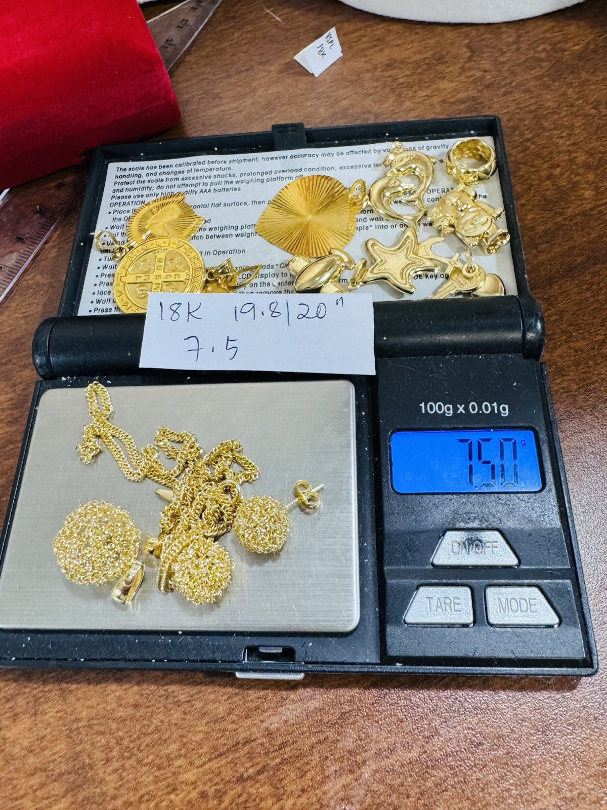 Pure 18K 750 DUBAI Gold Round Ball Earring & Necklace 19.8”/20” Long 2.2mm 7.5g