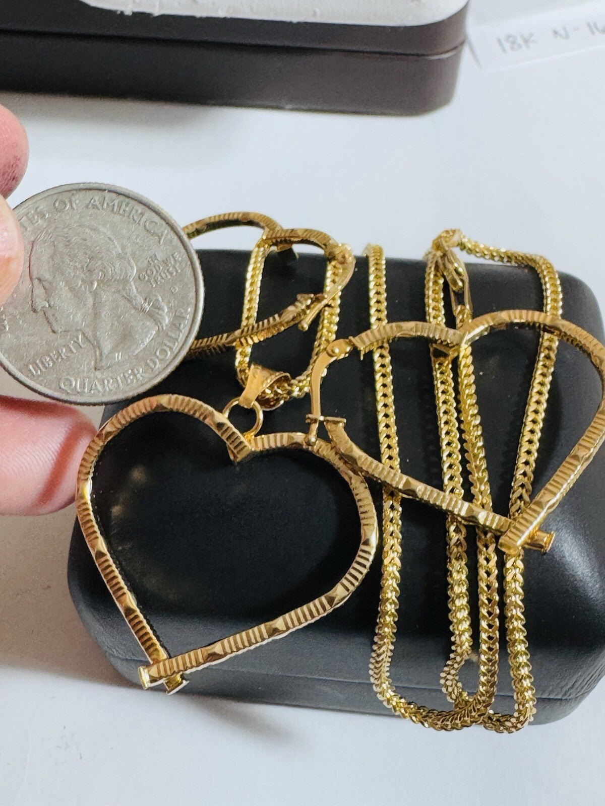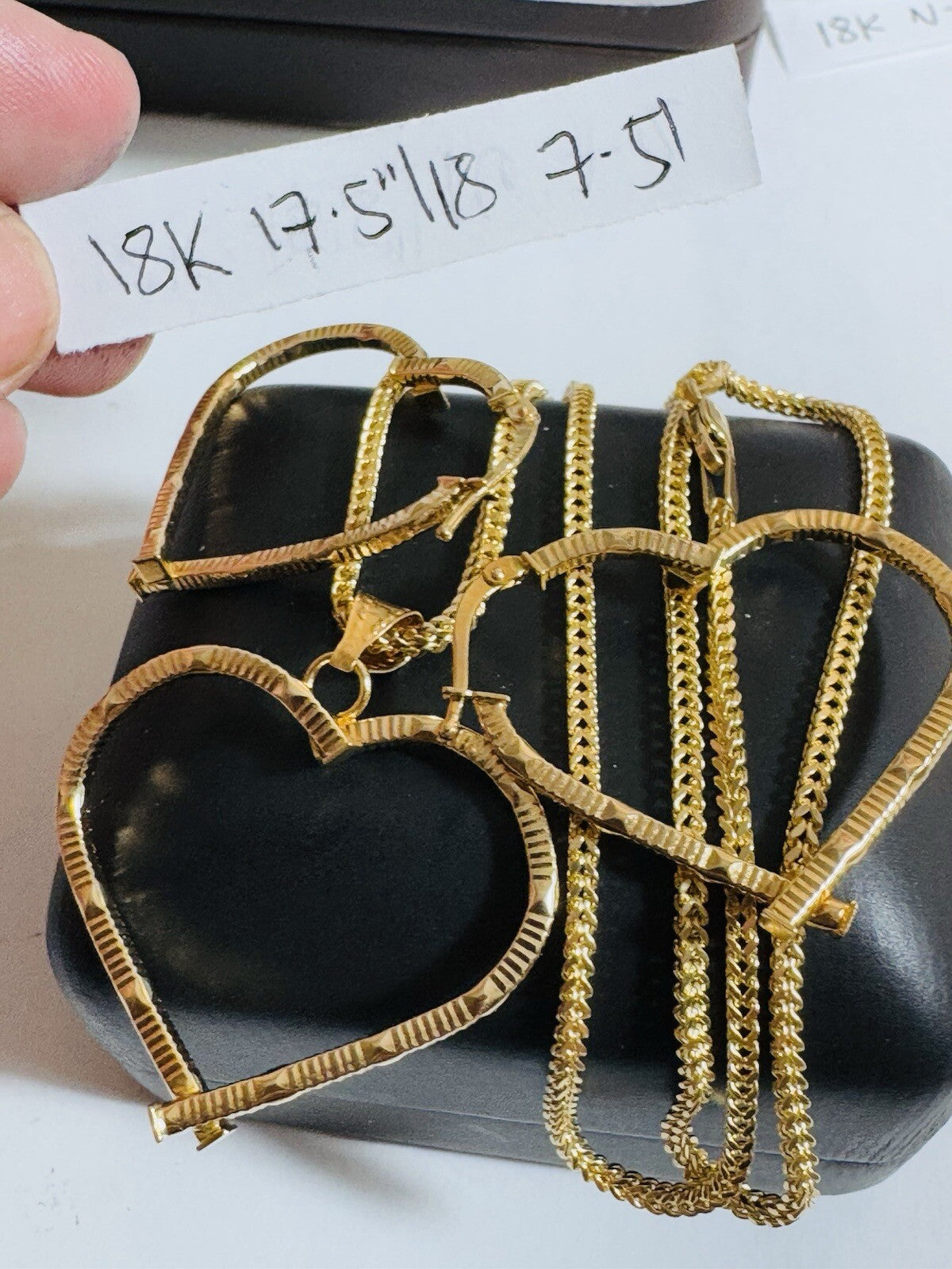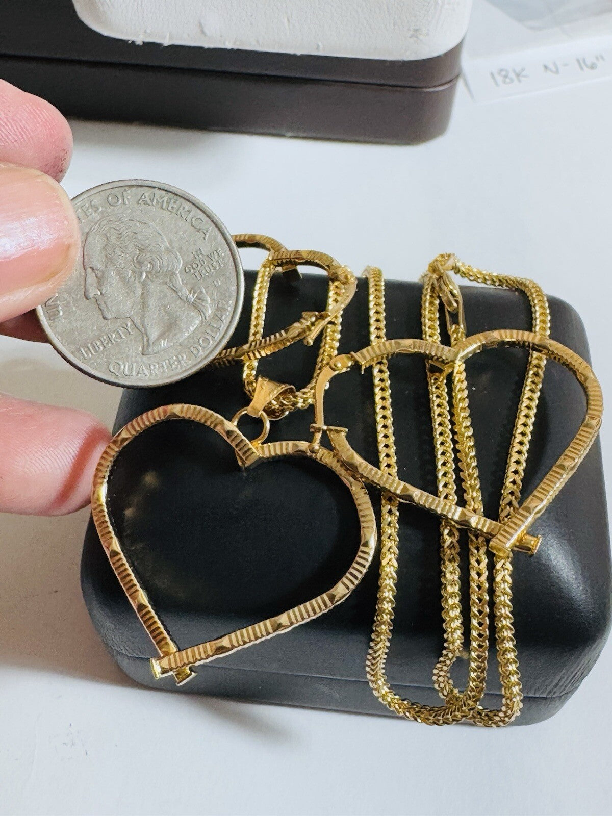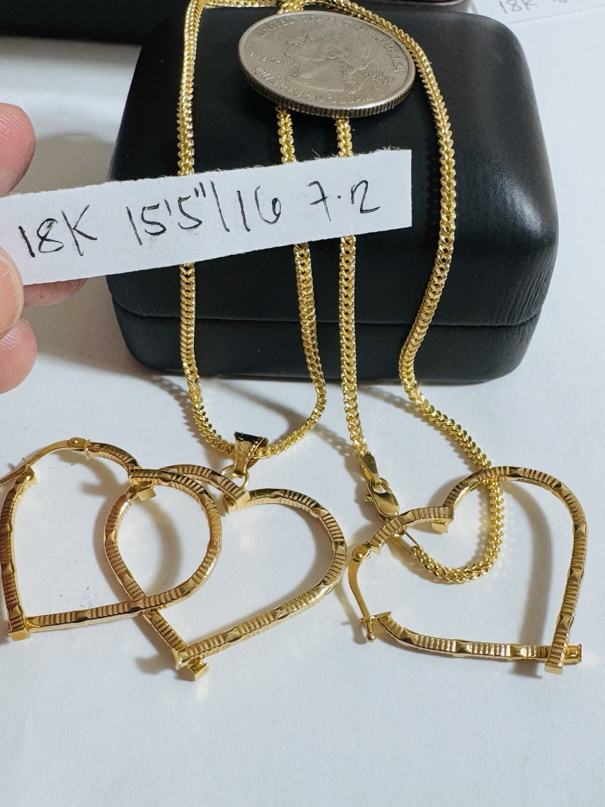 Real 18K 750 Saudi Pure Gold Heart Earring & Necklace 15.6”/16” Long 2.5mm 7.2g