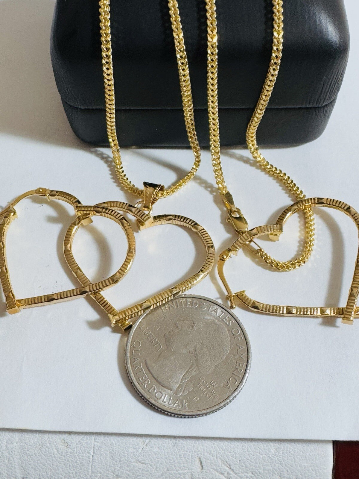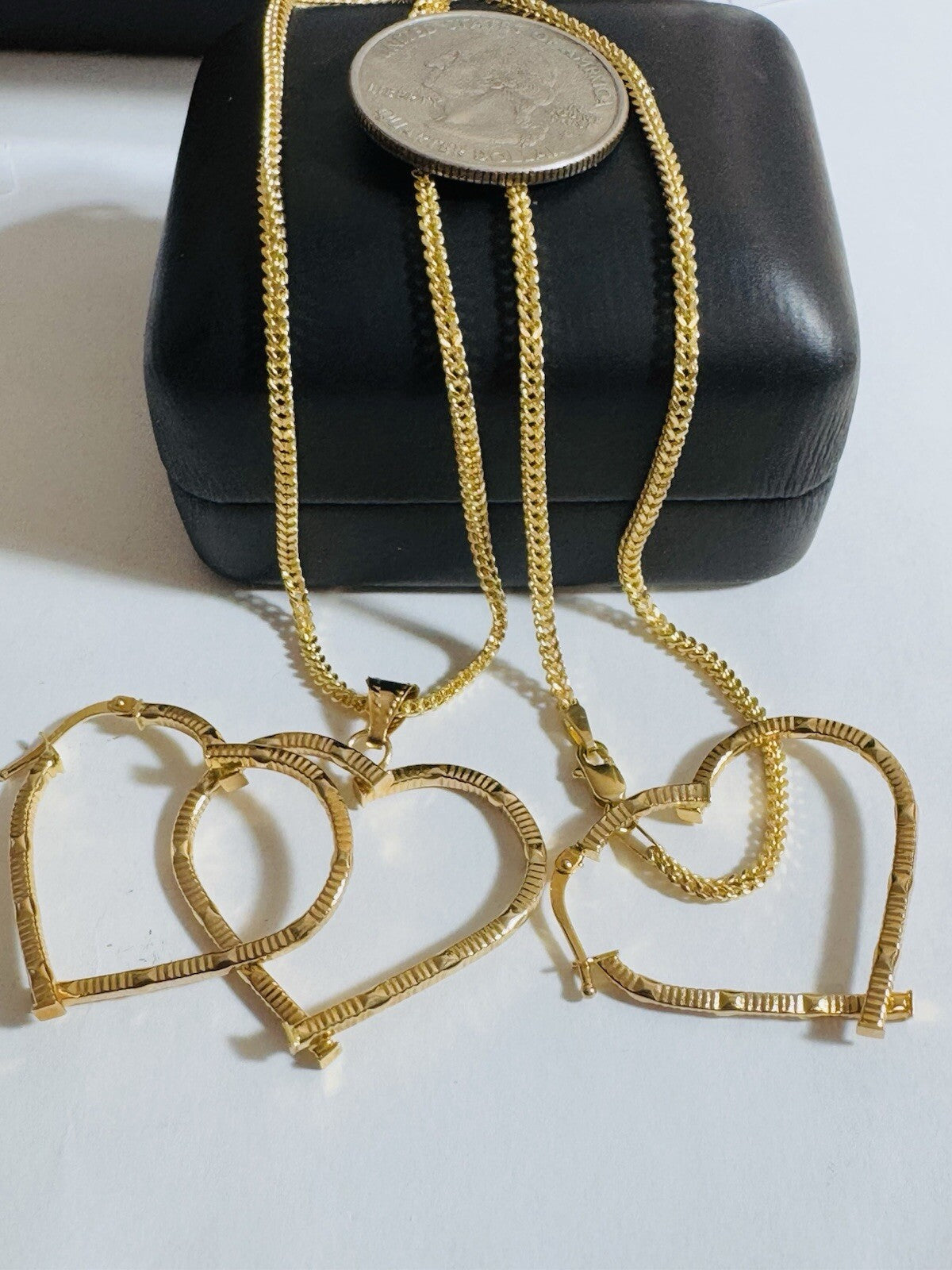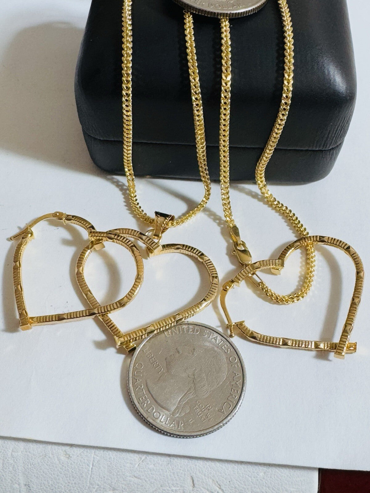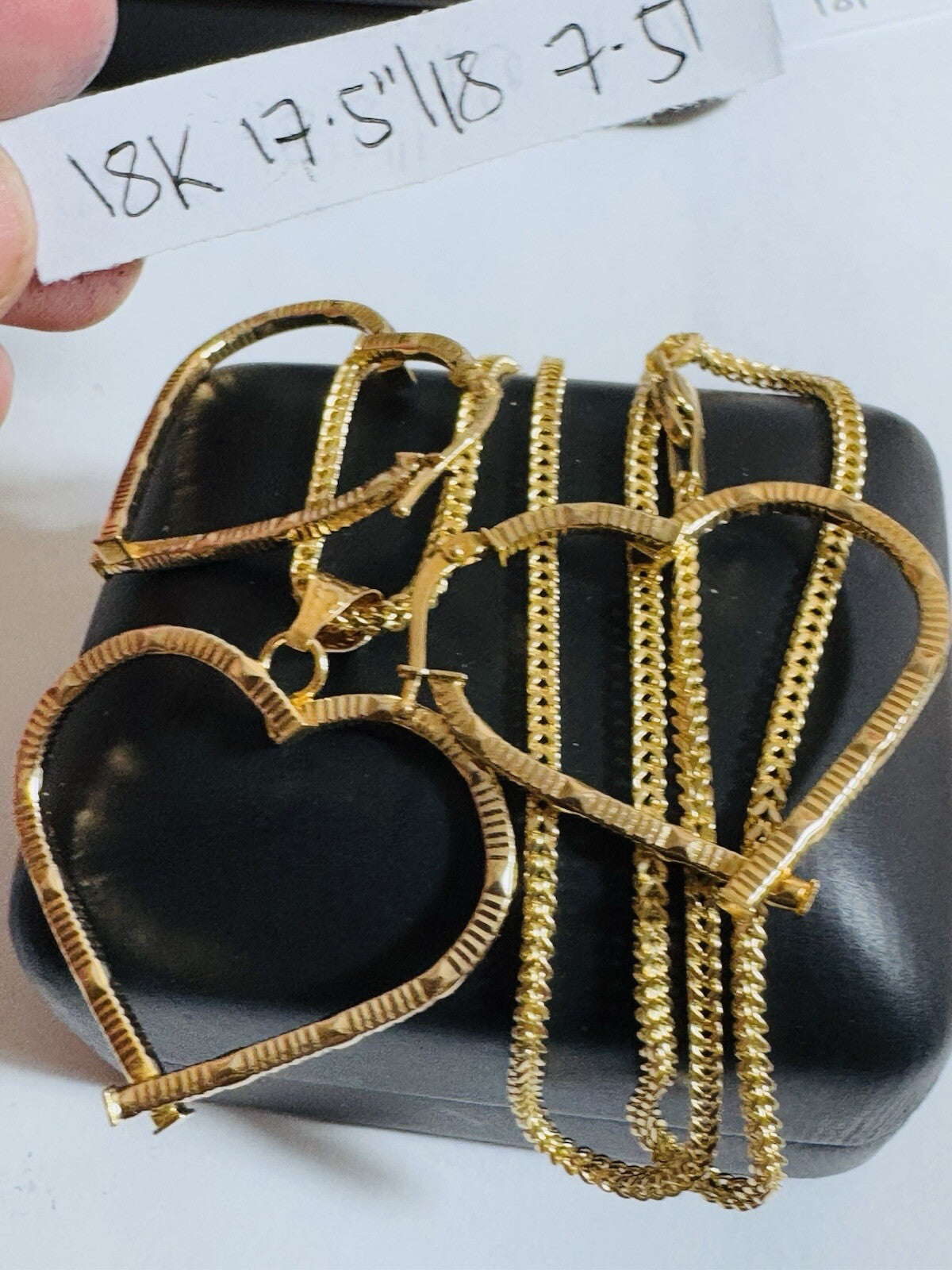 Real 18K 750 Saudi Pure Gold Heart Earring & Necklace 15.6”/16” Long 2.5mm 7.2g