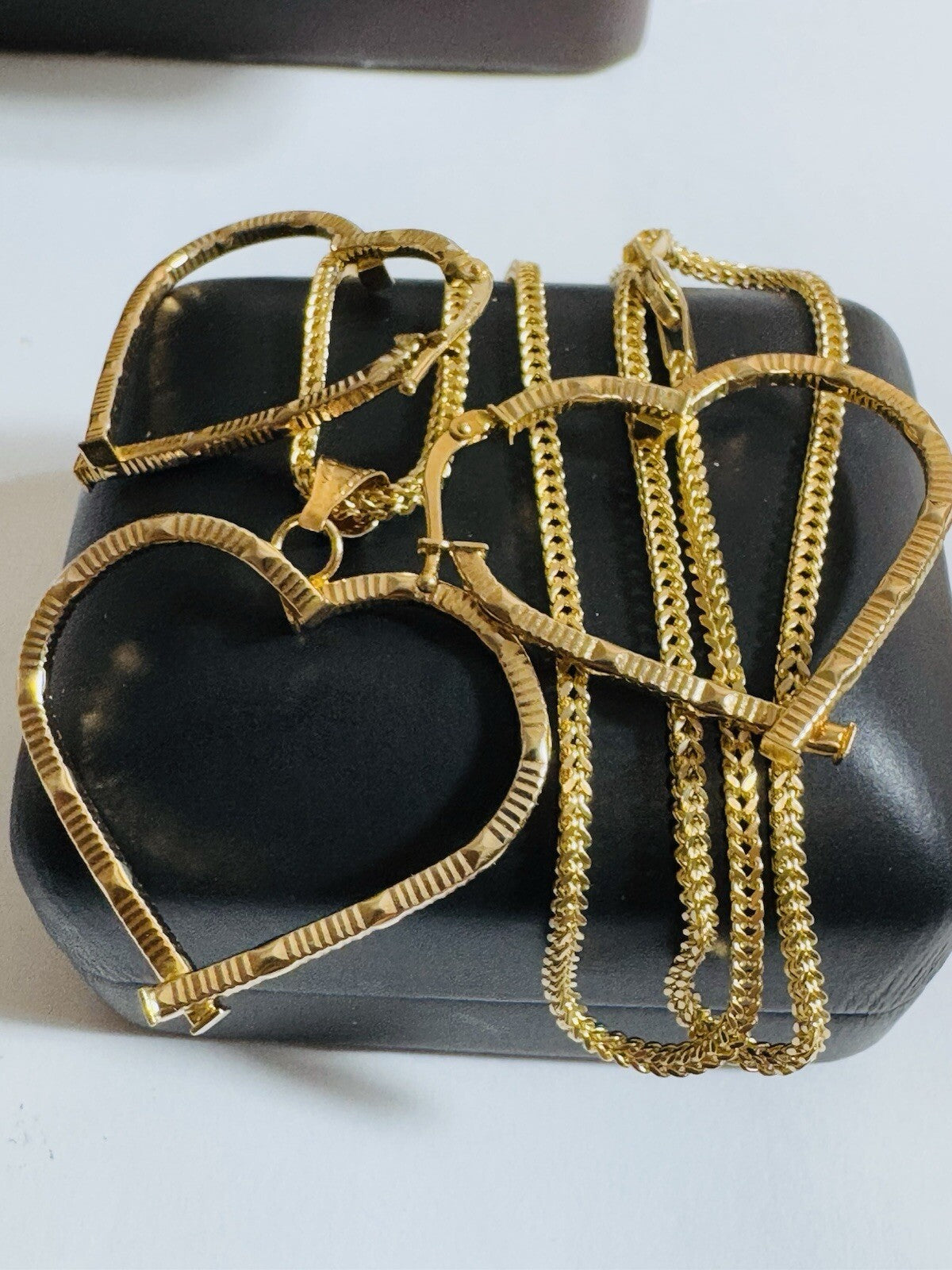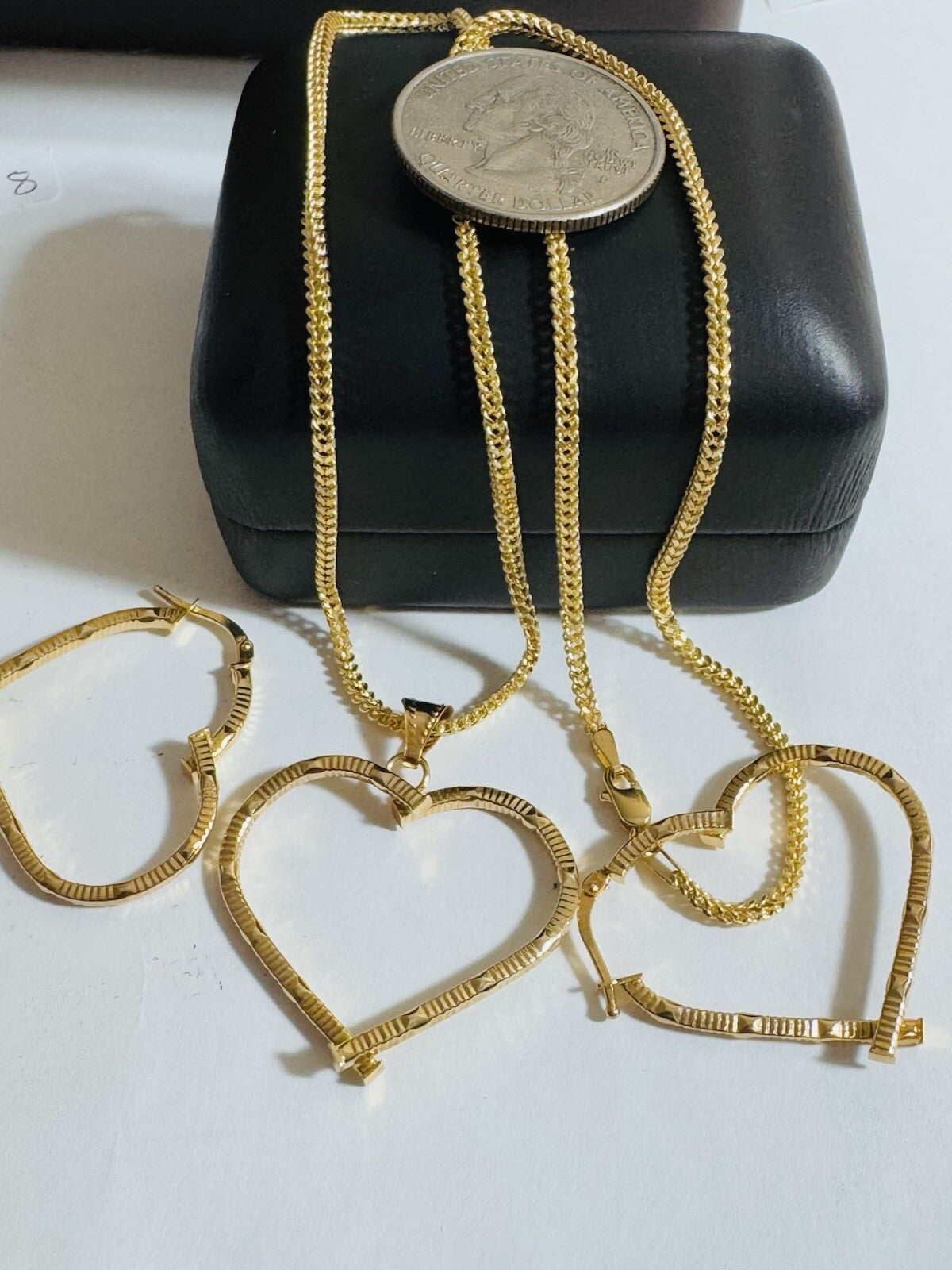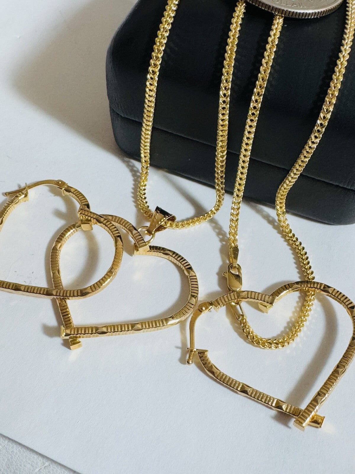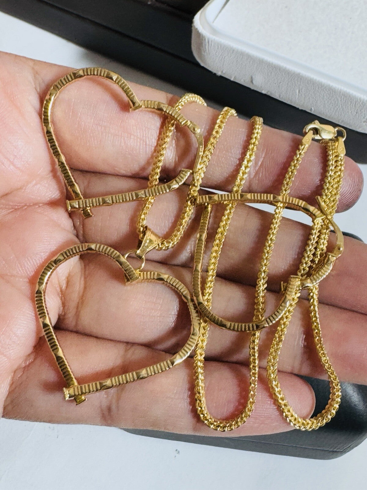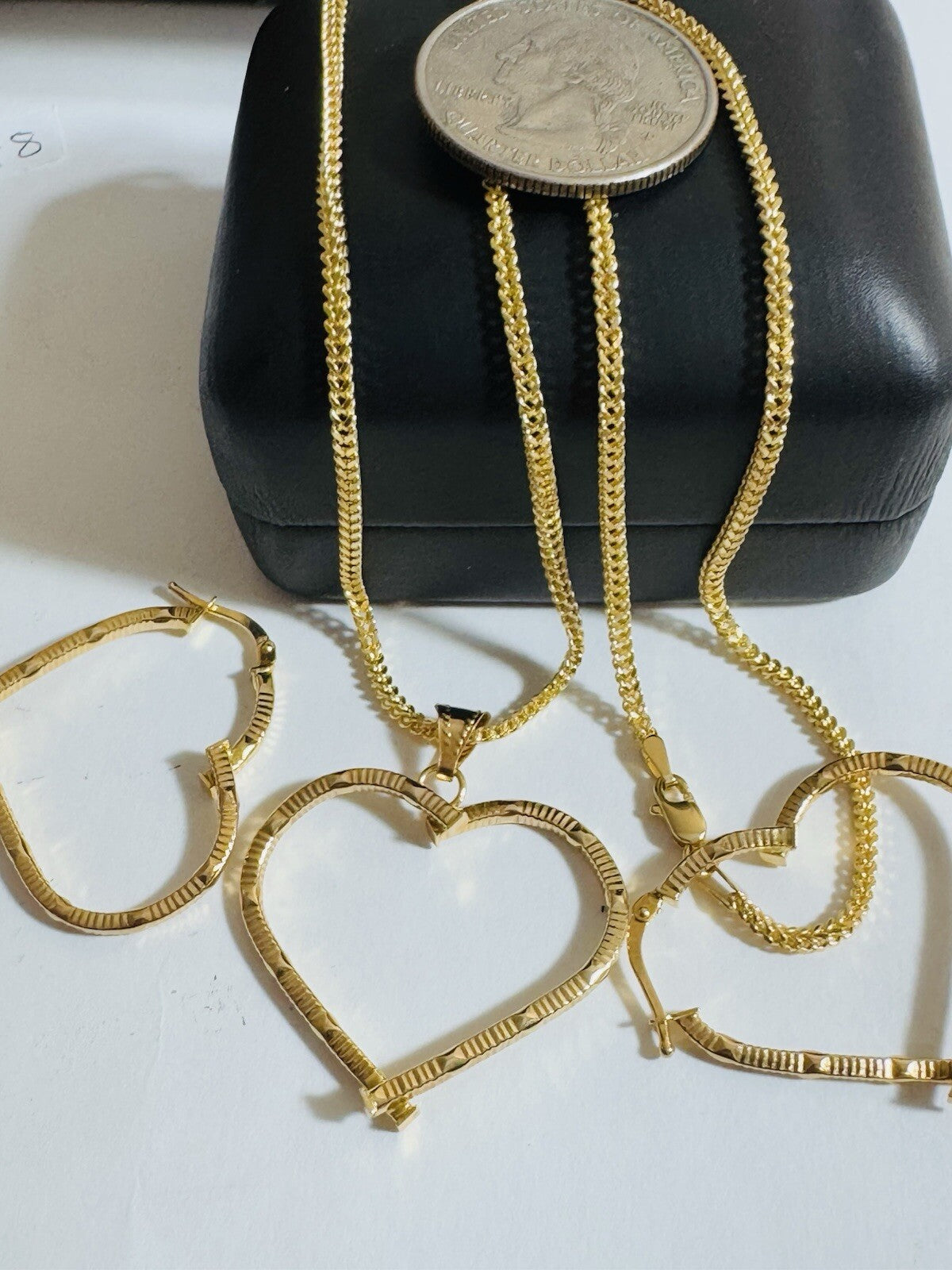 Real 18K 750 Saudi Pure Gold Heart Earring & Necklace 15.6”/16” Long 2.5mm 7.2g