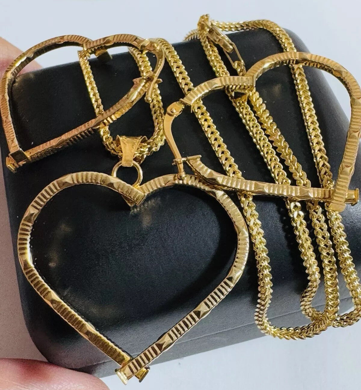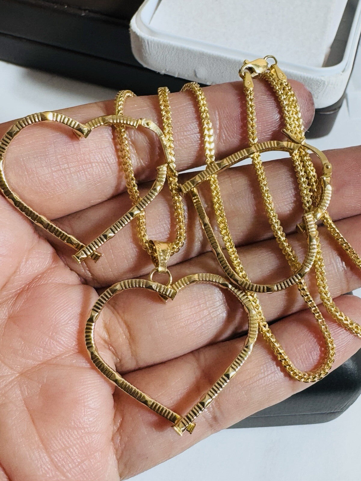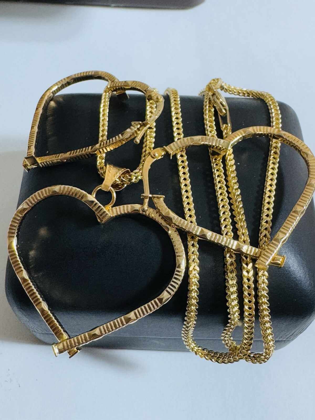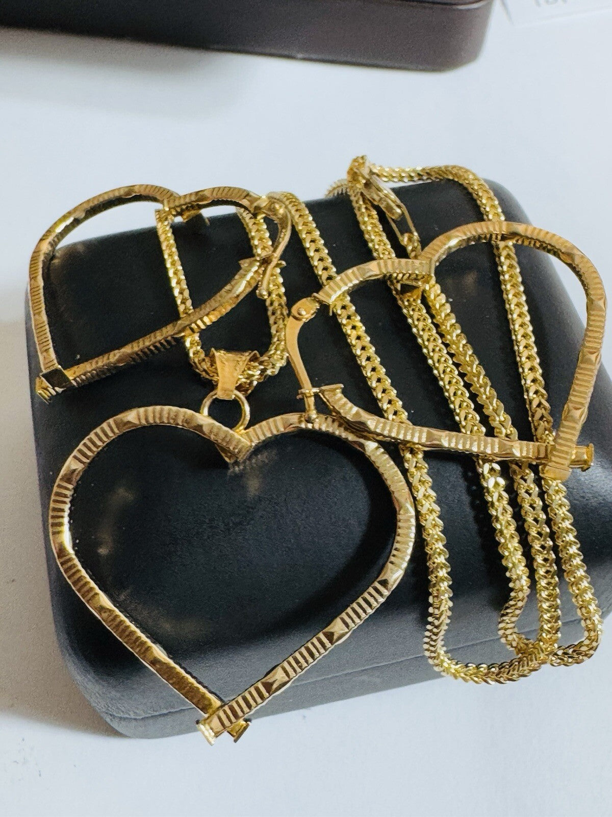 Real 18K 750 Saudi Pure Gold Heart Earring & Necklace 15.6”/16” Long 2.5mm 7.2g