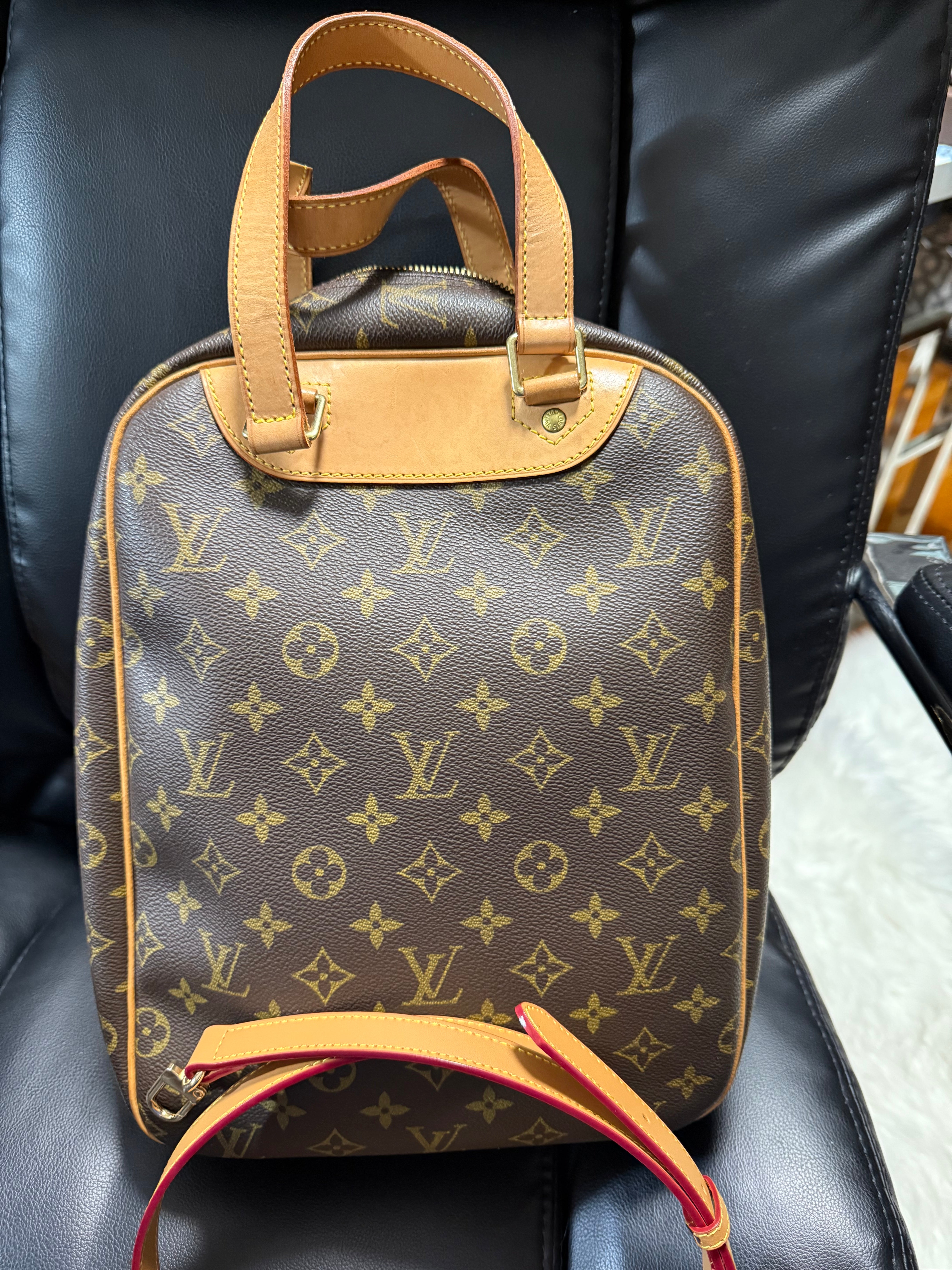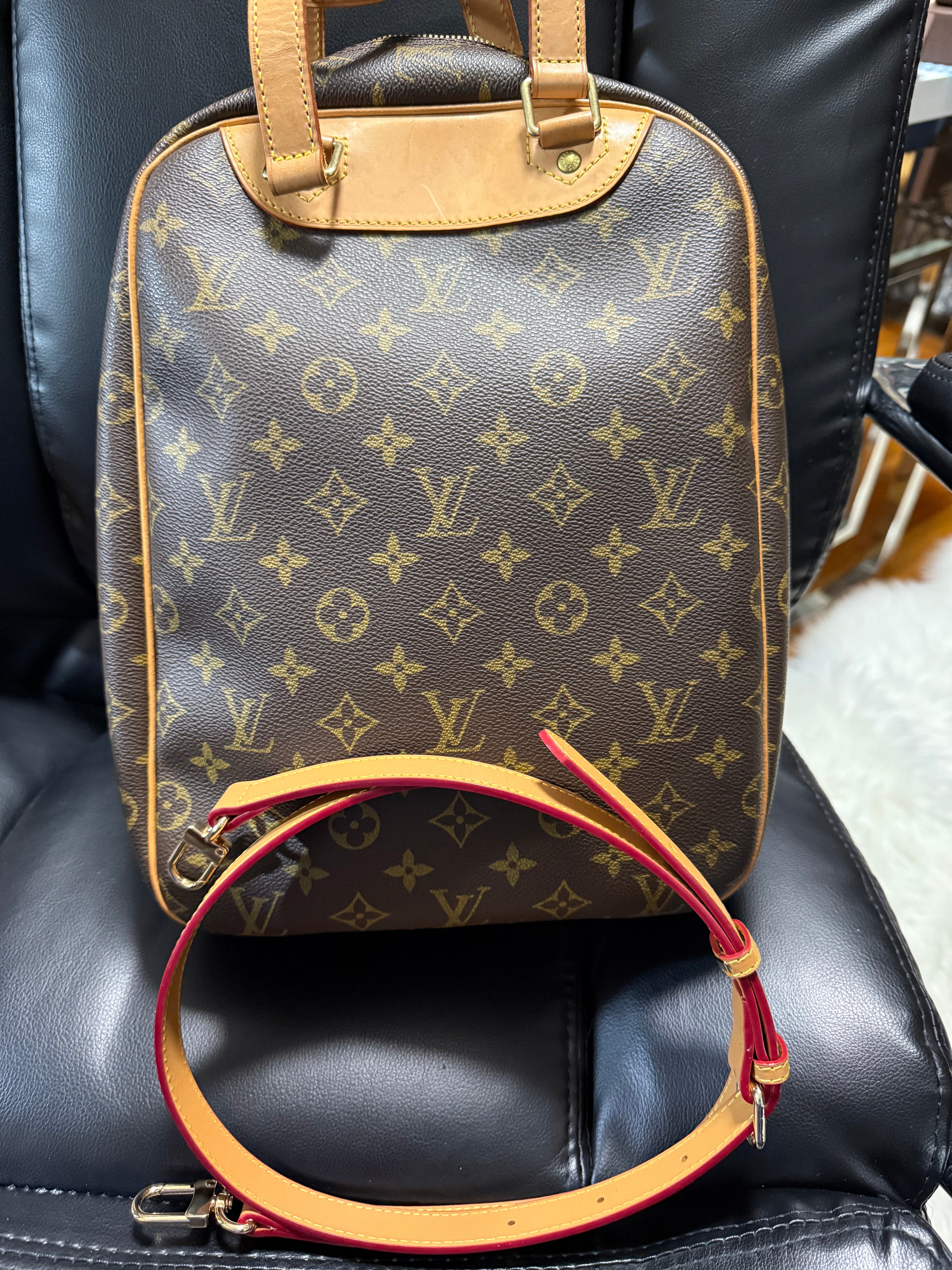 Auth Louis Vuitton Excursion handbag can be 2 way Bag monogram with extra 46/48” strap leather generic only