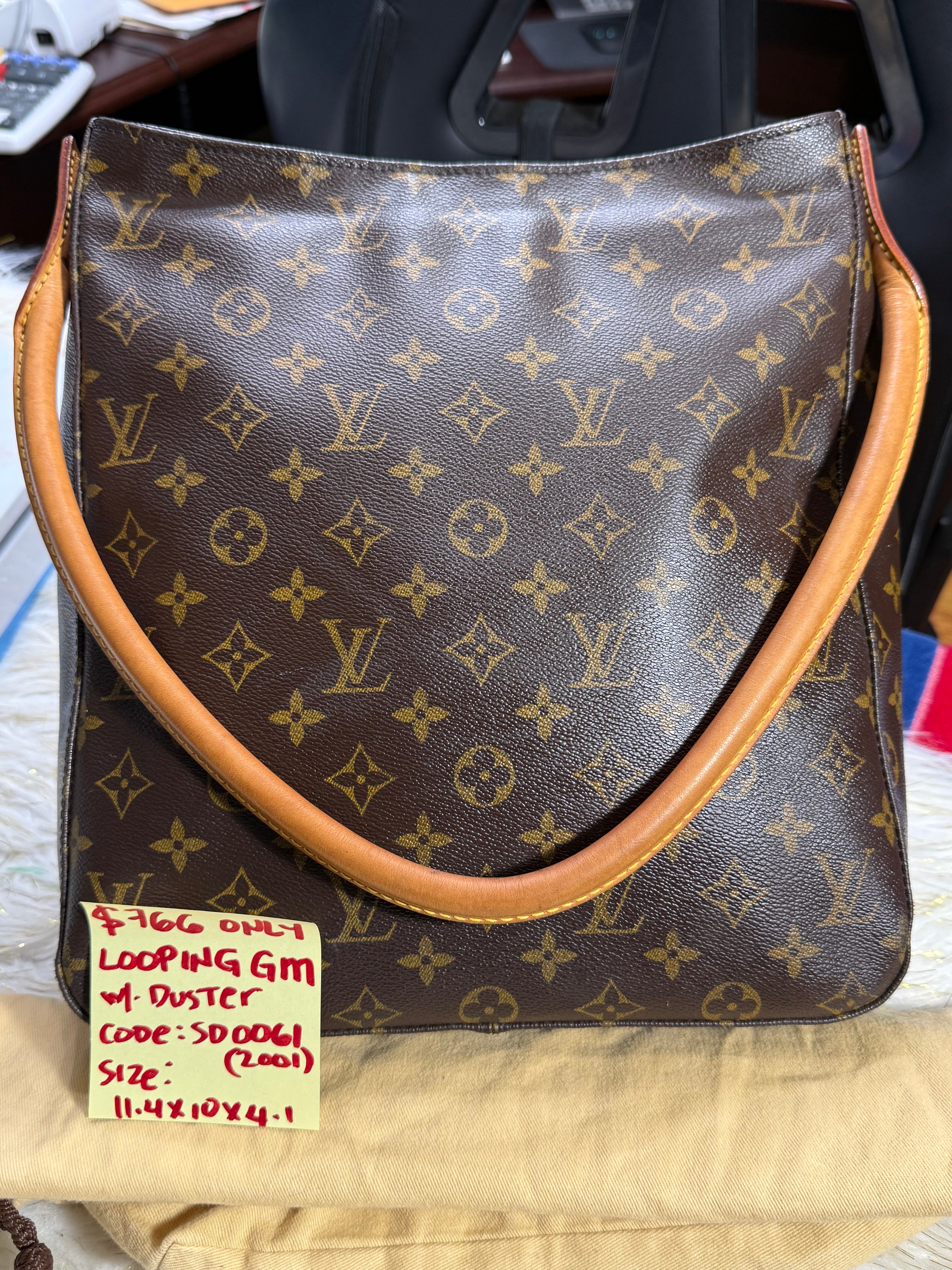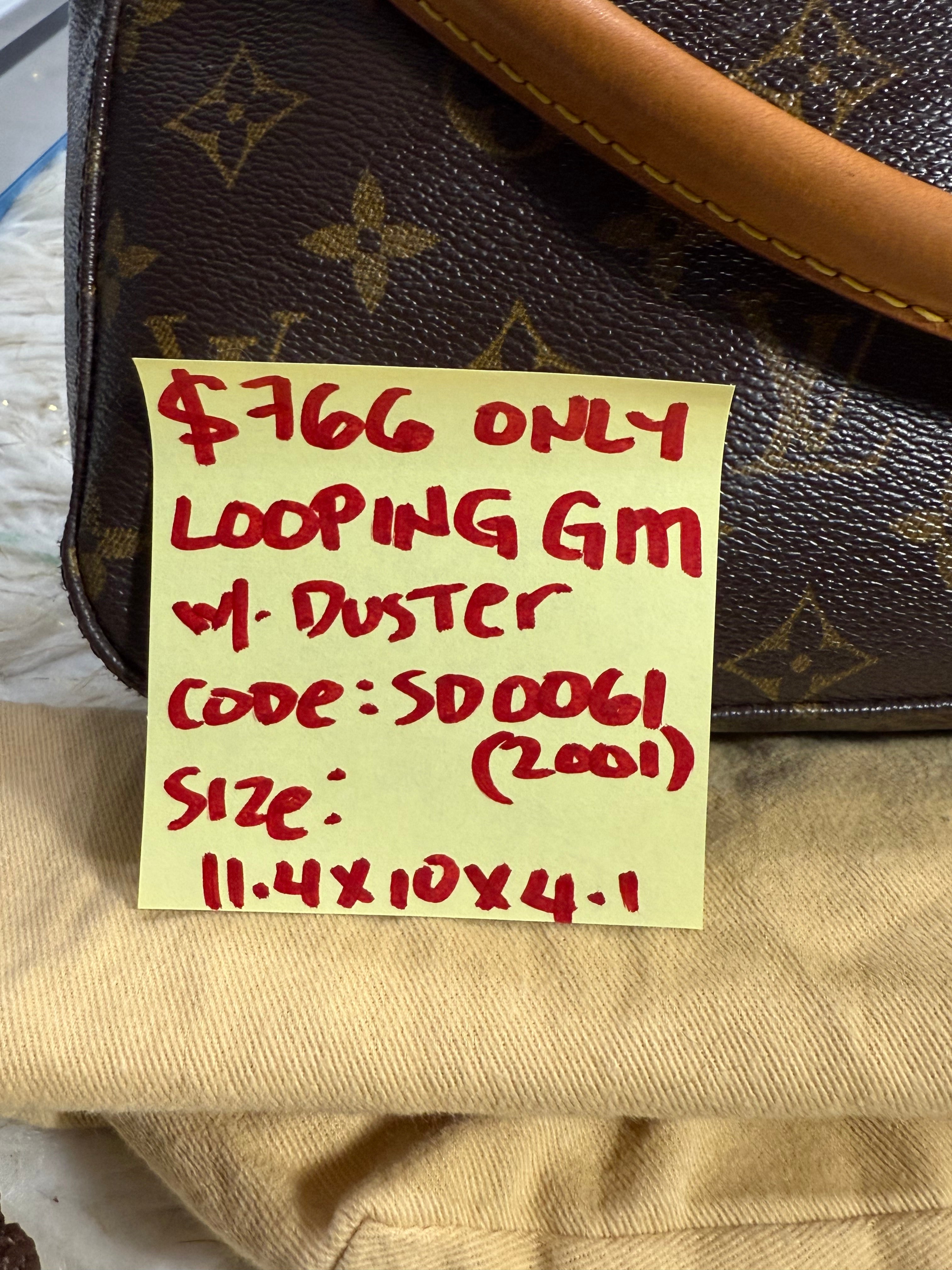 Authentic Louis Vuitton Looping GM Monogram shoulder bag handbag with Duster.. Authentic only or money back.
