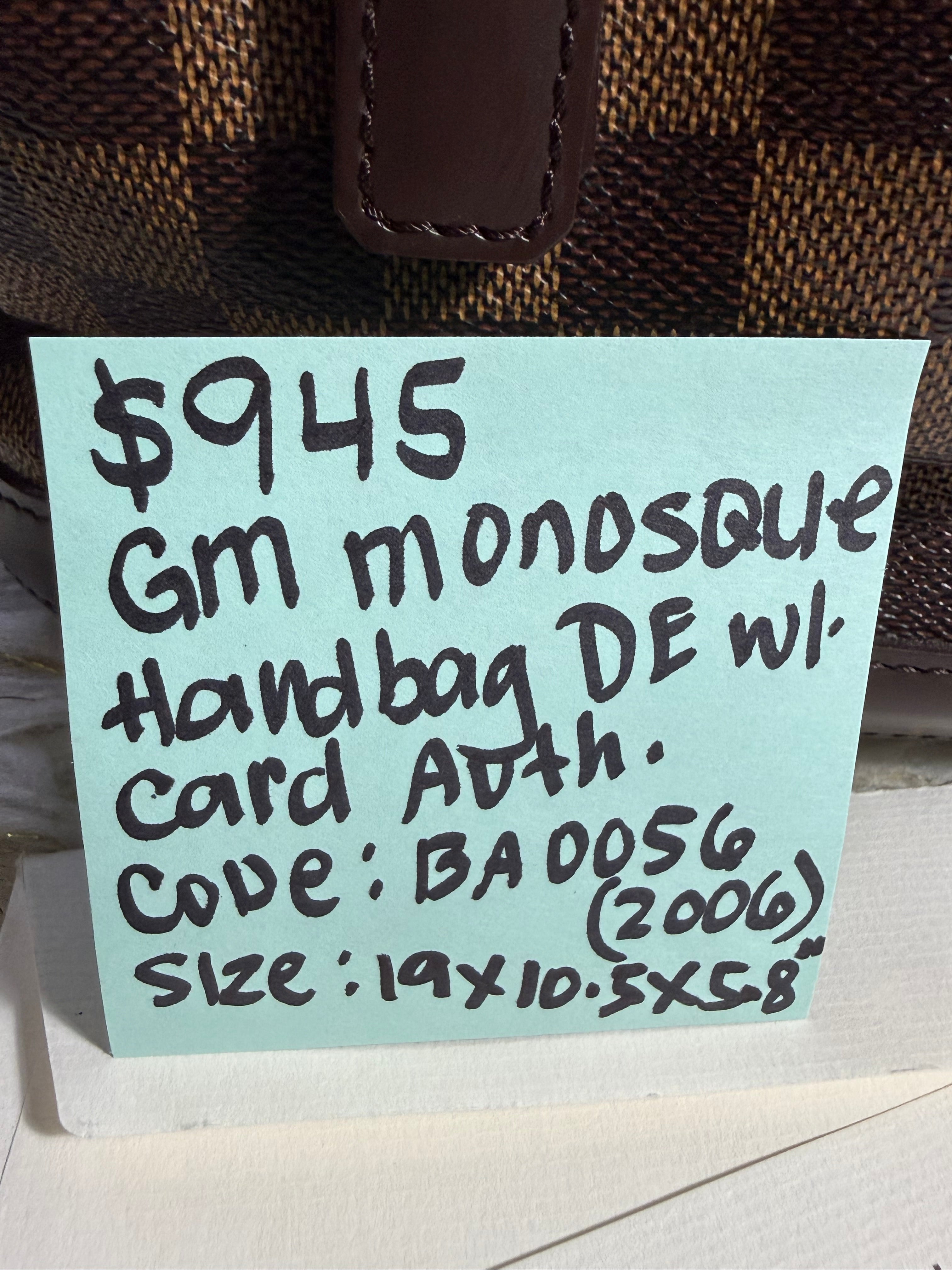 Louis Vuitton Monosque Gm handbag Damier ebene w/ auth. card