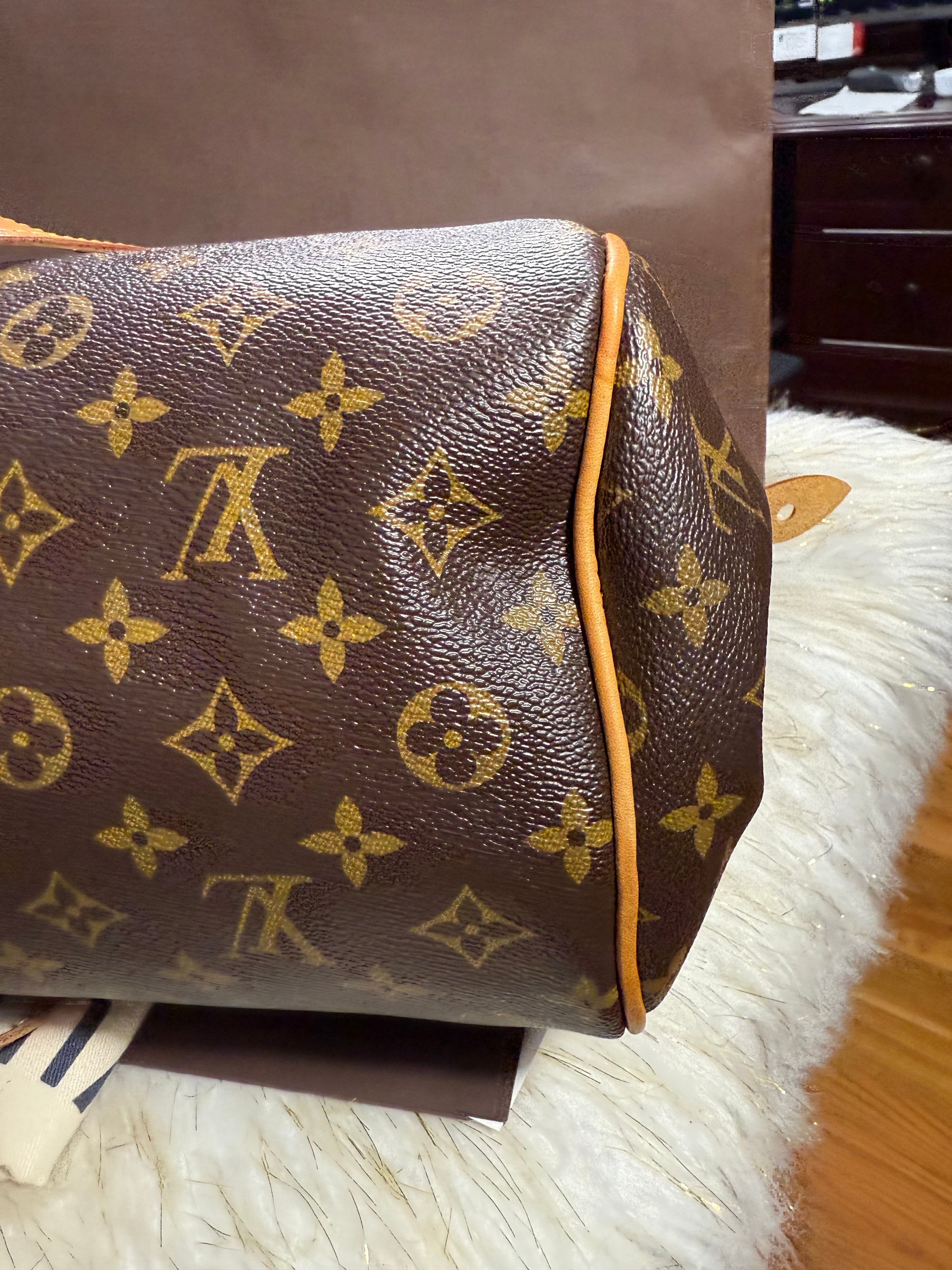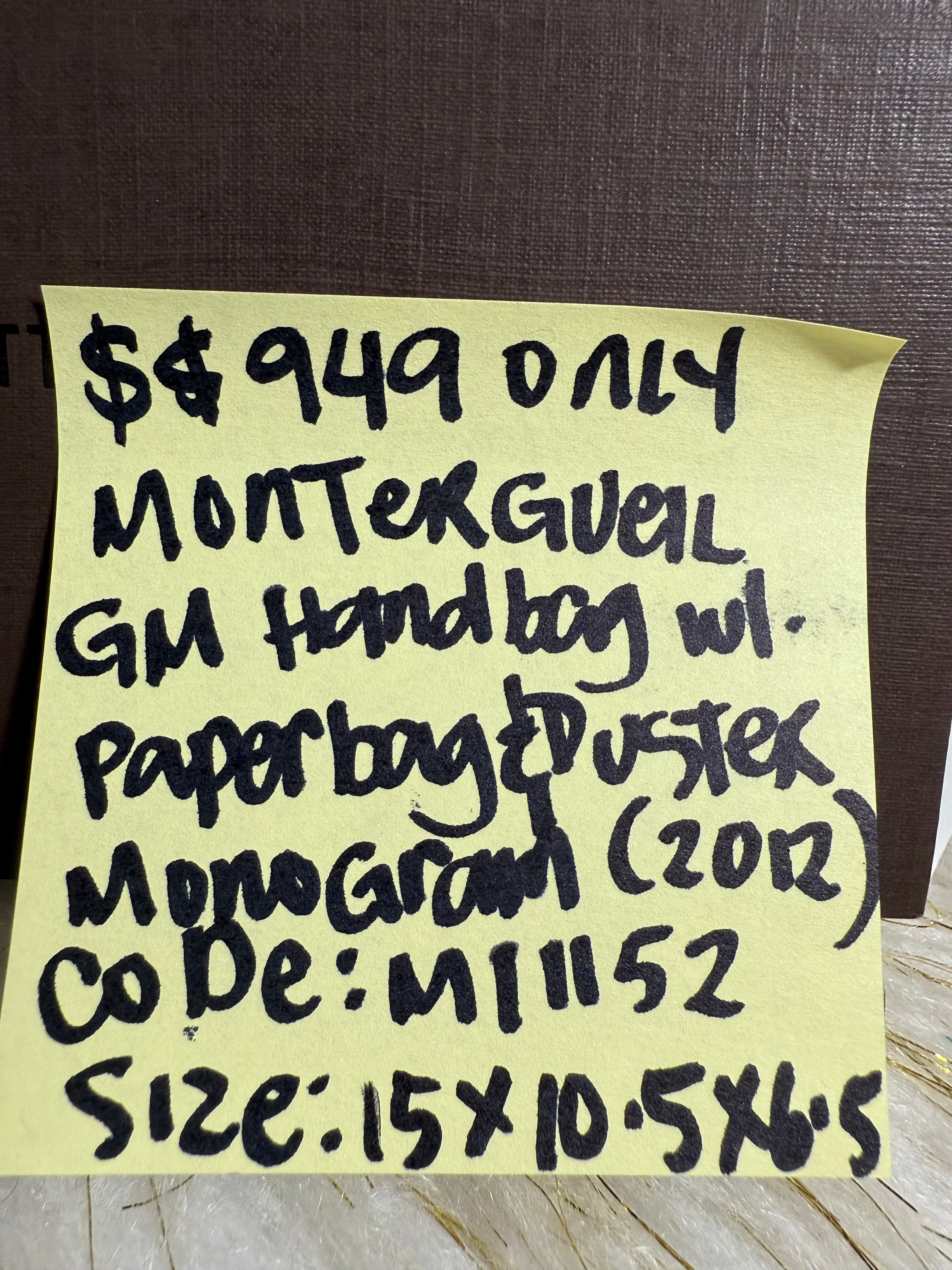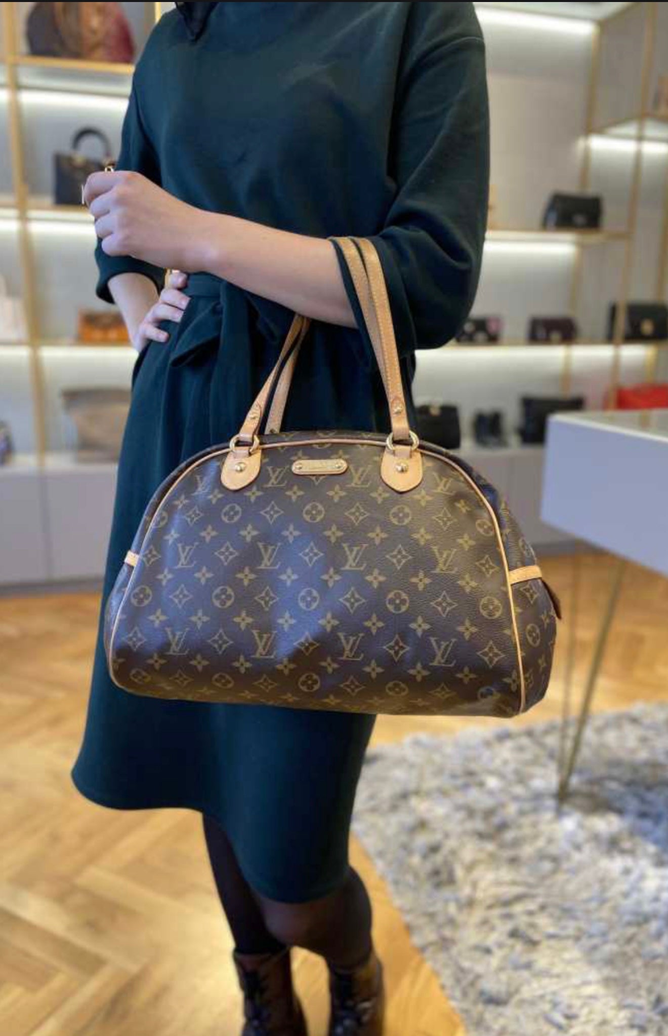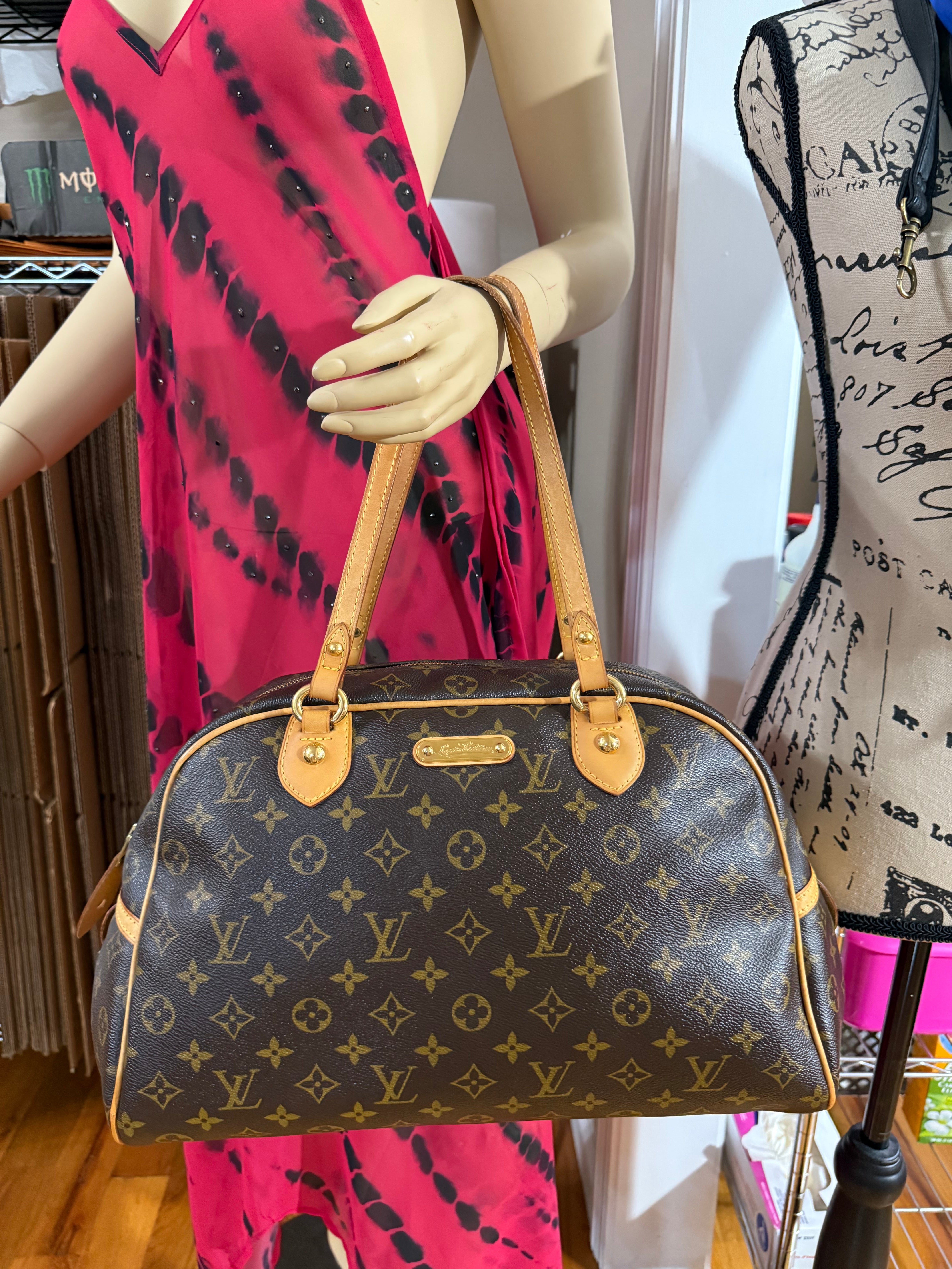 Auth. Louis Vuitton Montergueil Gm Monogram handbag shoulder bag with Box and Duster. Authentic only or money back.