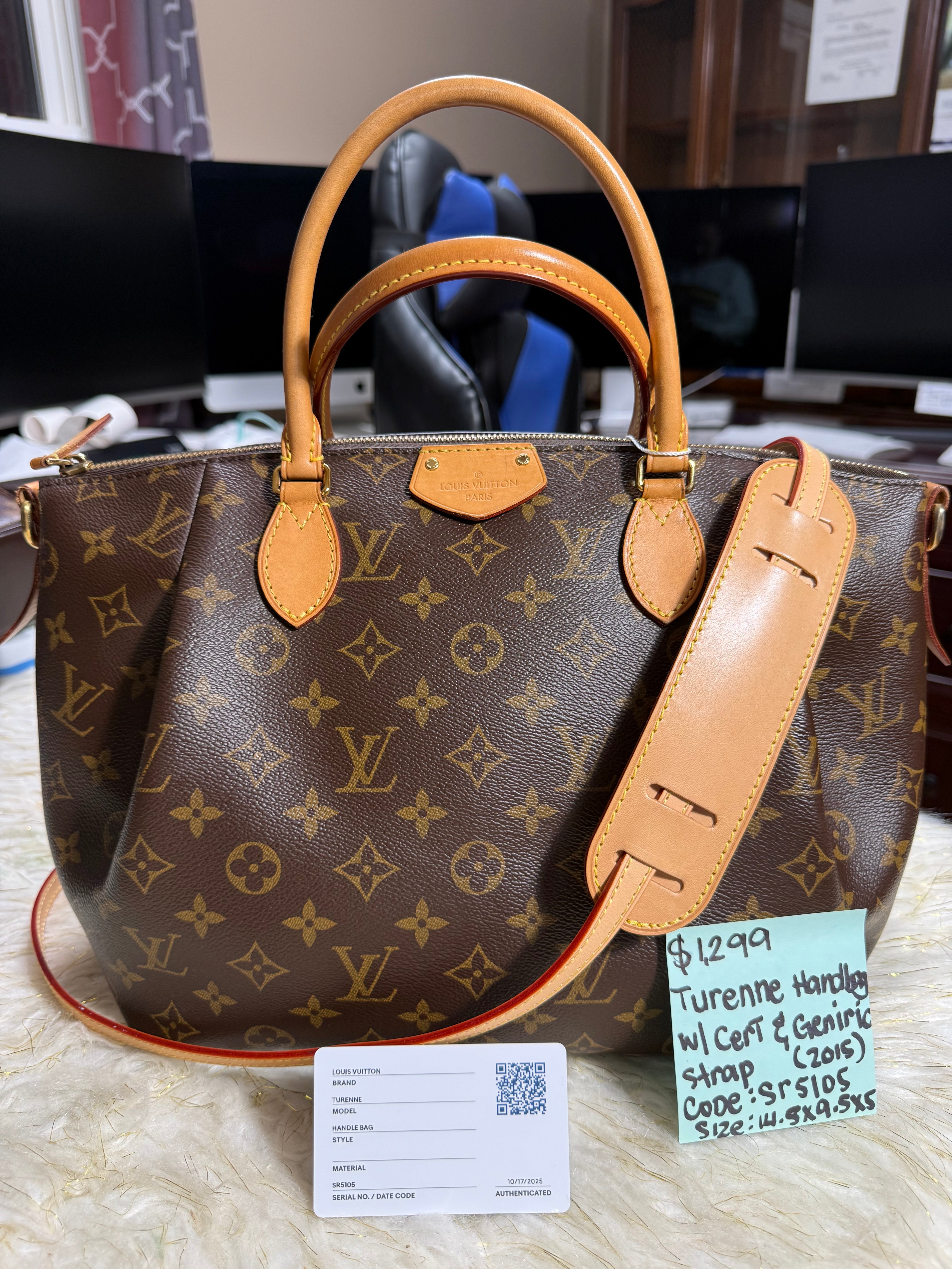 Beautiful Louis Vuitton Turenne Monogram Hand bag with Generic Long strap for crossbody sling with authenticity card.