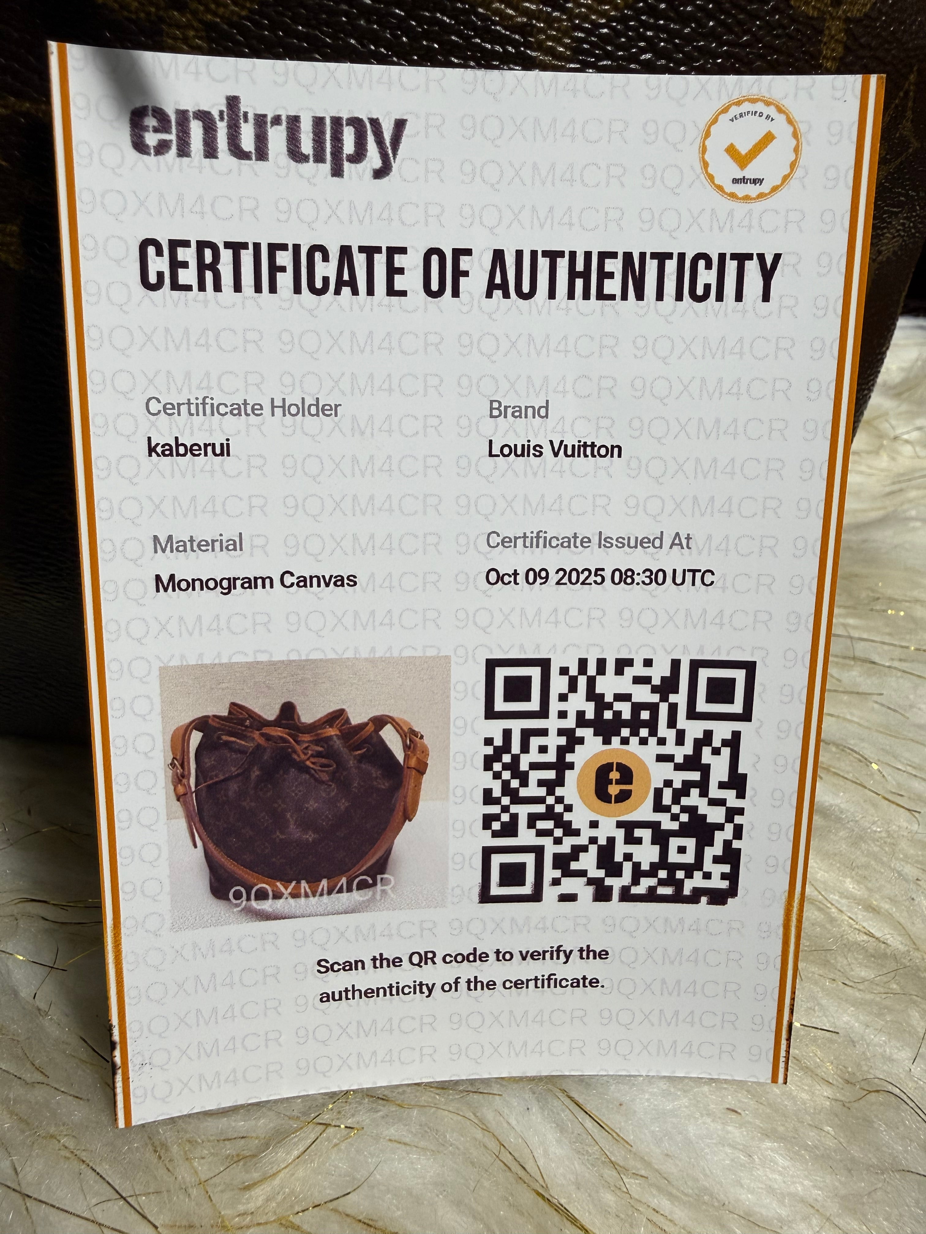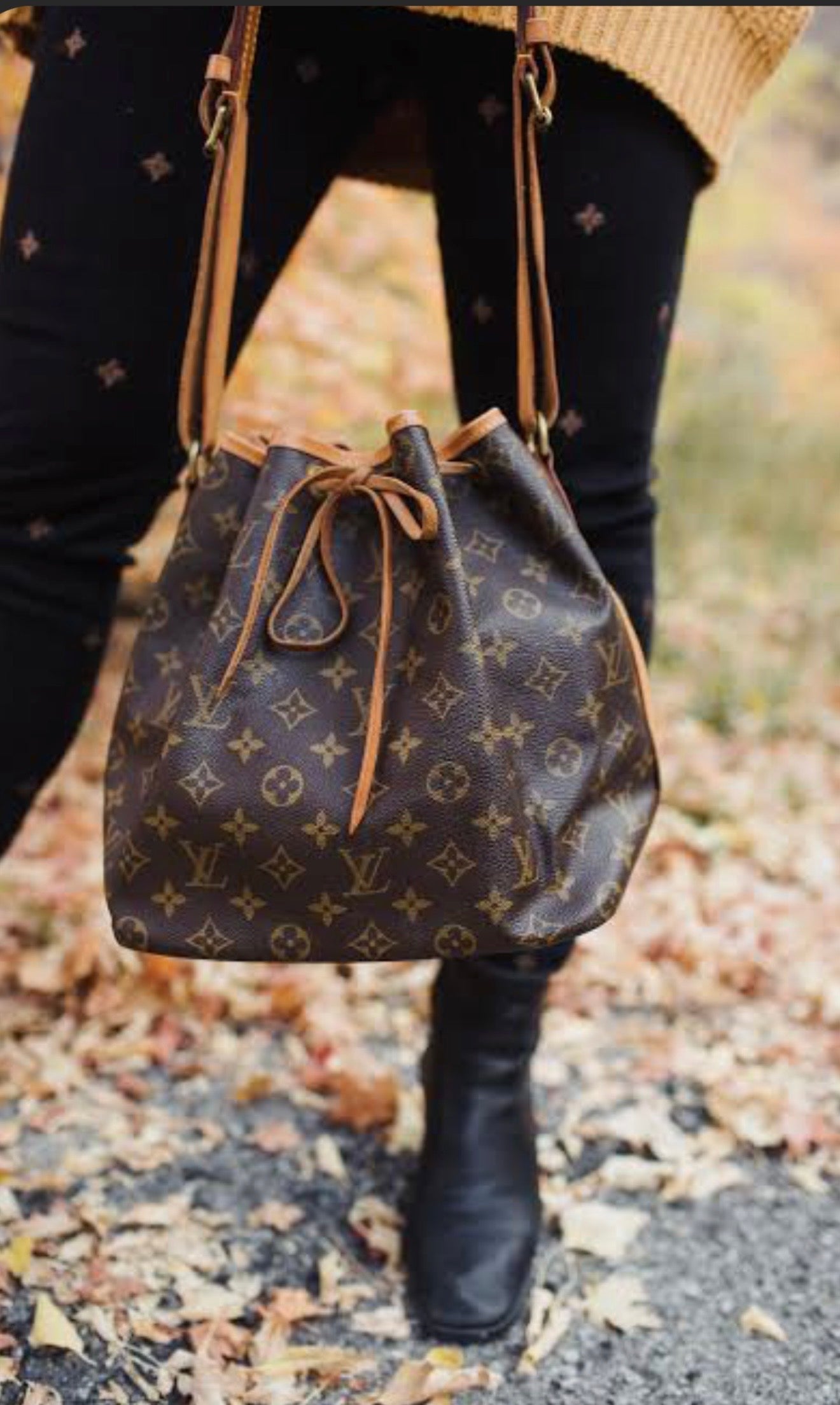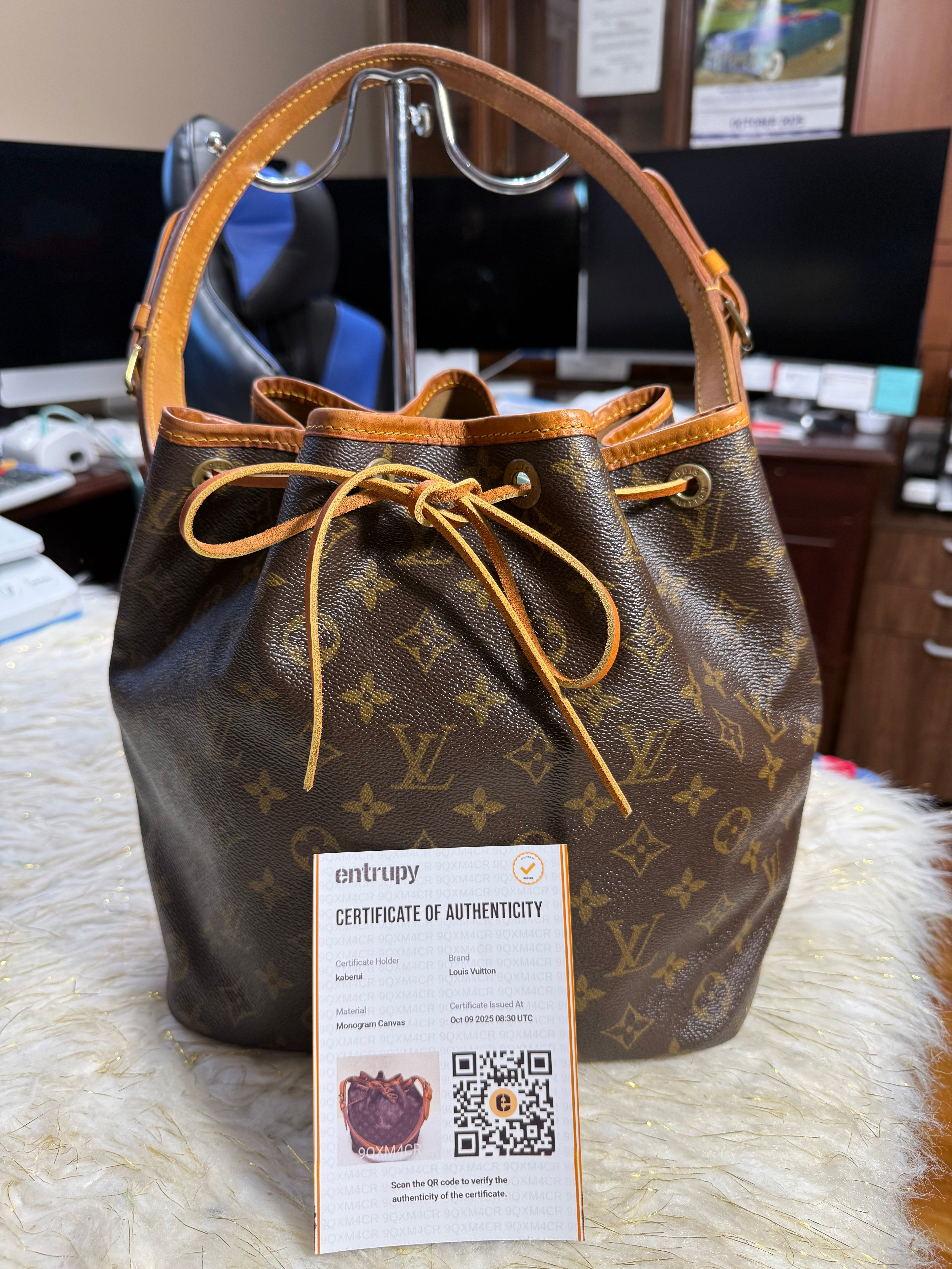 100% Authentic preowned Vintage Louis Vuitton Monogram Petit Noe Drawstring Shoulder Bag & Authentication certificate.