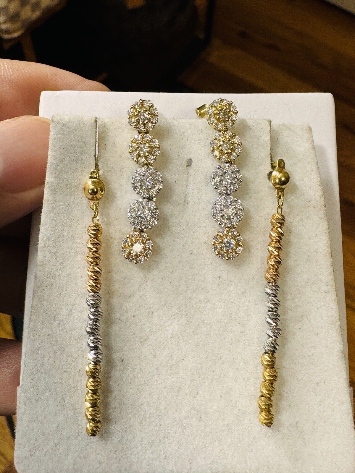 • You are buying 18K 750 Fine Real Gold 2 Set of Women’s Dangle Earring 5.4g