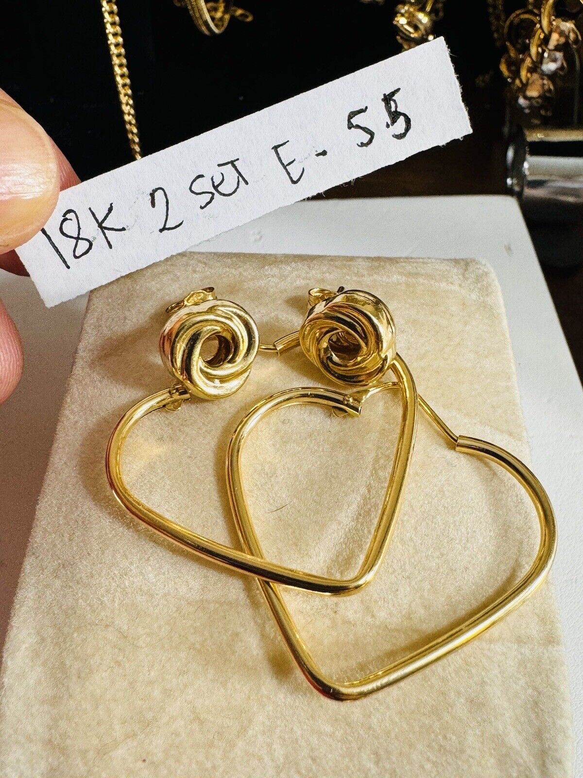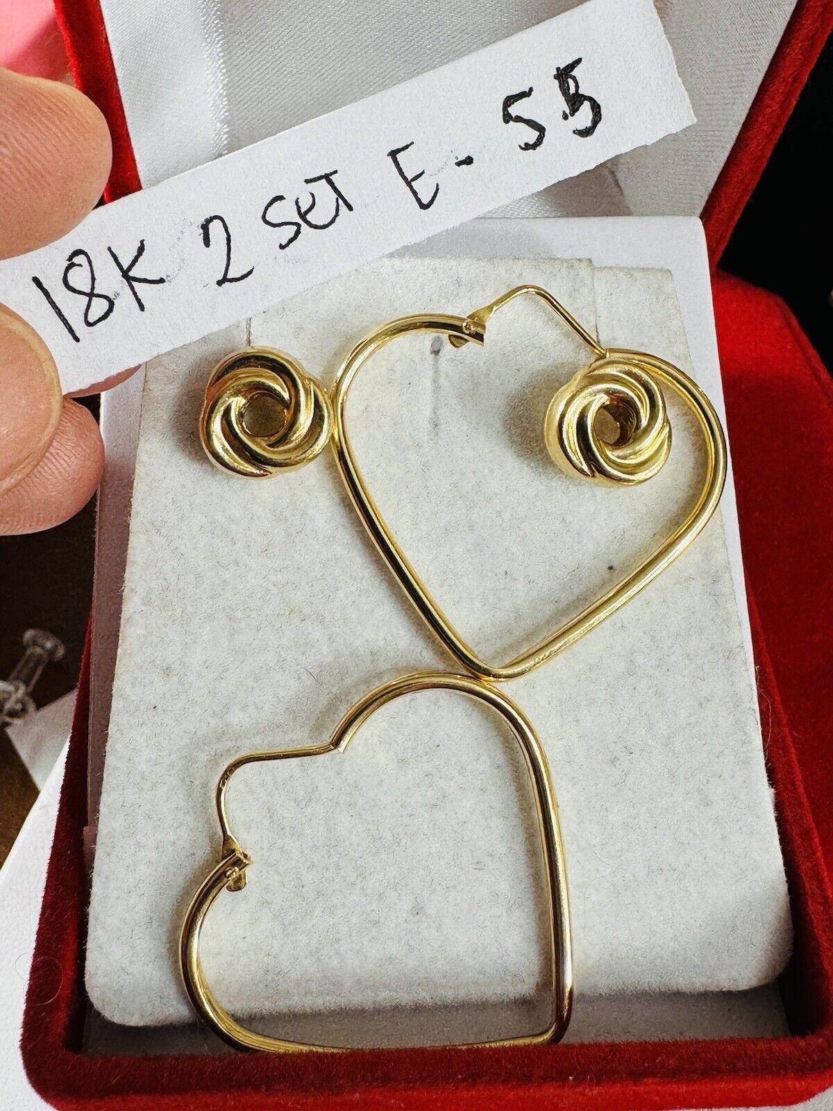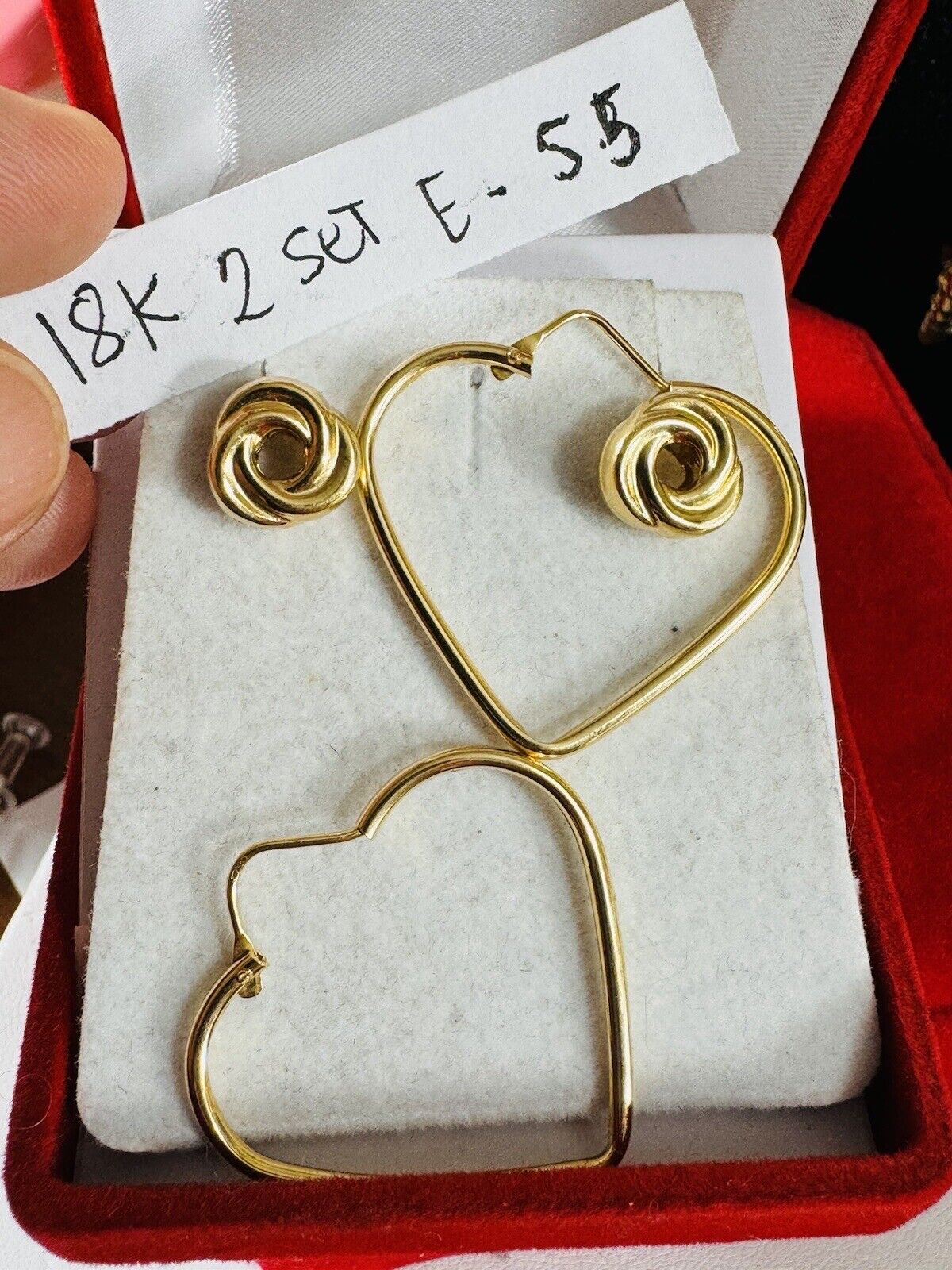 • You are buying 18K 750 Fine Real Gold 2 Set of Women’s Heart and Stud Earring 5.5g light weight only