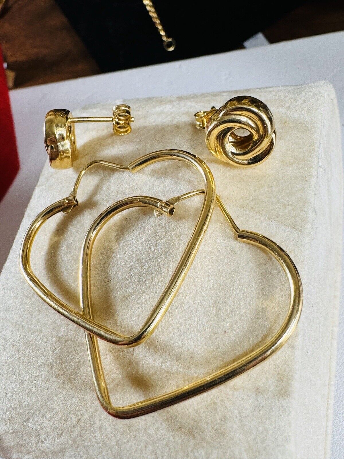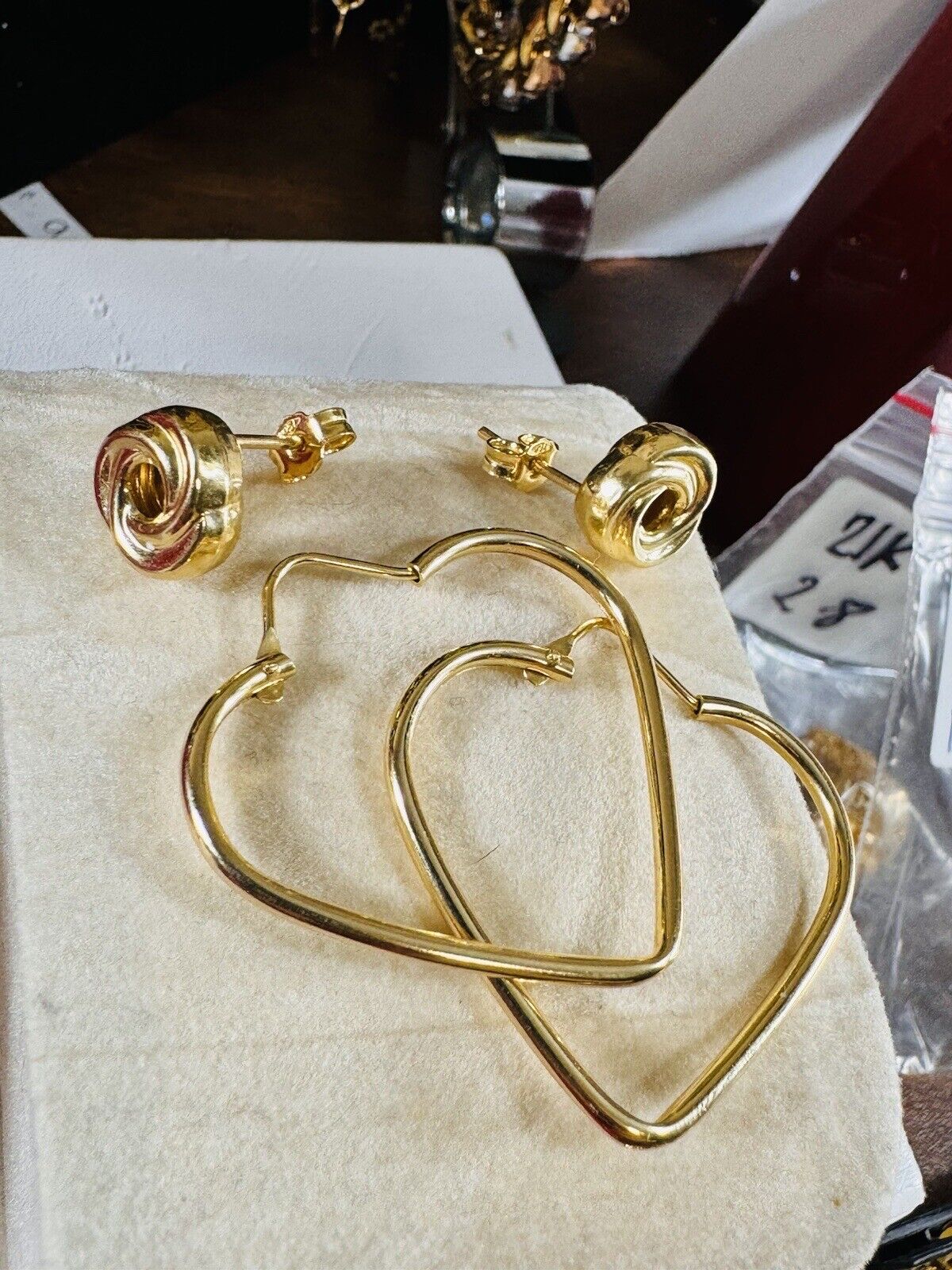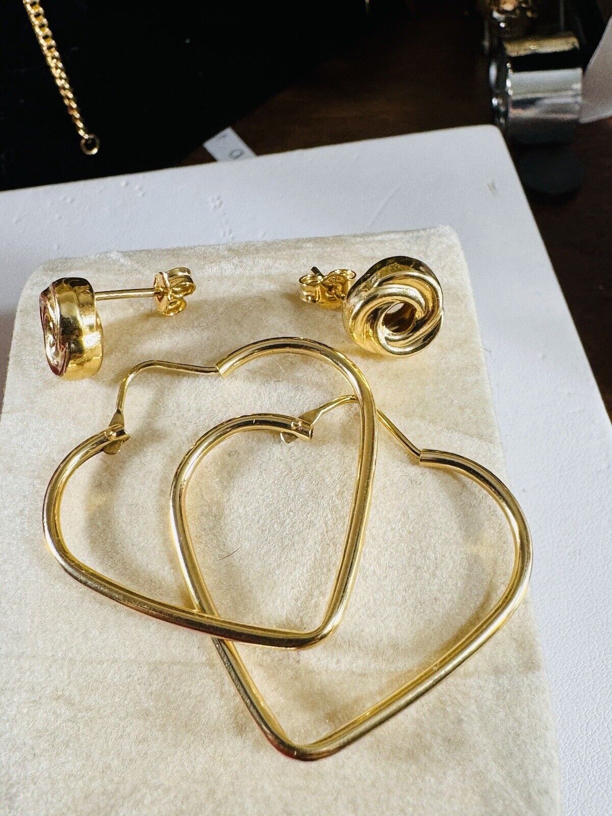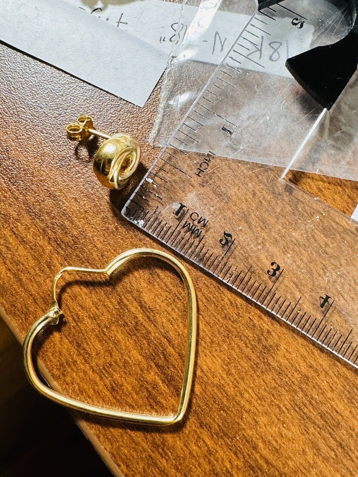 • You are buying 18K 750 Fine Real Gold 2 Set of Women’s Heart and Stud Earring 5.5g light weight only
