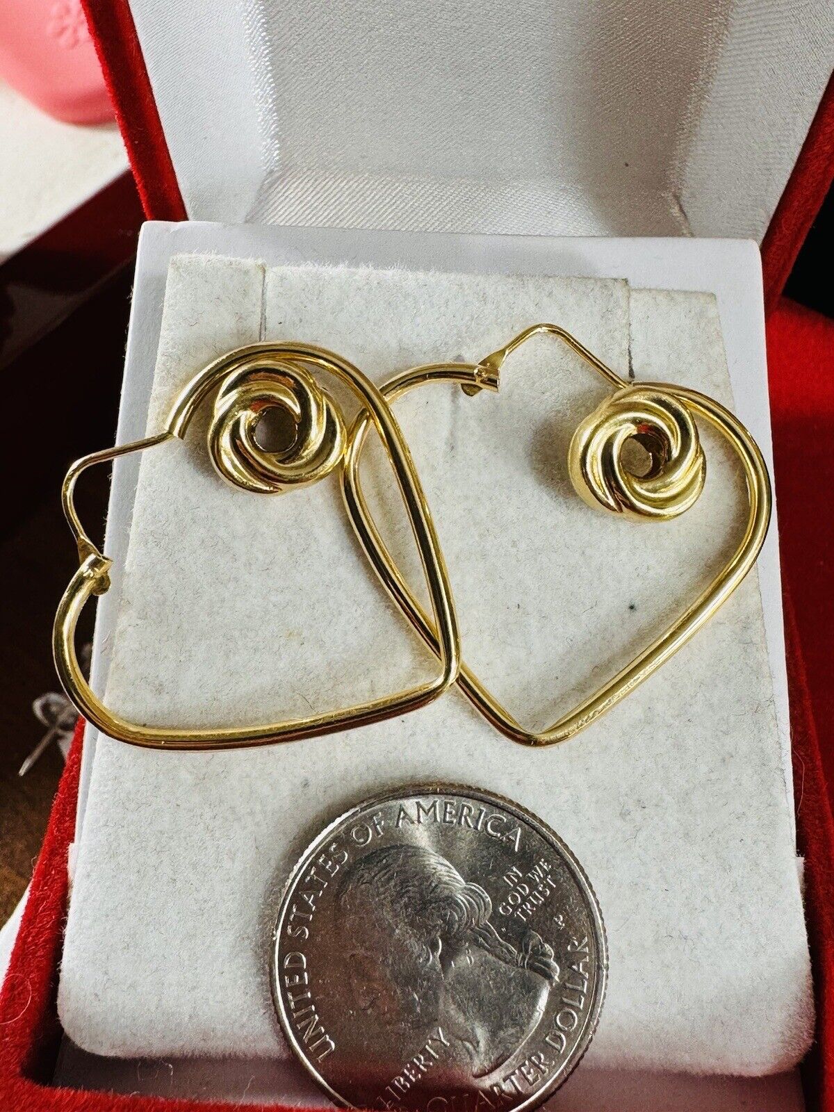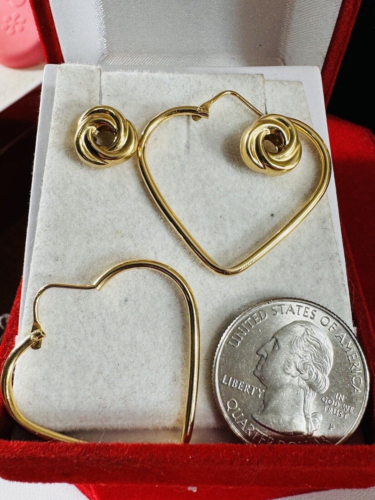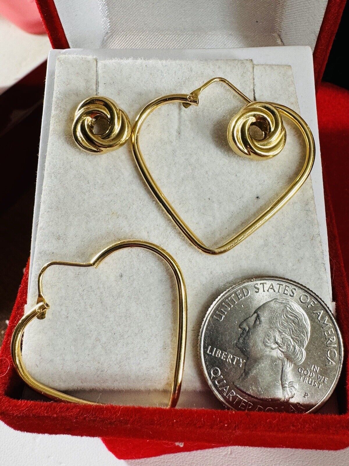 18K 750 Fine Real Gold 2 Set Women’s Heart and Stud Earring 5.5g