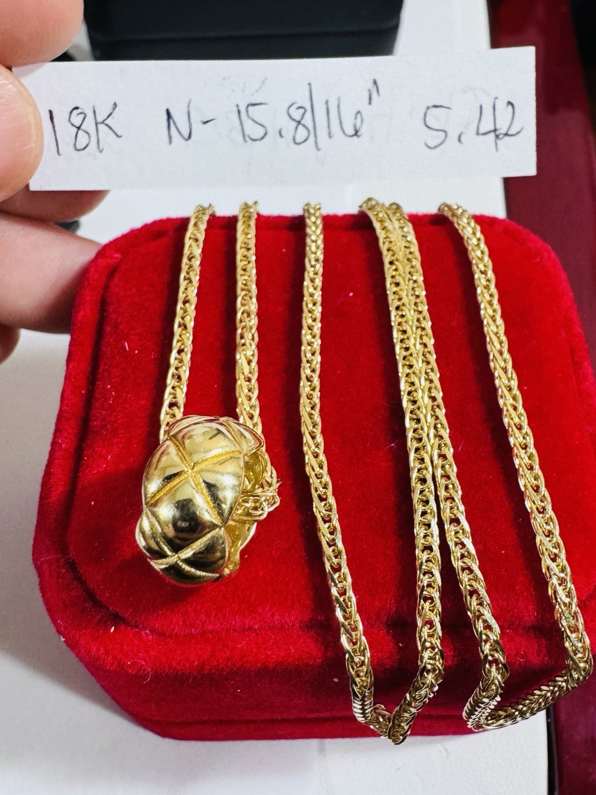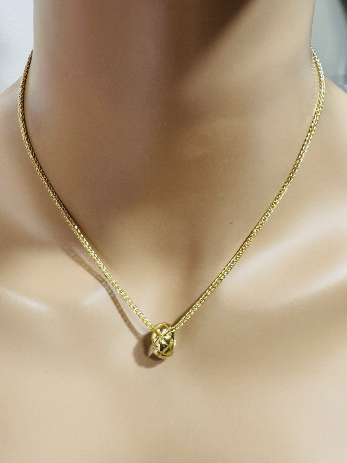 18K 750 Fine Real Pure Gold Quilted Dome Set Necklace 15.8”/16” Long 2.2mm 5.4g