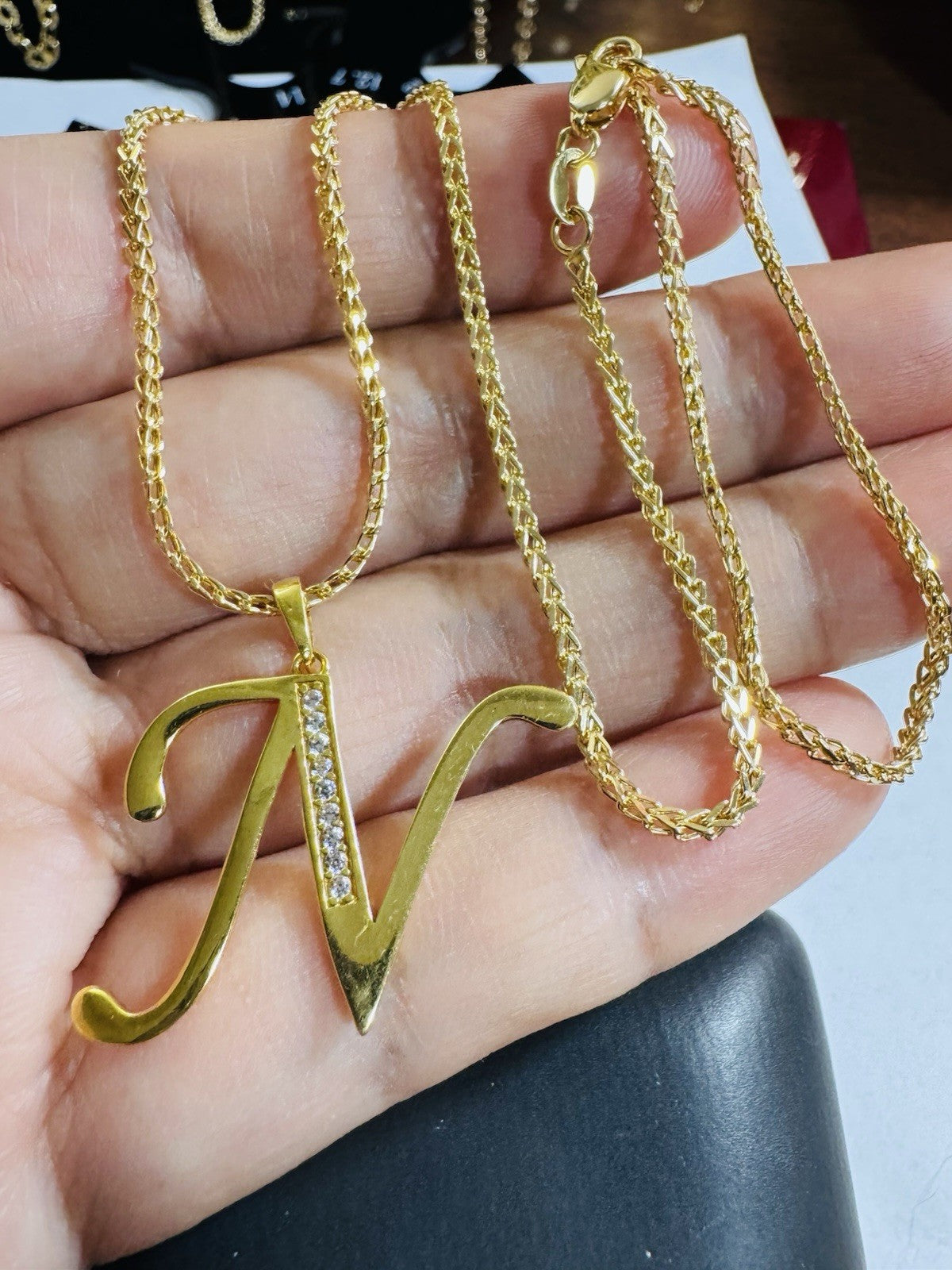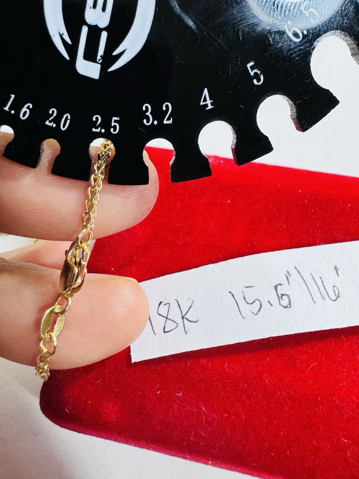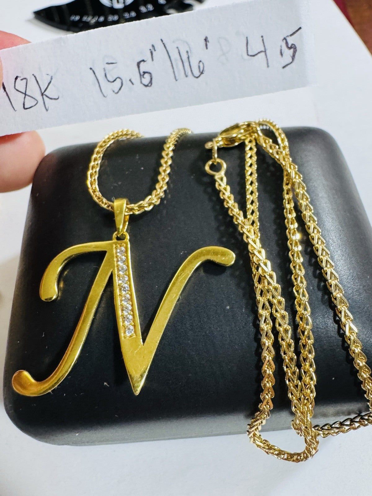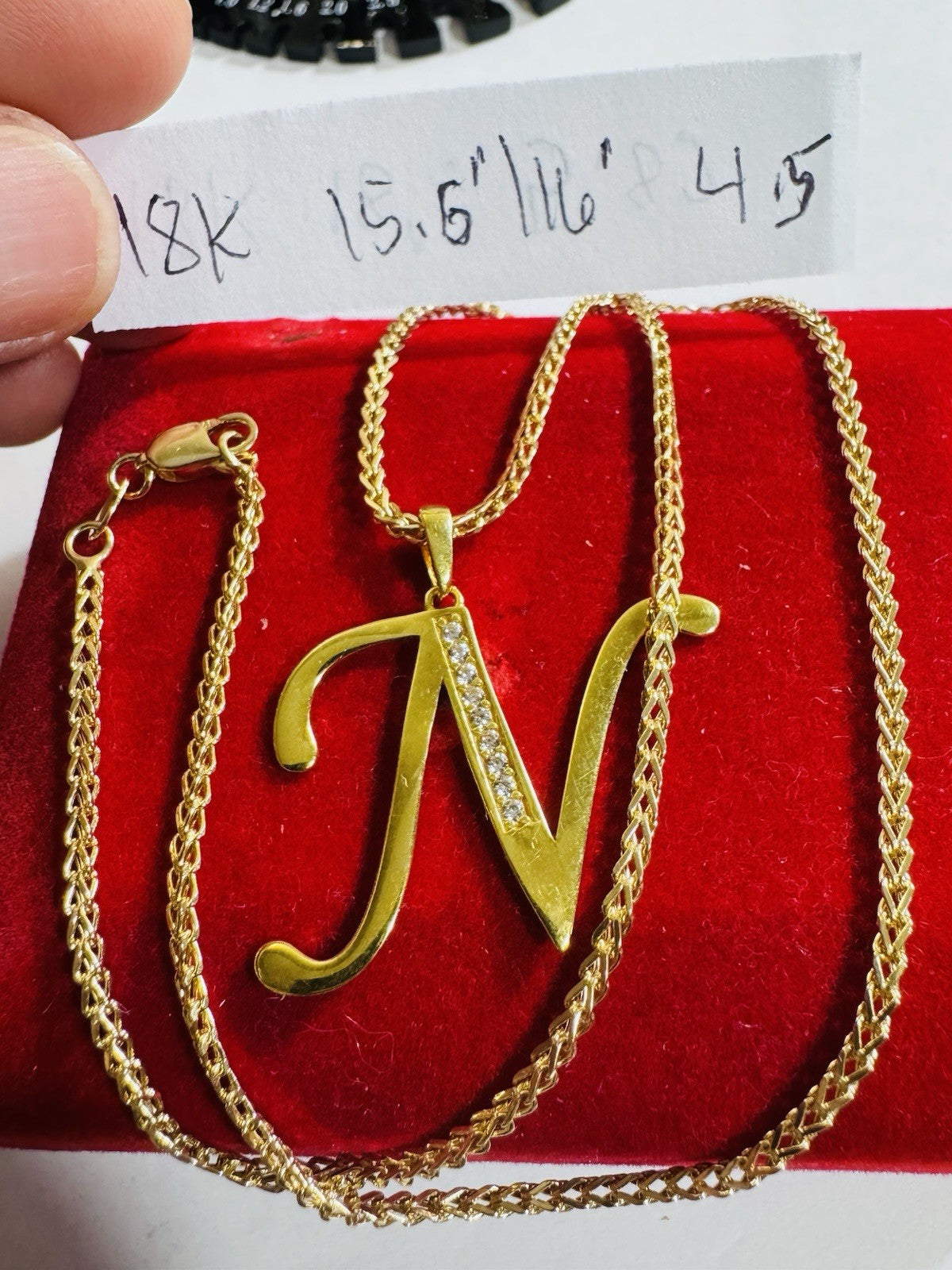 18K 750 Real Genuine Gold Letter N Set Necklace 15.6/16” Inch Long 4.5g 2.2mm