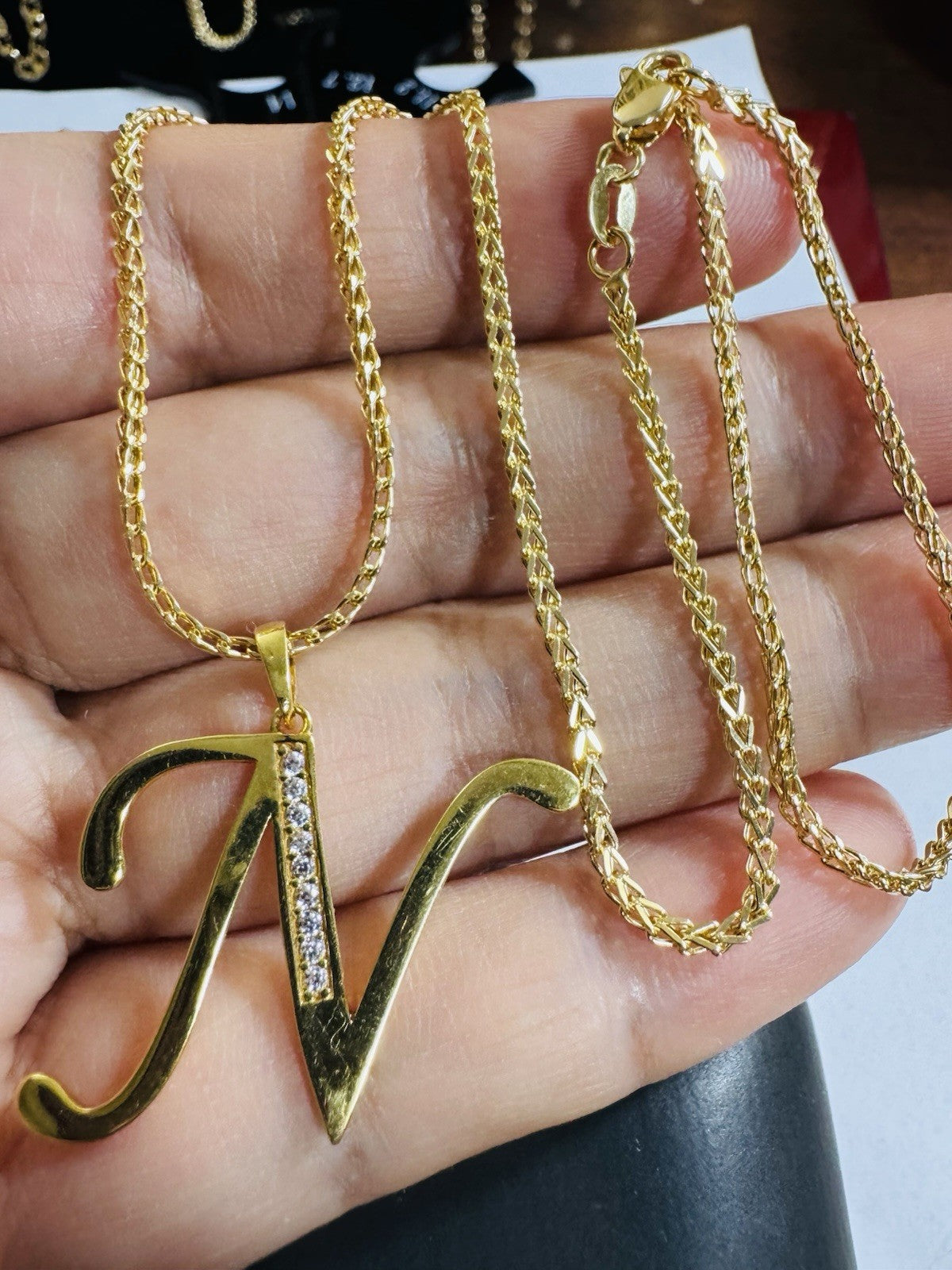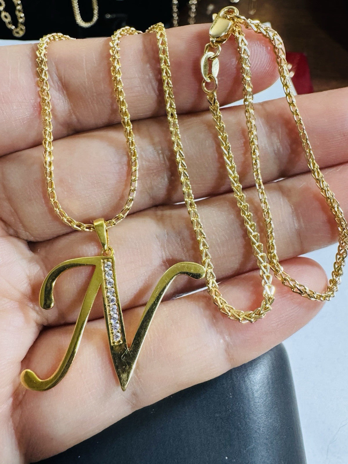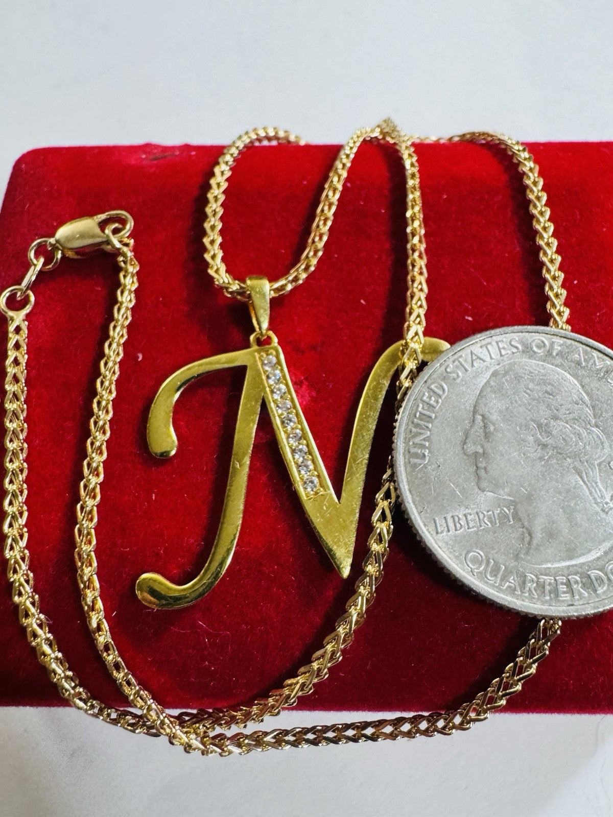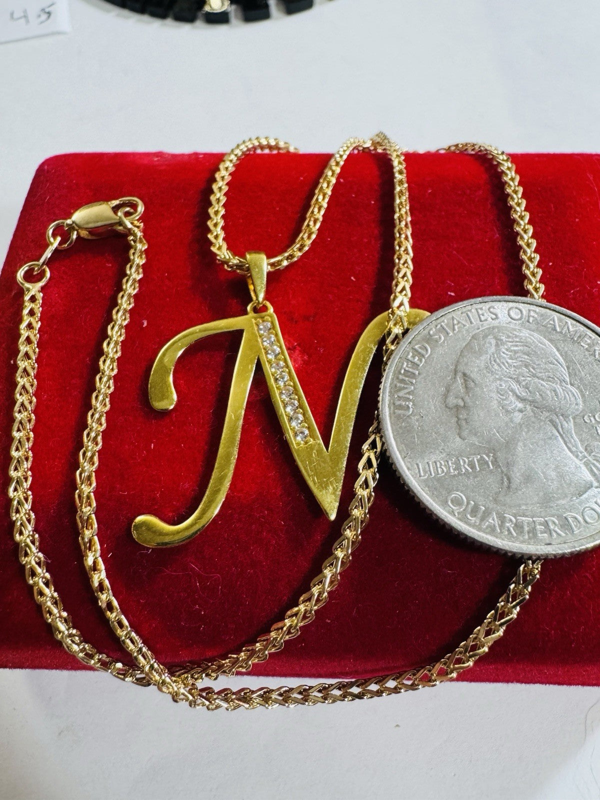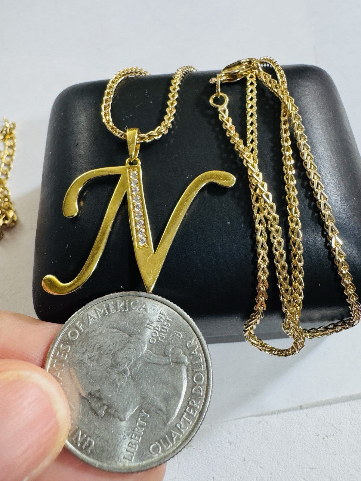 18K 750 Real Genuine Gold Letter N Set Necklace 15.6/16” Inch Long 4.5g 2.2mm