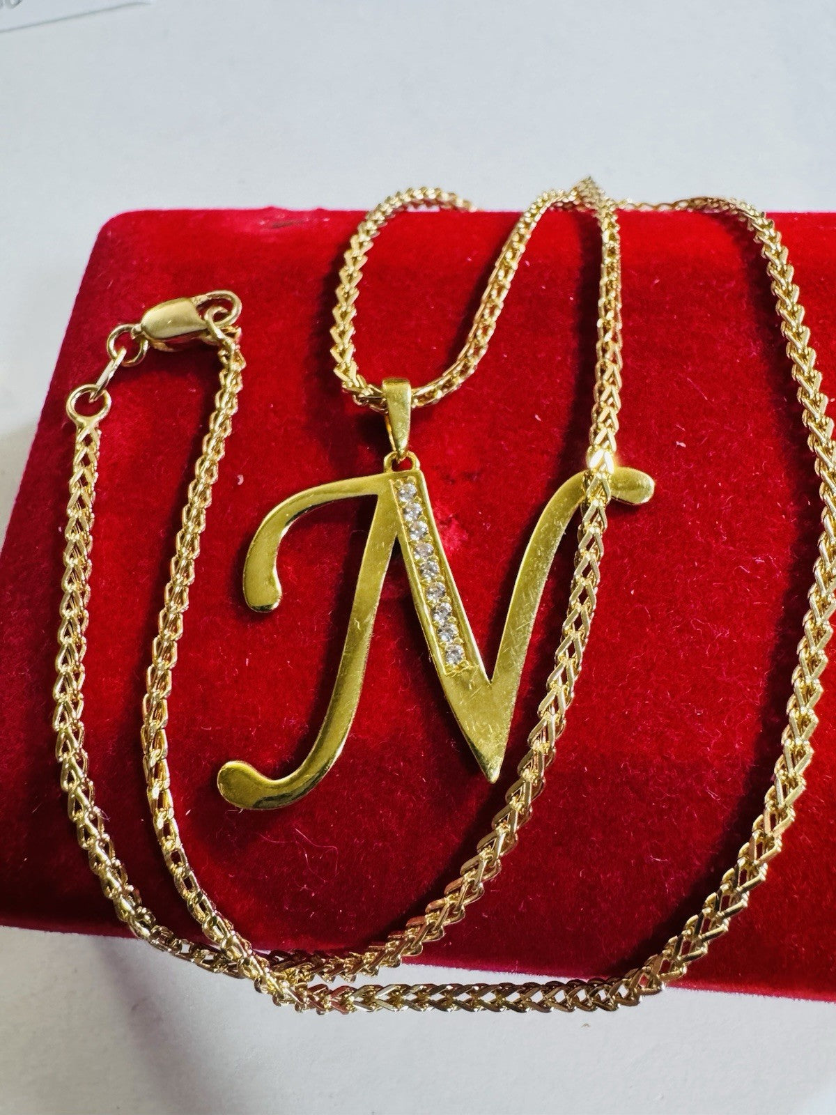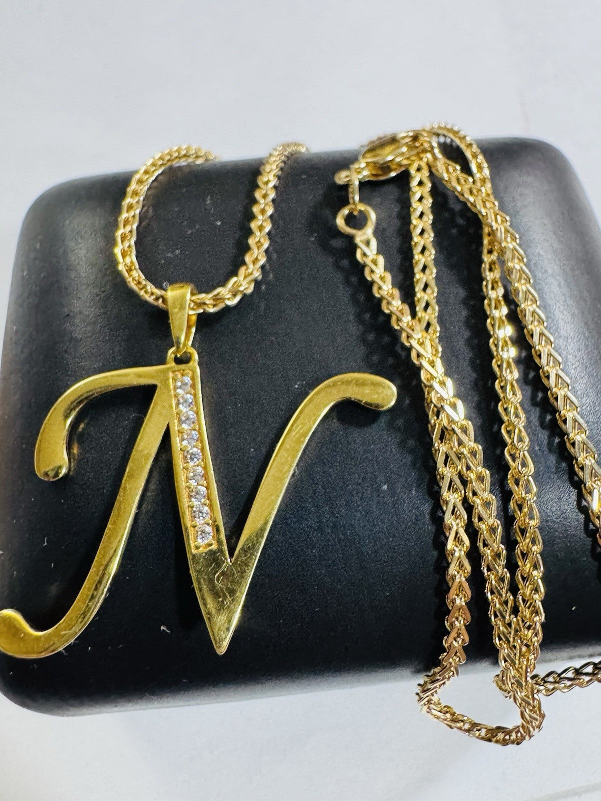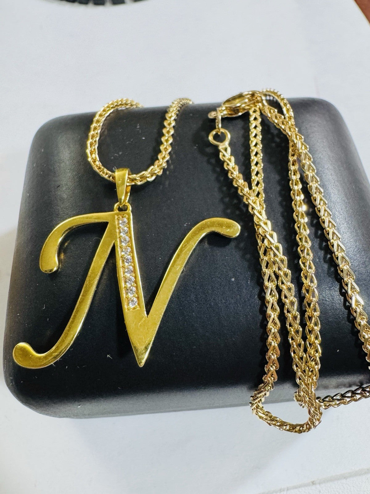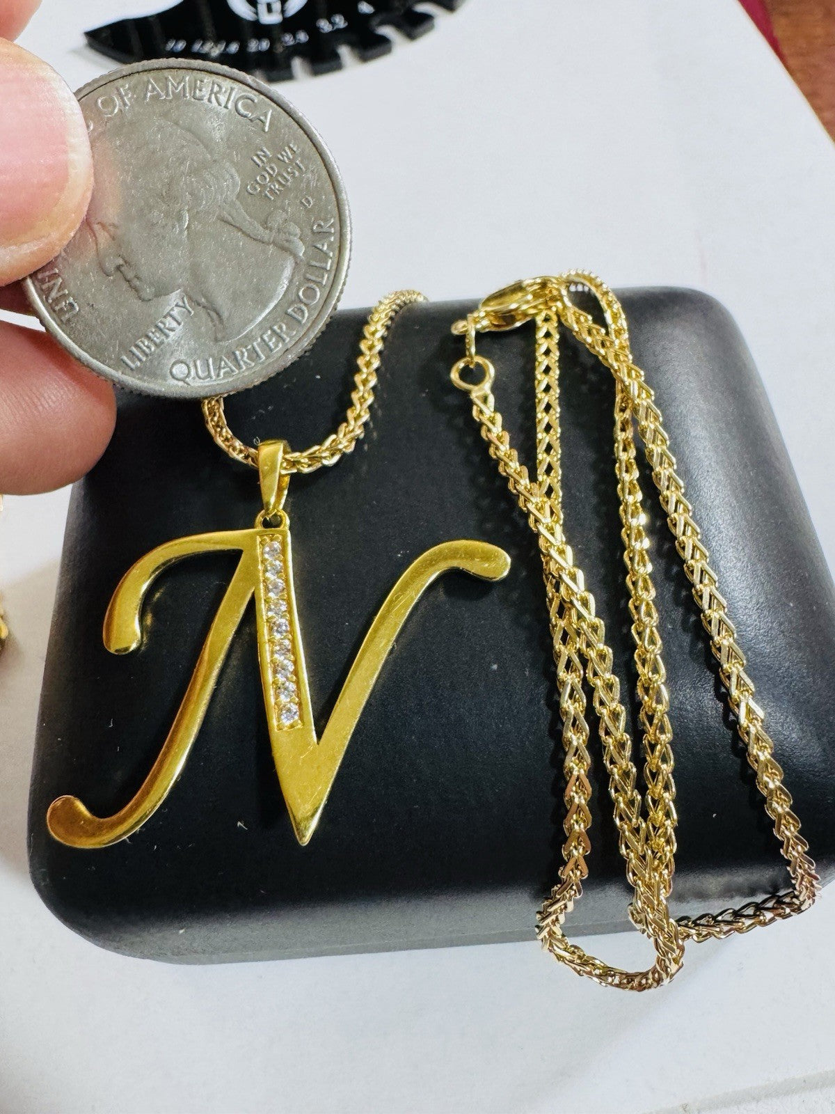 18K 750 Real Genuine Gold Letter N Set Necklace 15.6/16” Inch Long 4.5g 2.2mm