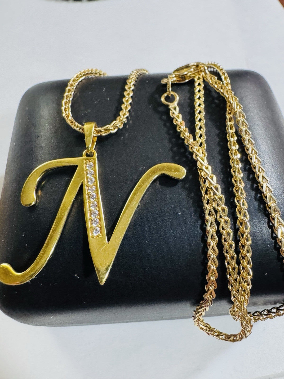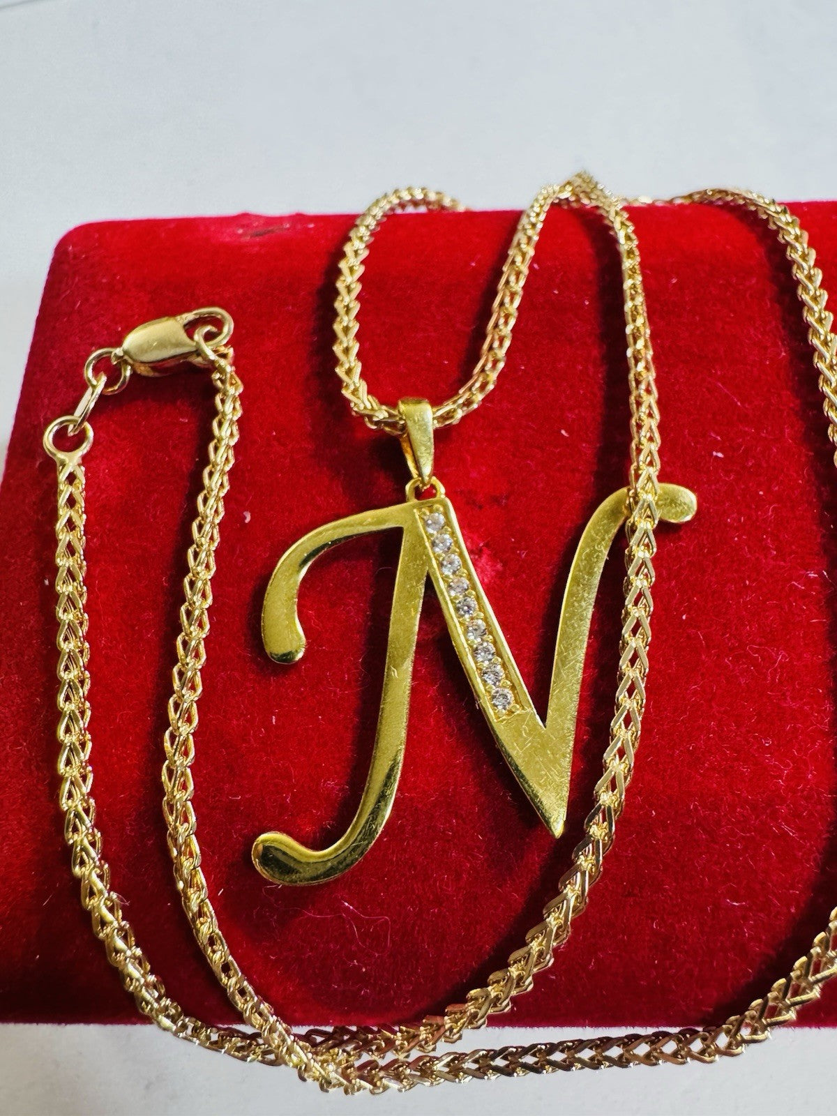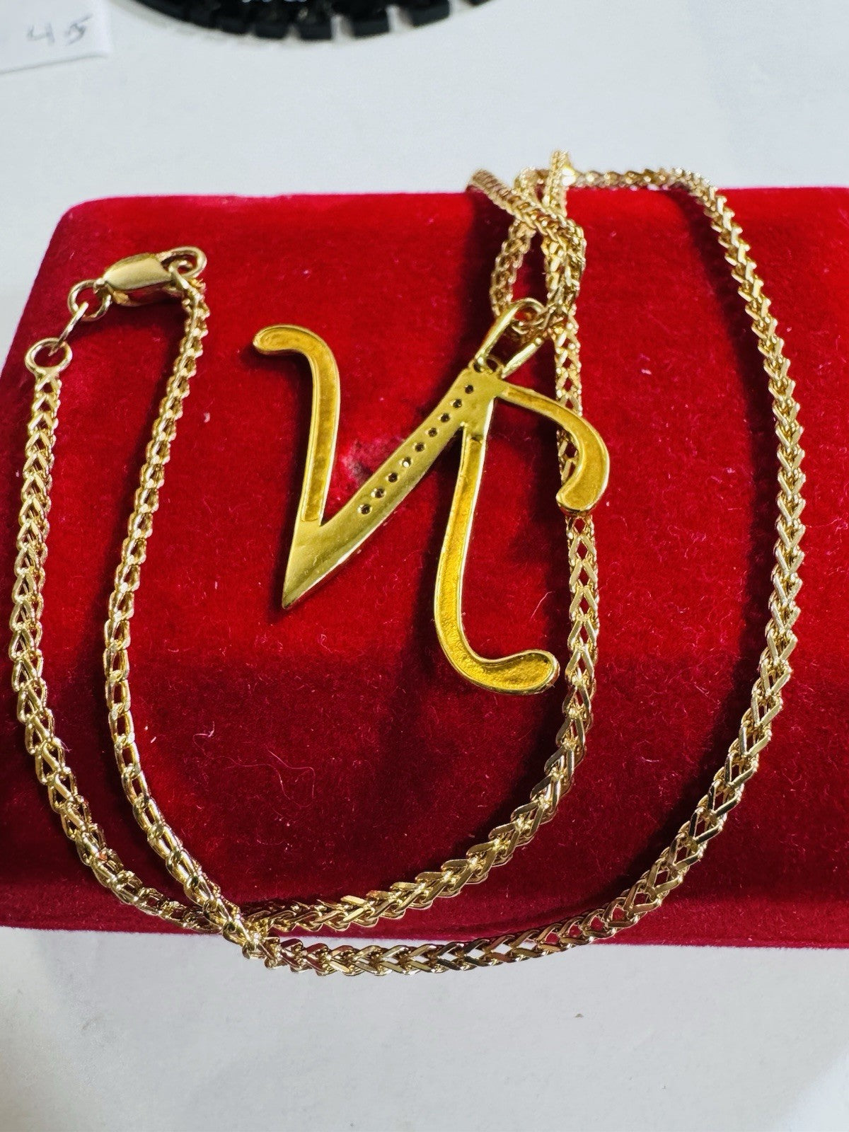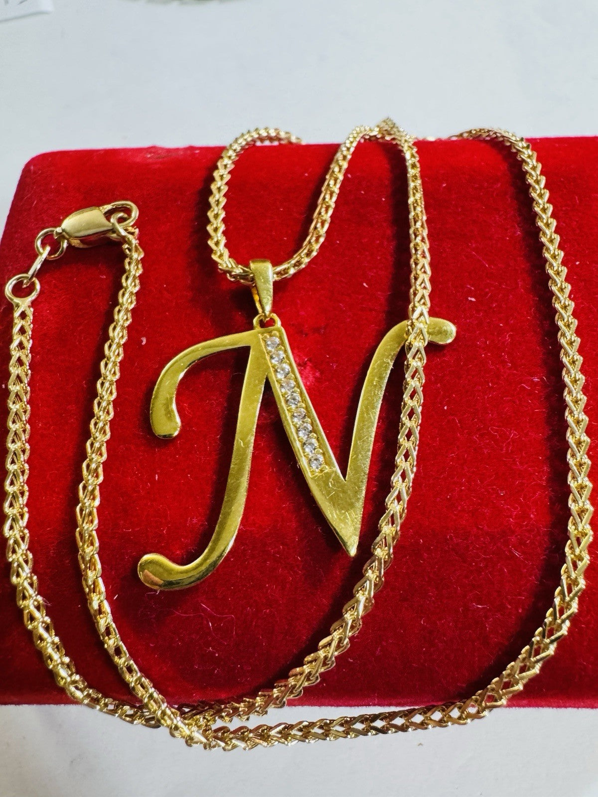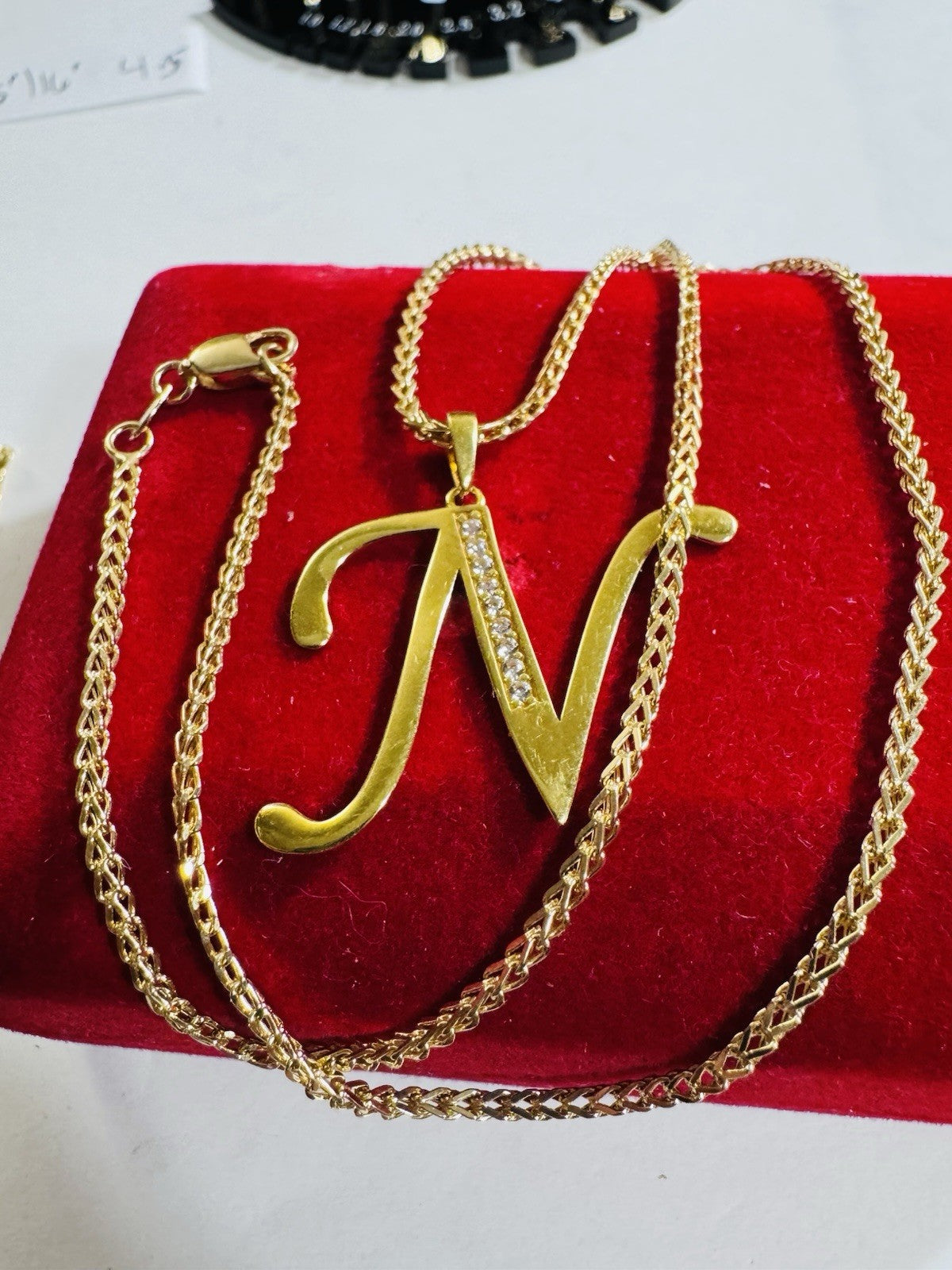 18K 750 Real Genuine Gold Letter N Set Necklace 15.6/16” Inch Long 4.5g 2.2mm