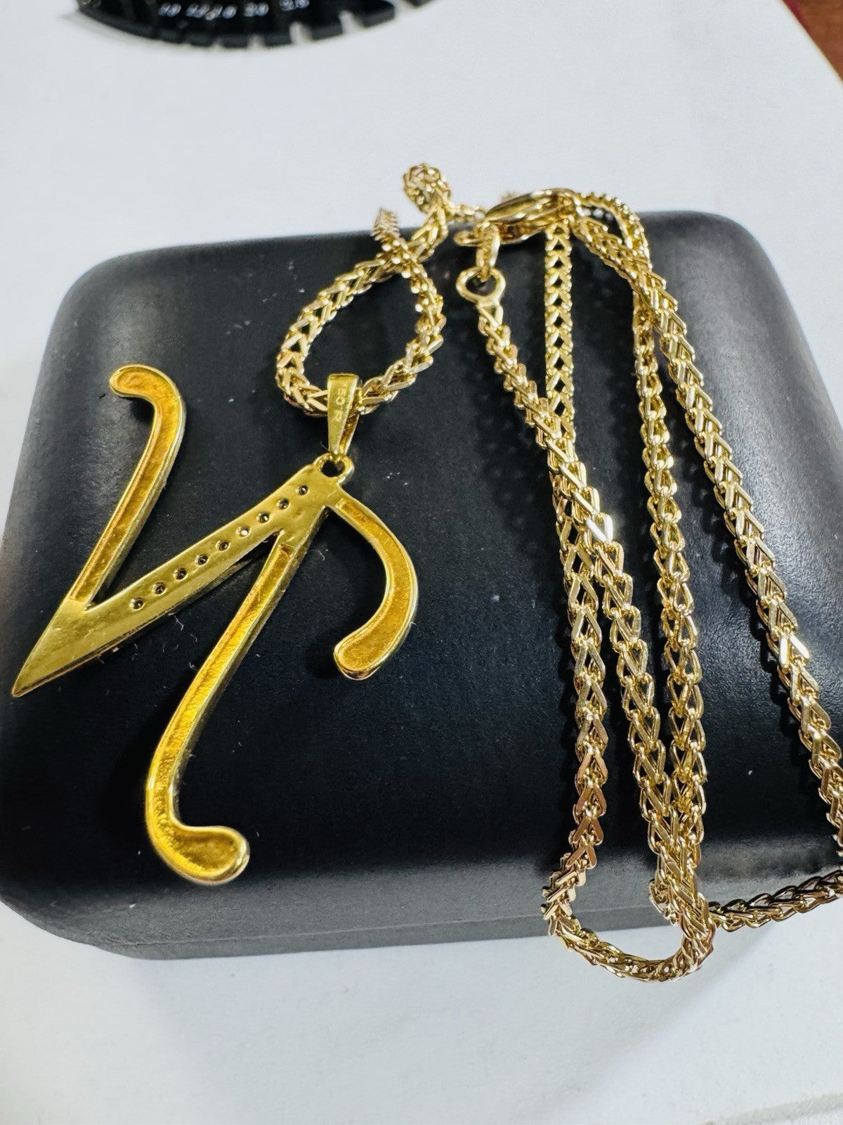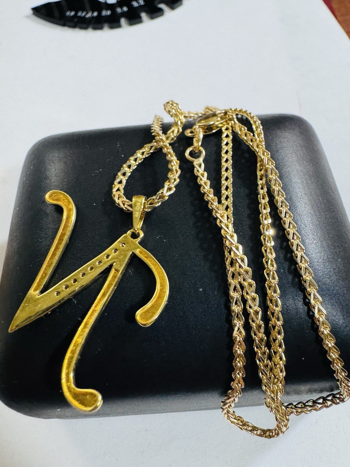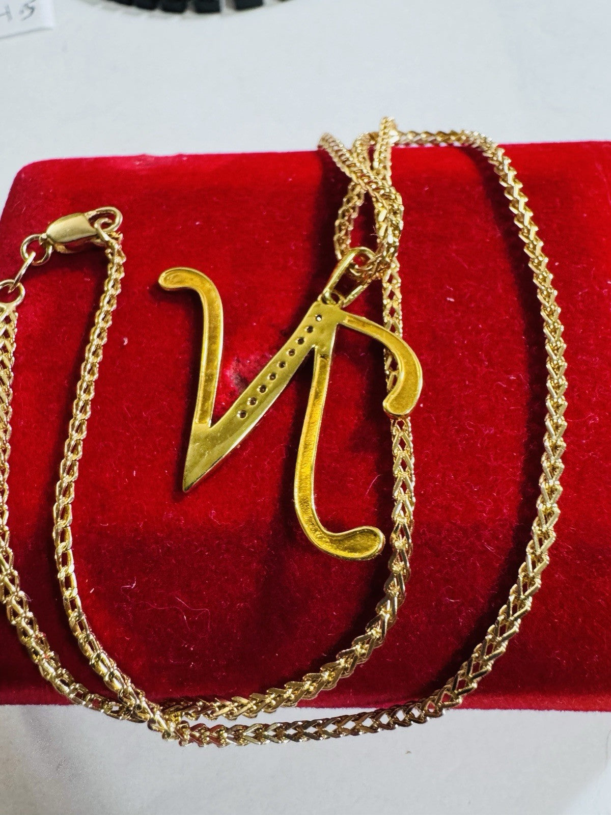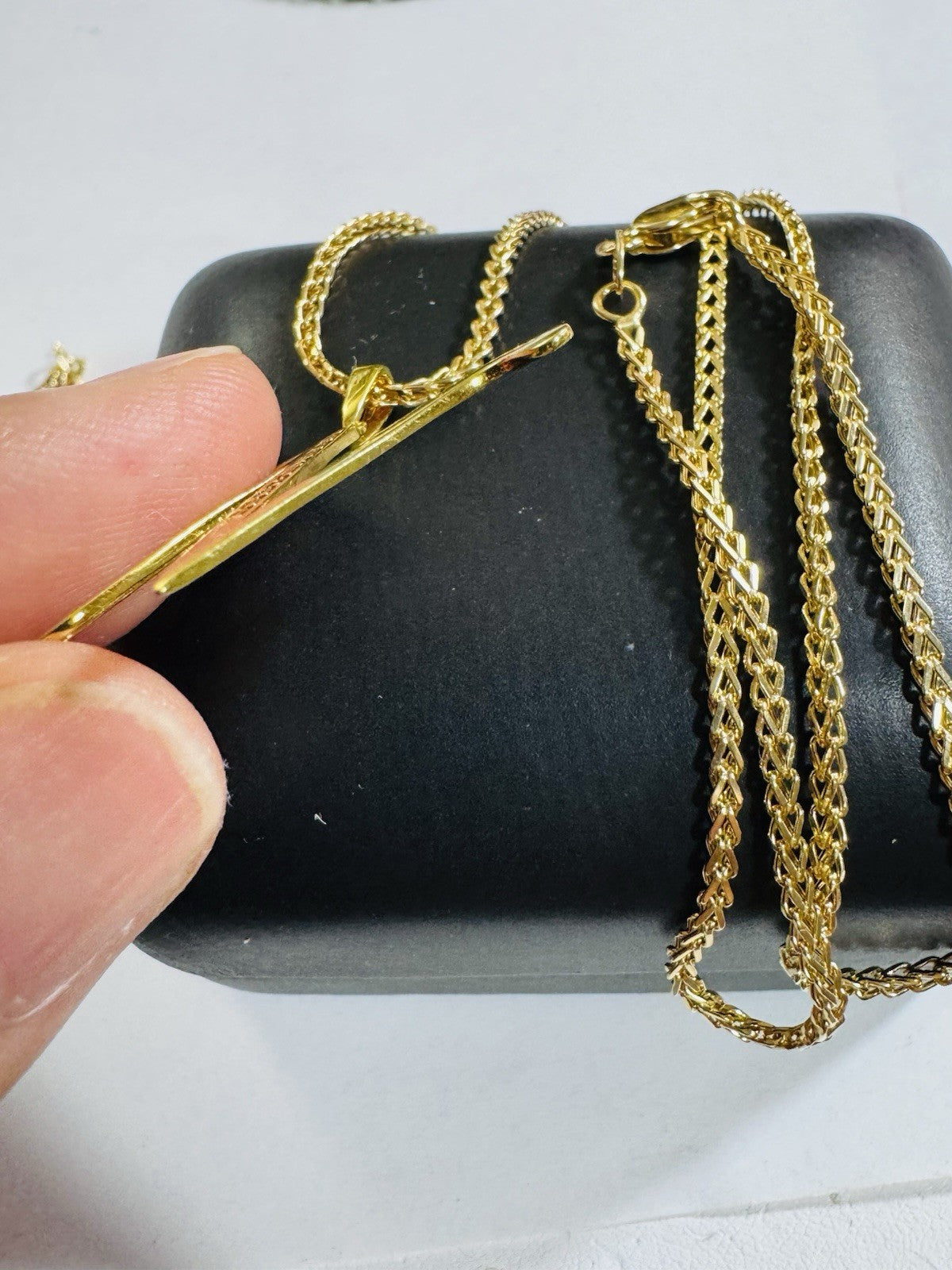 18K 750 Real Genuine Gold Letter N Set Necklace 15.6/16” Inch Long 4.5g 2.2mm