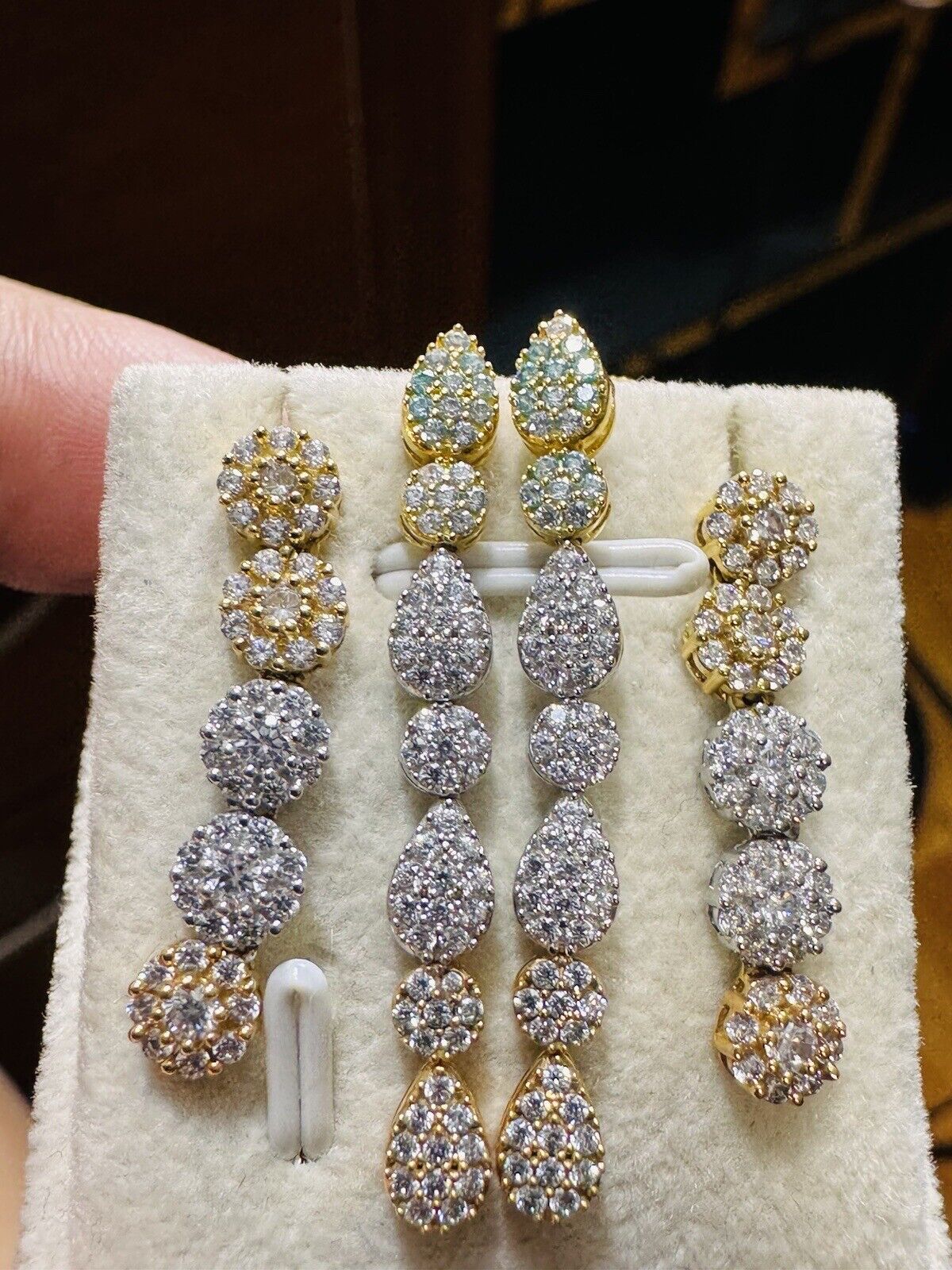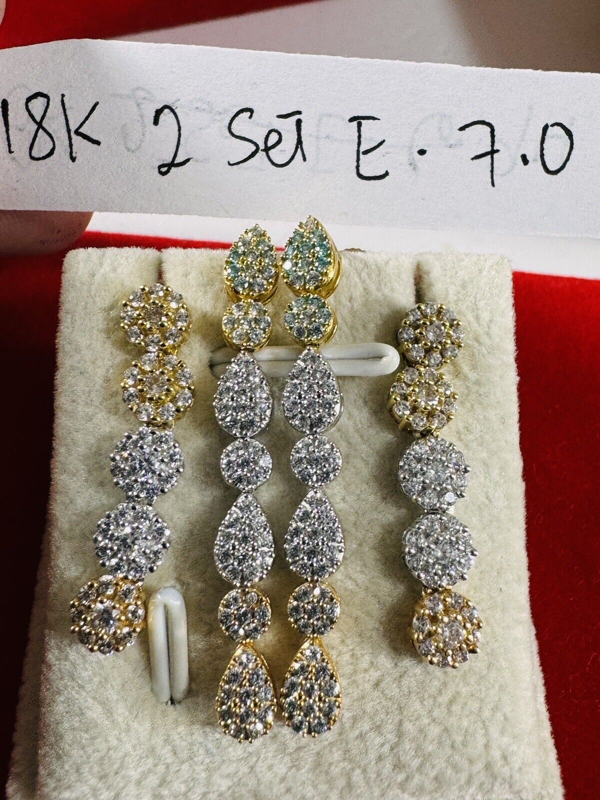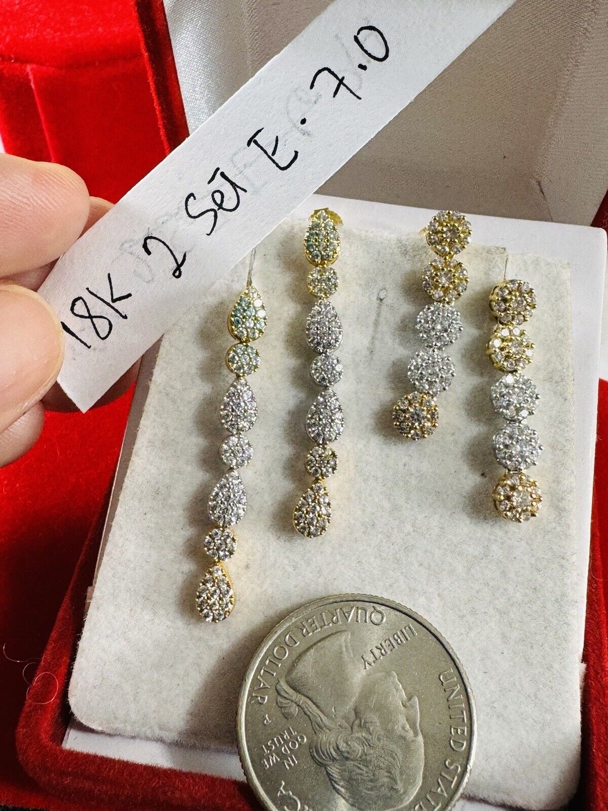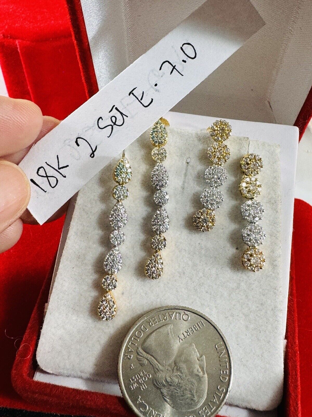 You are buying Beautiful Solid 18K Earring 750 Fine Saudi Real Gold Women’s 2 set of Stone Dangle Earrings 7.0g Stone is Not real diamond. its has multi colors, Fast Ship!