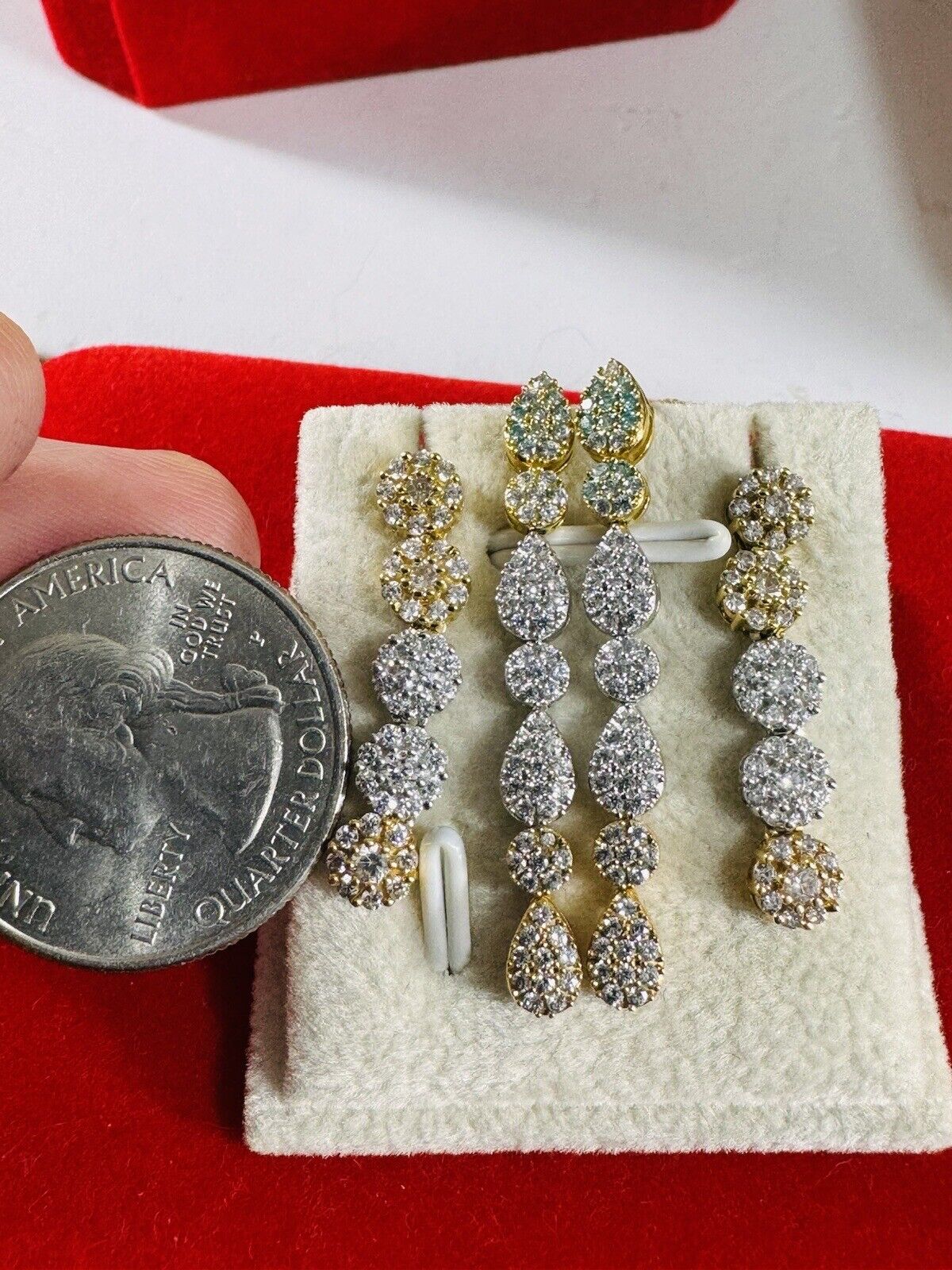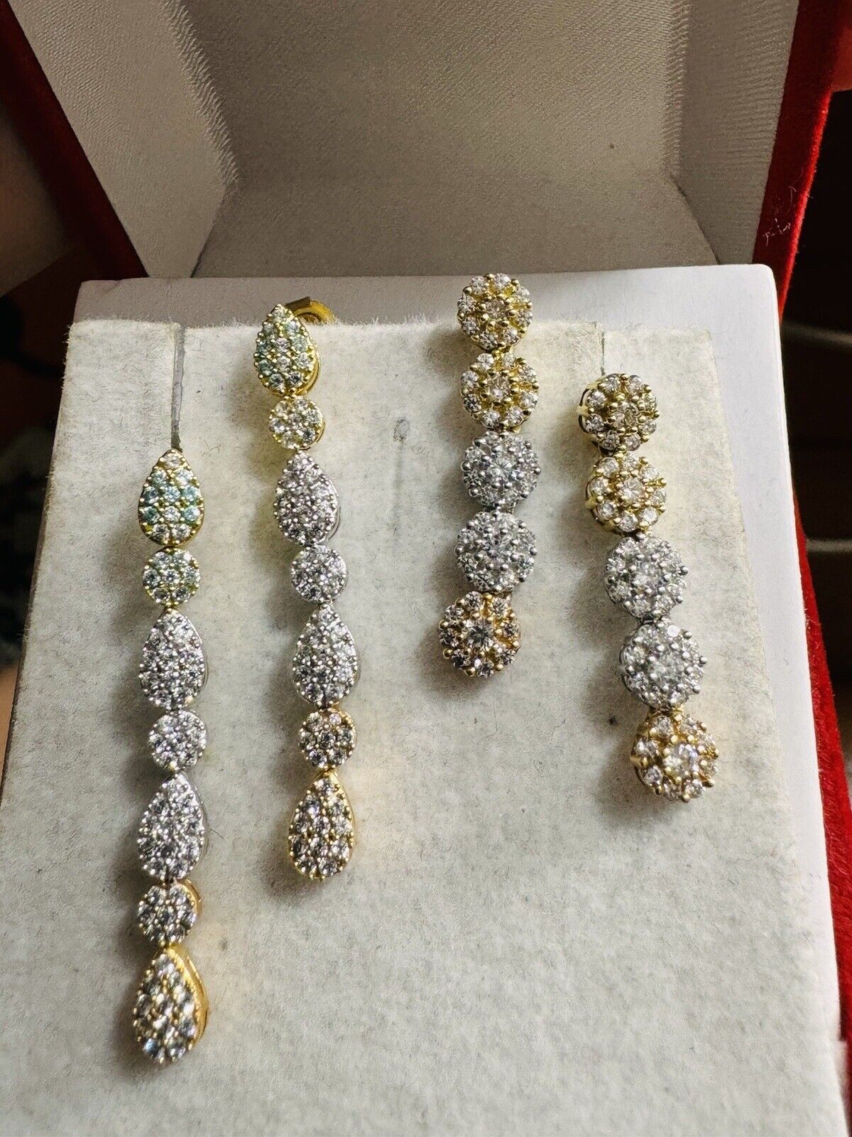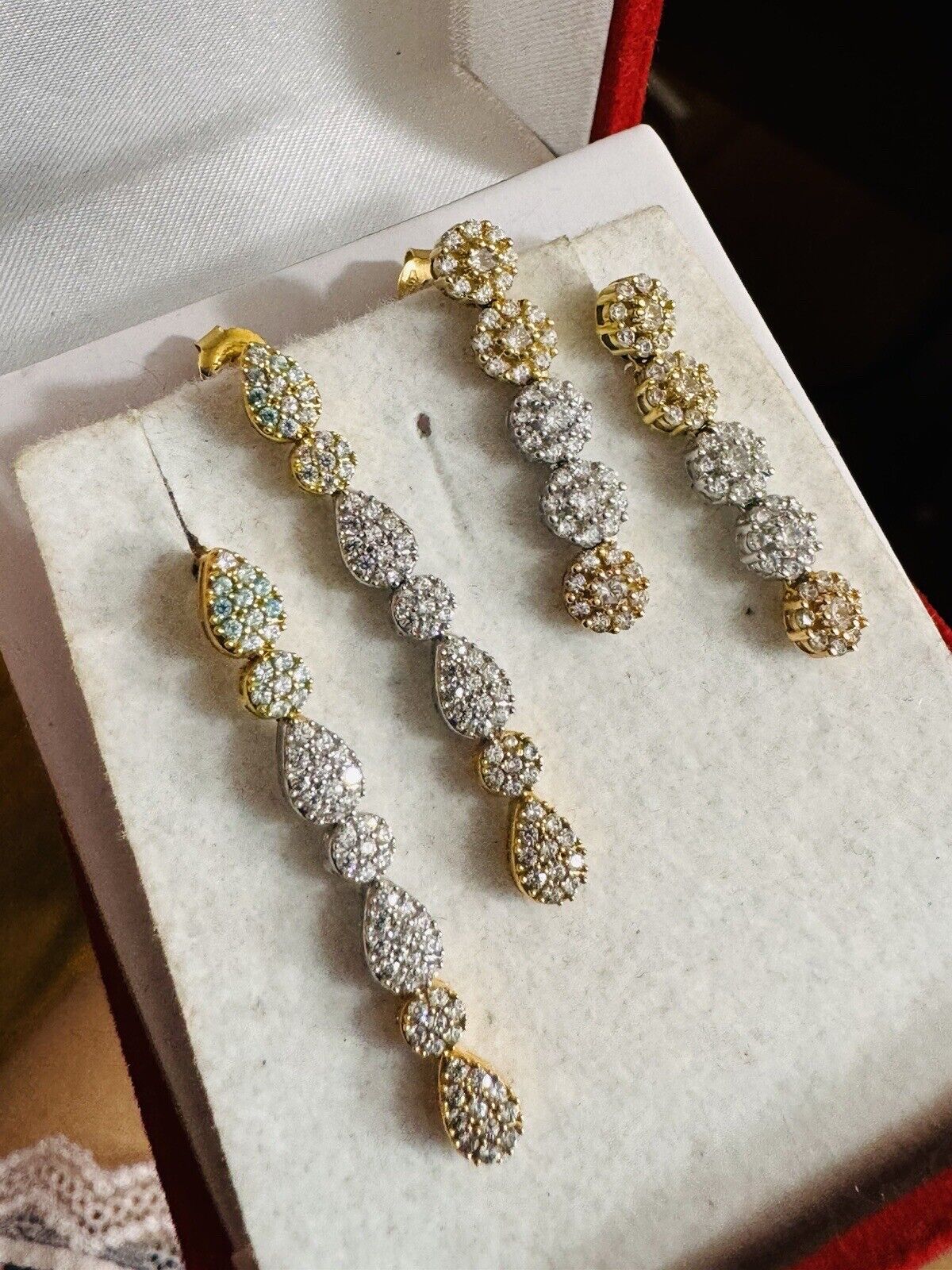 You are buying Beautiful Solid 18K Earring 750 Fine Saudi Real Gold Women’s 2 set of Stone Dangle Earrings 7.0g Stone is Not real diamond. its has multi colors, Fast Ship!