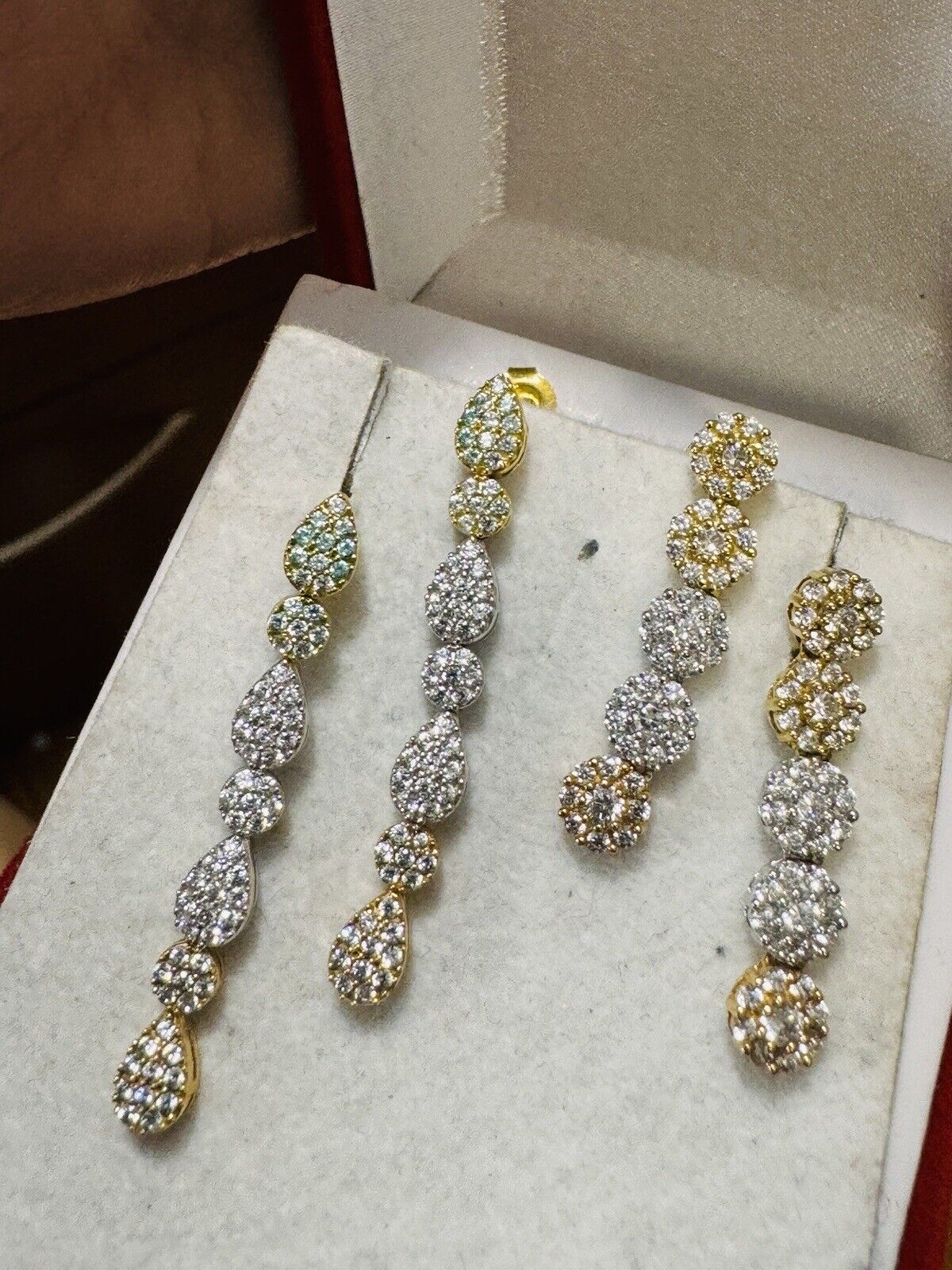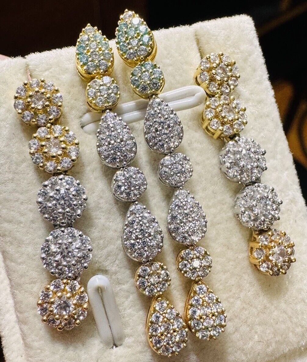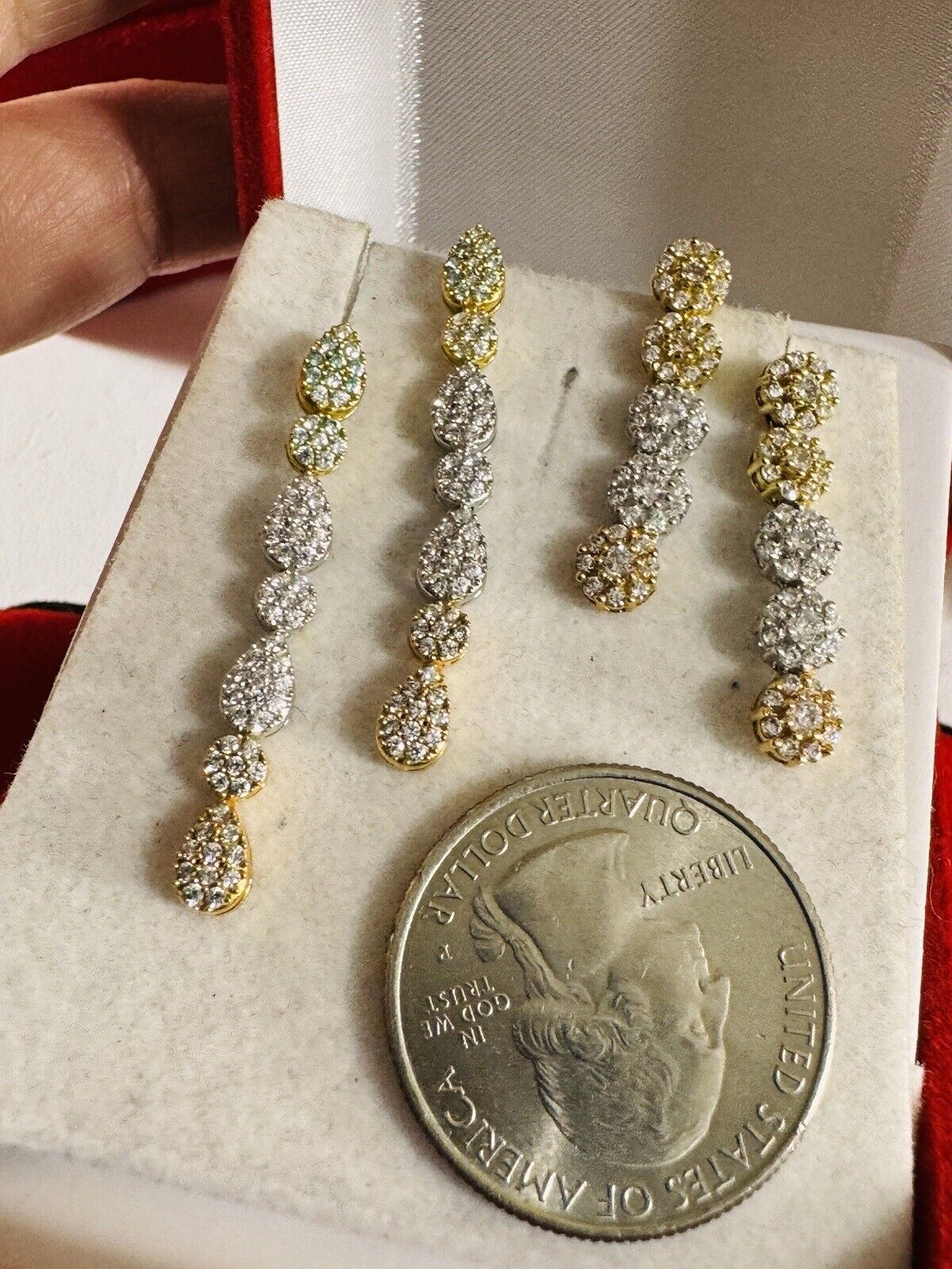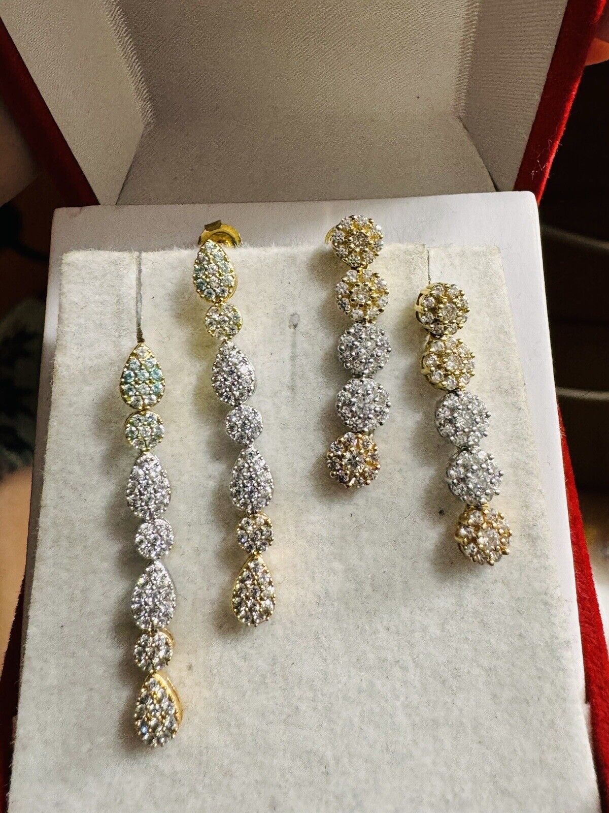 You are buying Beautiful Solid 18K Earring 750 Fine Saudi Real Gold Women’s 2 set of Stone Dangle Earrings 7.0g Stone is Not real diamond. its has multi colors, Fast Ship!