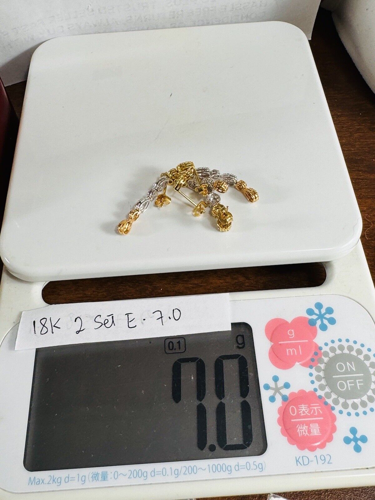18K Earring 750 Fine Saudi Real Gold 2 Set Dangle Stone Women’s Earring 7.0g