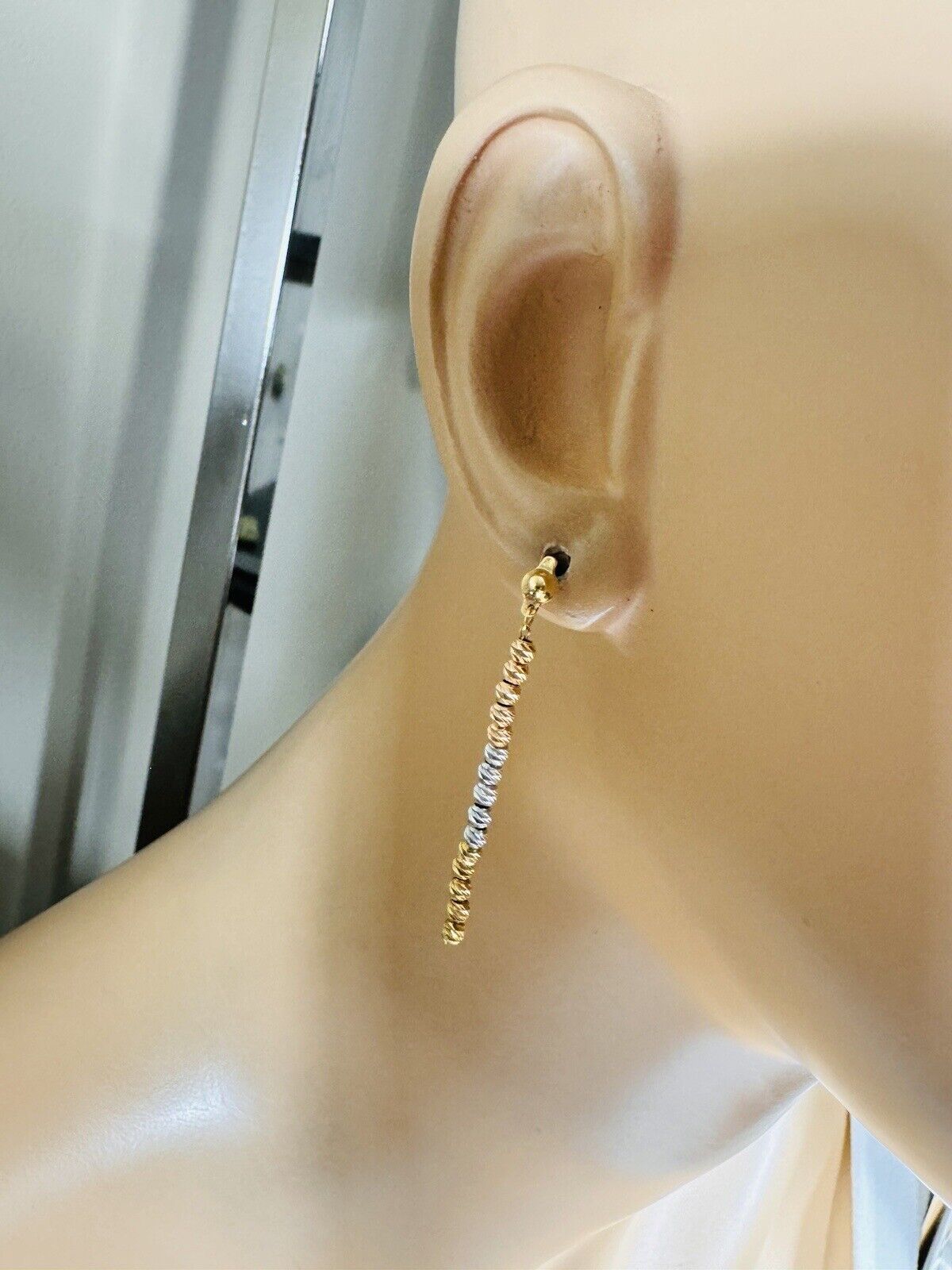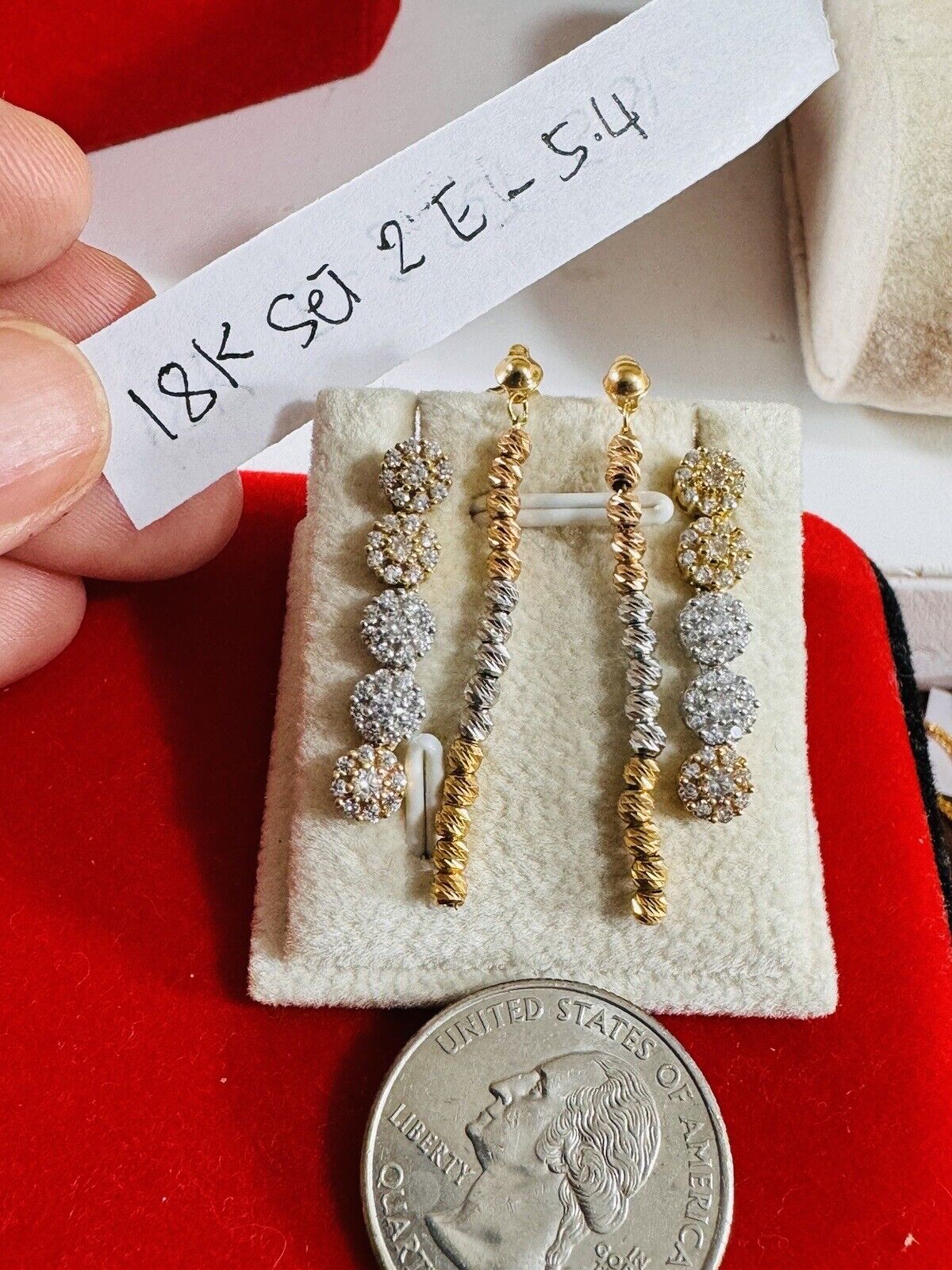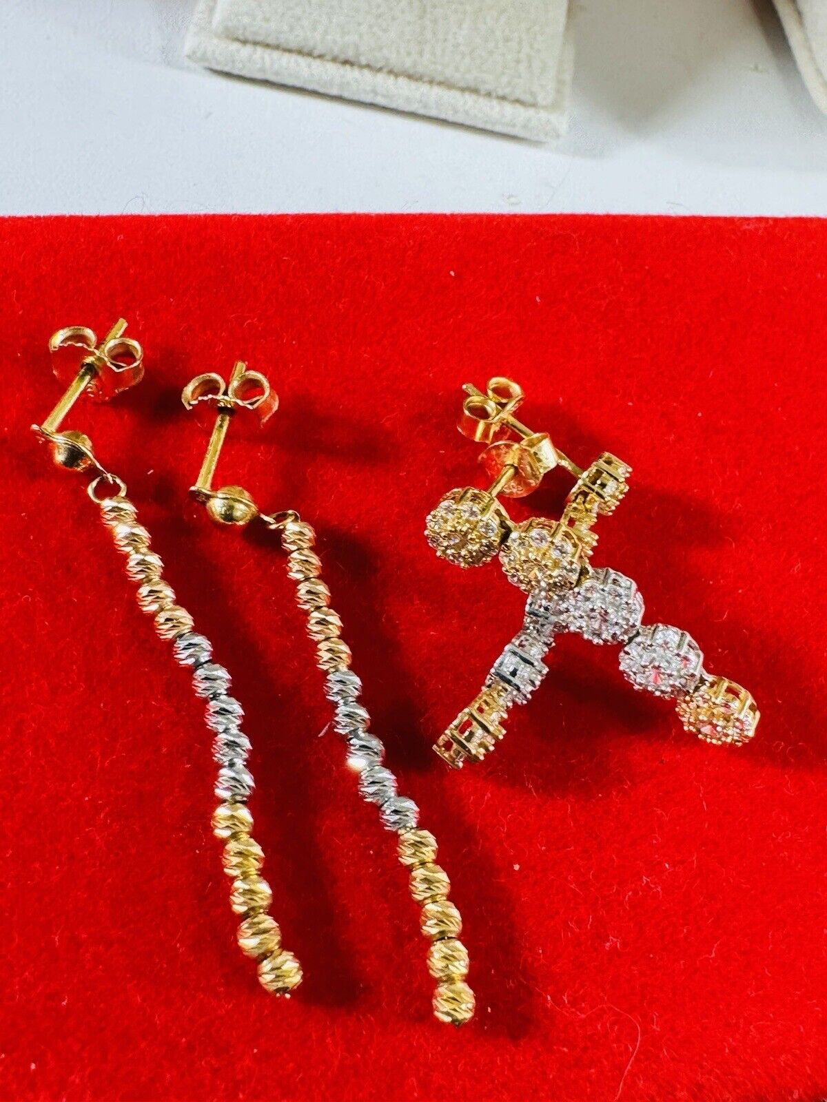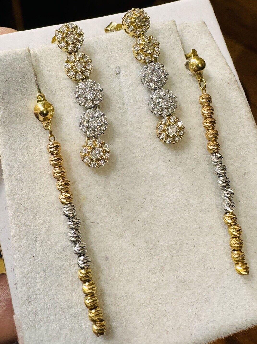 You are buying Beautiful Solid 18K Earring 750 Fine Saudi Real Gold Women’s 2 set Dangle Earrings 5.4g Stone is Not real diamond. Tricolors- Fast Ship!