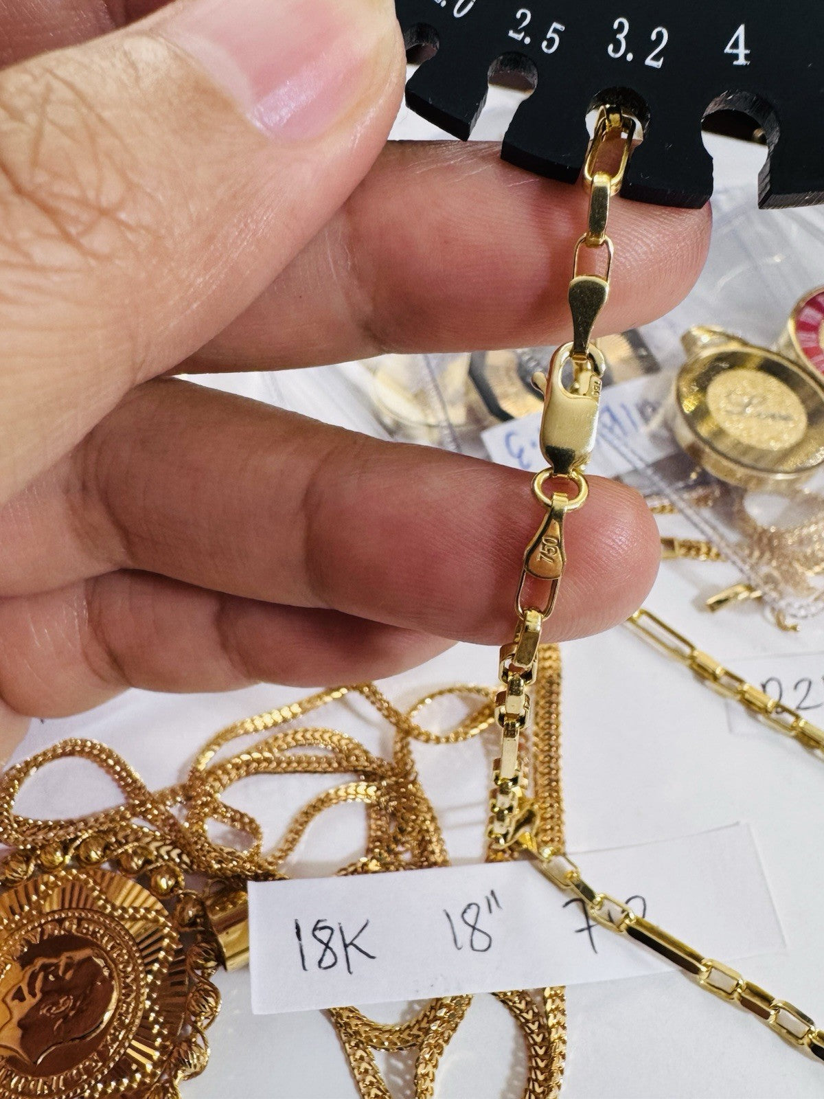 This beautiful Set necklace is expertly crafted in 18K 750 real yellow gold and features a stunning 18 inch chain with a lobster clasp with 3.2mm wide. 7.2g