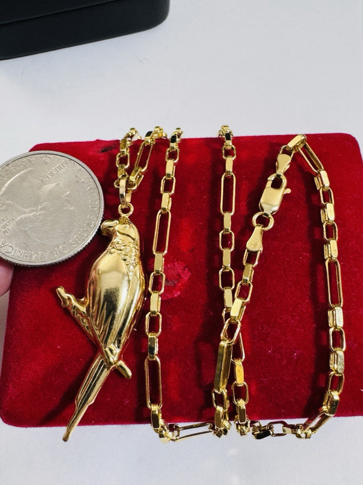 Solid 18K 750 Dubai Fine Genuine Real Gold Bird Set Necklace 18” Long 7.2g 3.2mm