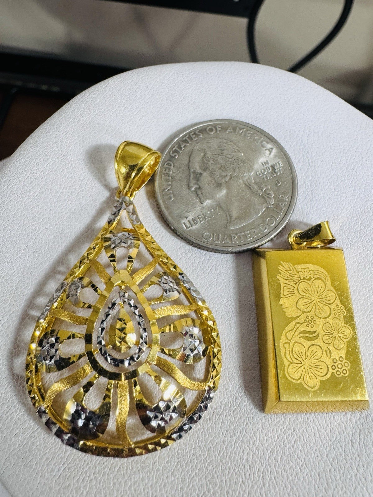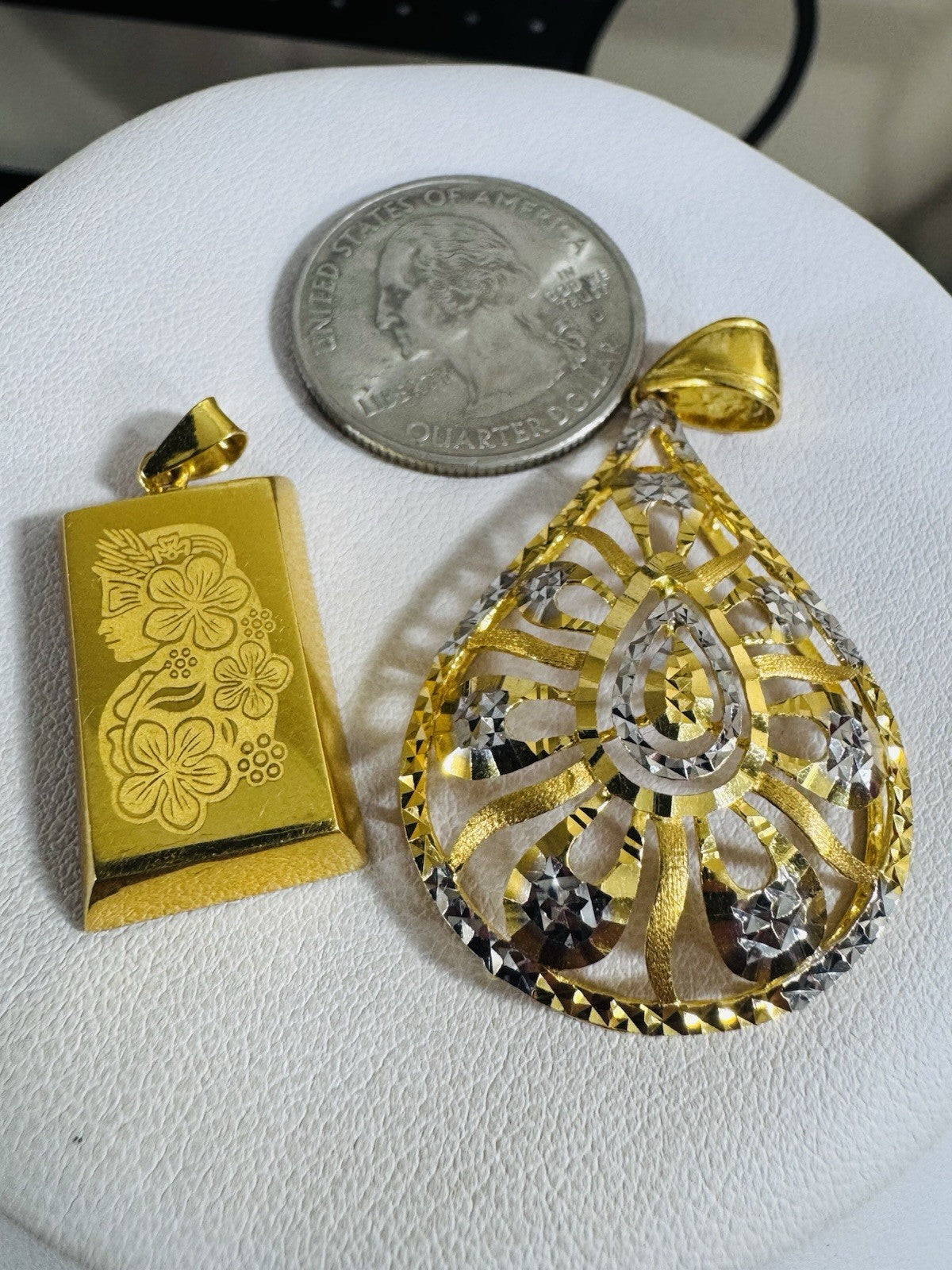 Solid 22K 916 Real Pure Gold Two (2) Set of Pendant Teardrop & Rectangle 10.7g