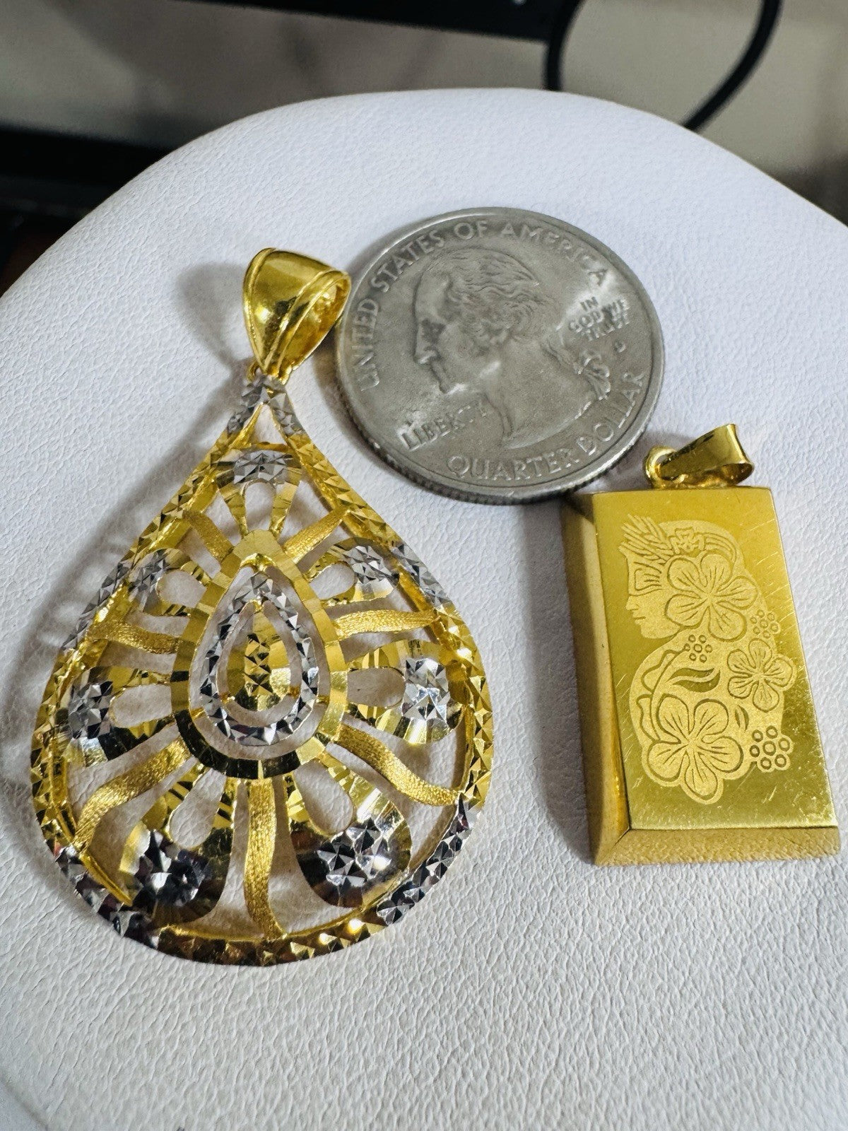 Solid 22K 916 Fine Real Gold Two Set Pendant 10.7 grams