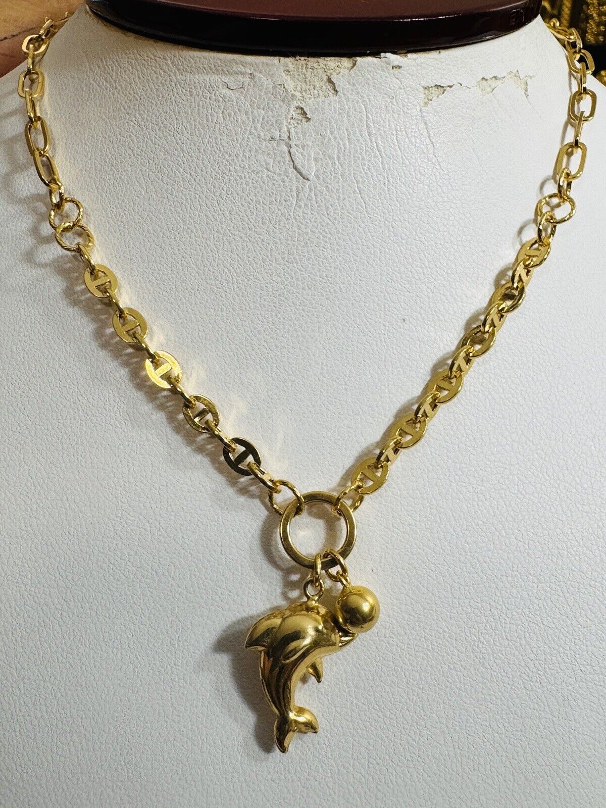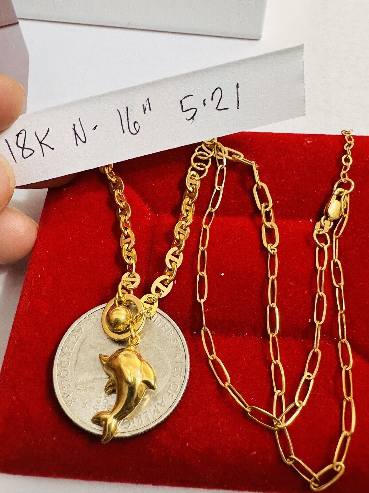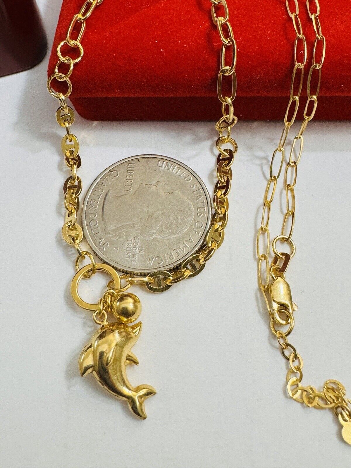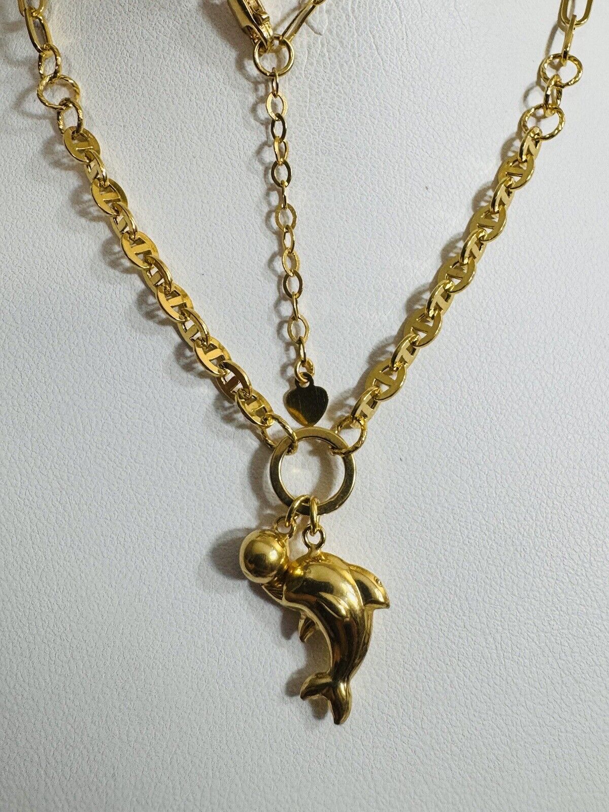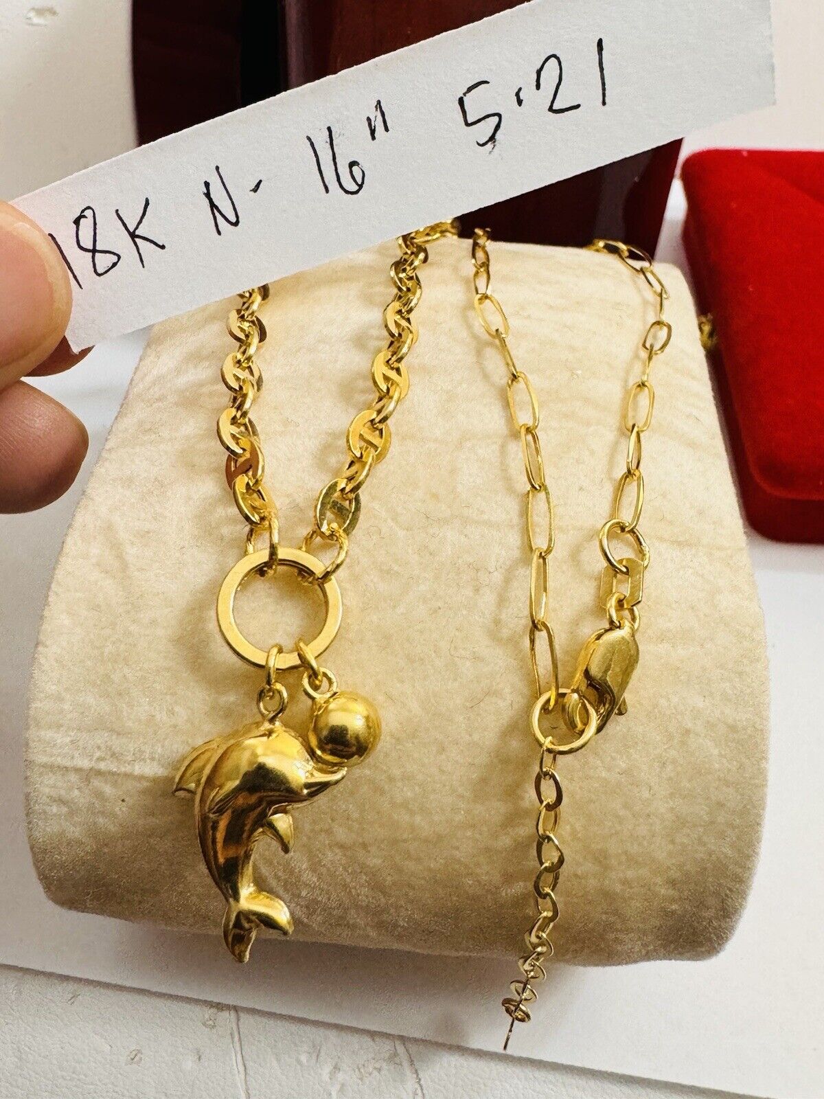 18K 750 Yellow fine Gold Dolphin Set Necklace 16” Long 5.2g Womens