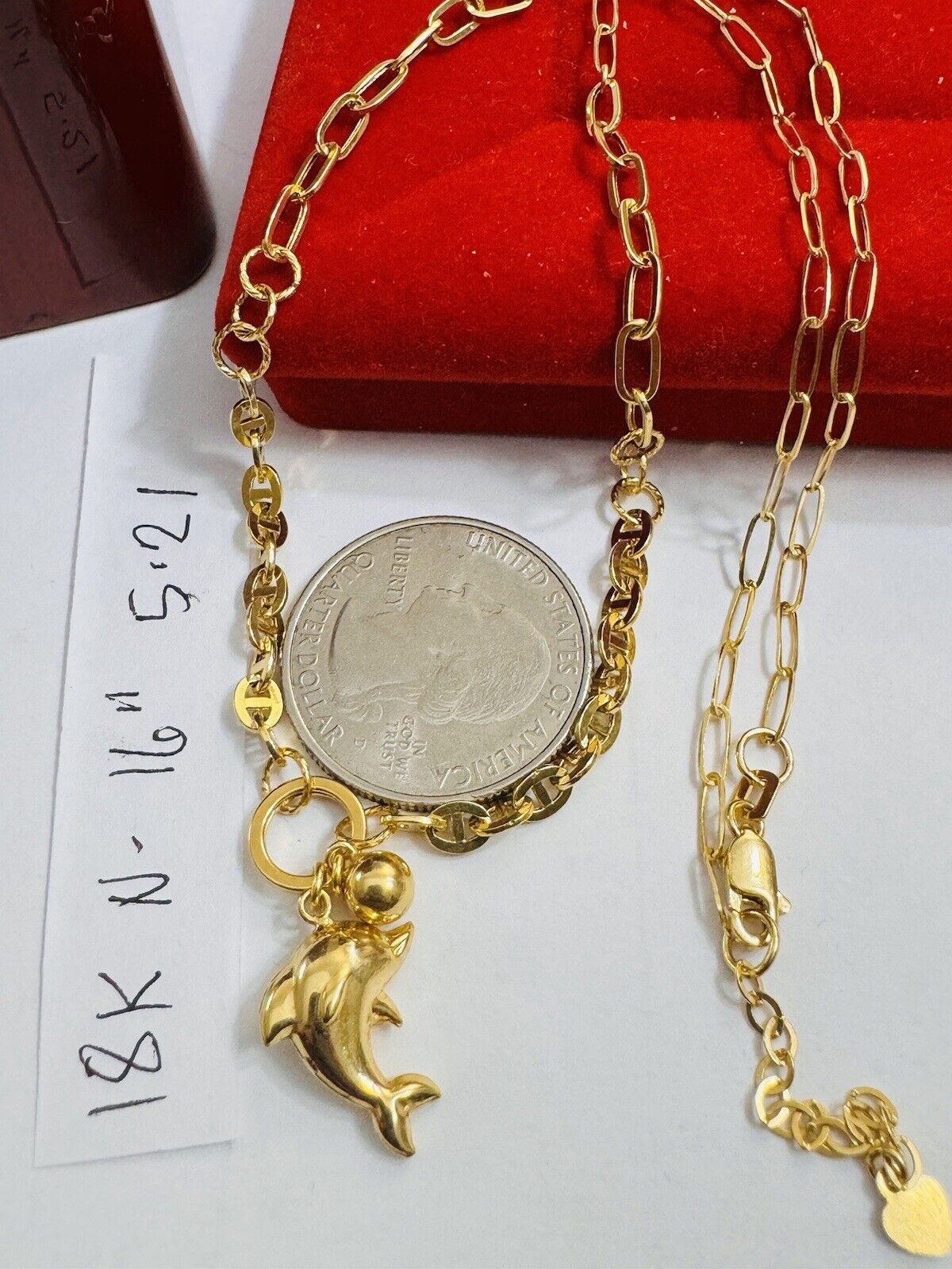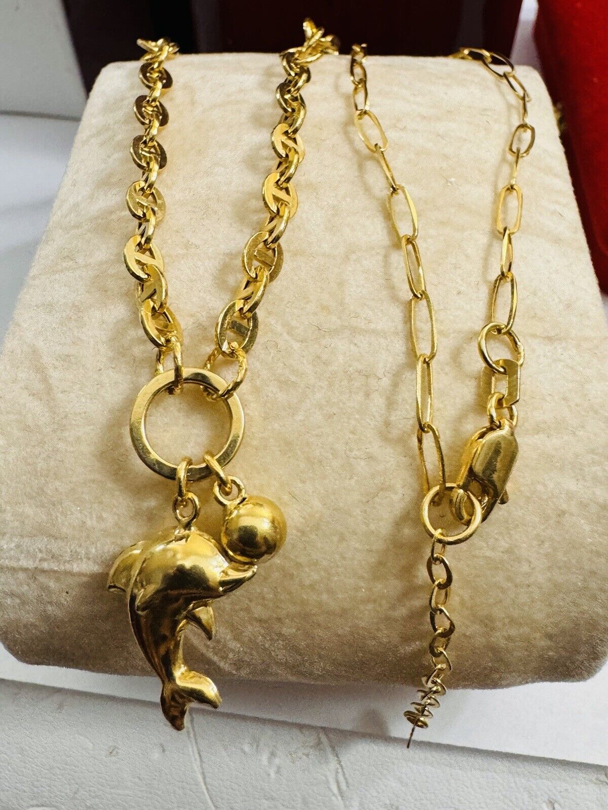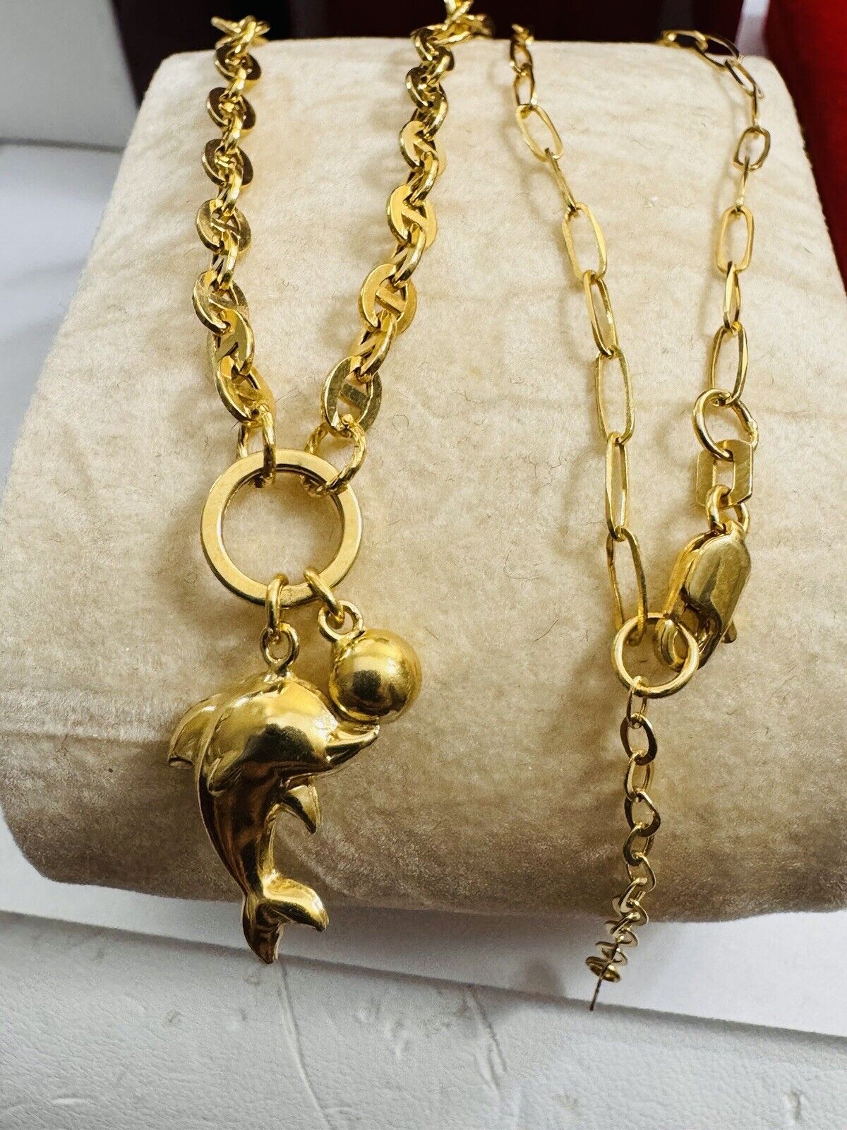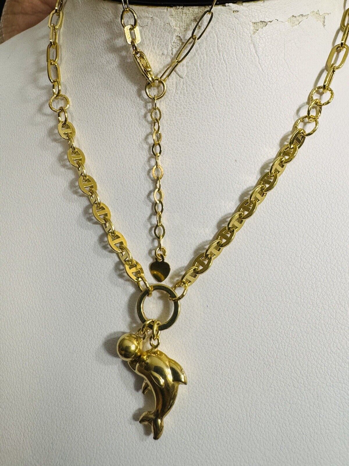 18K 750 Yellow fine Gold Dolphin Set Necklace 16” Long 5.2g Womens