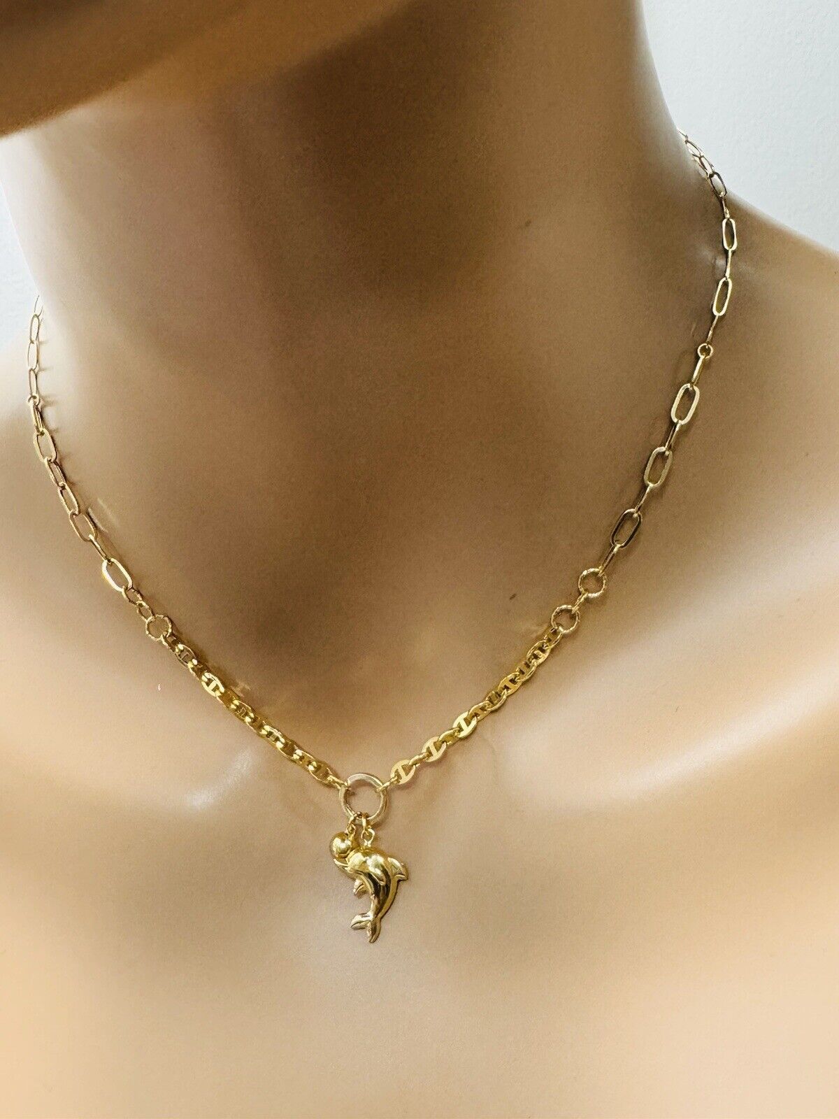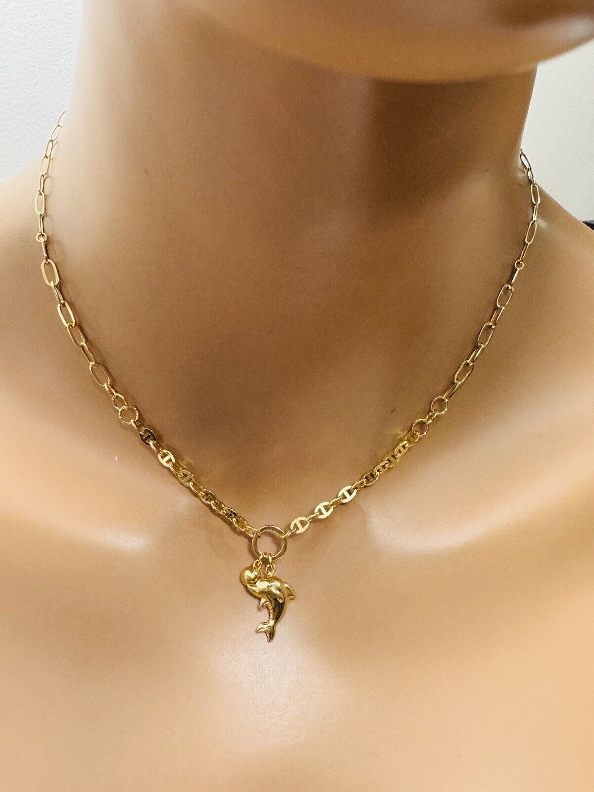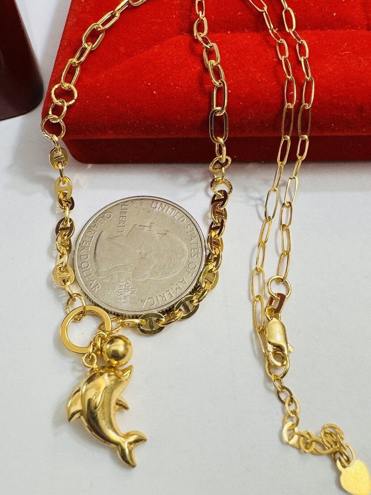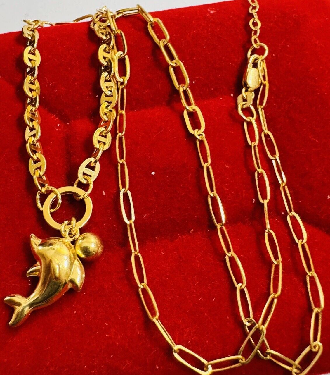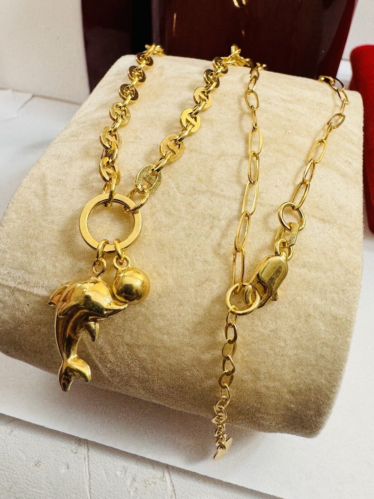 18K 750 Yellow fine Gold Dolphin Set Necklace 16” Long 5.2g Womens