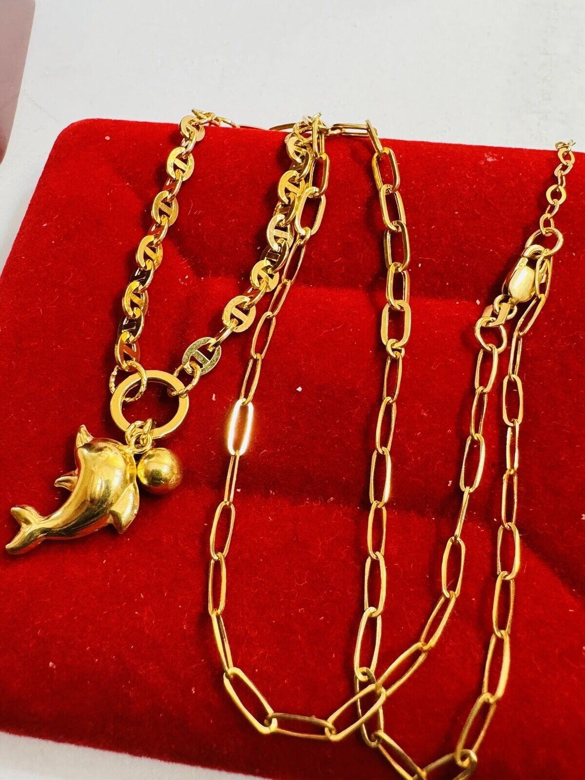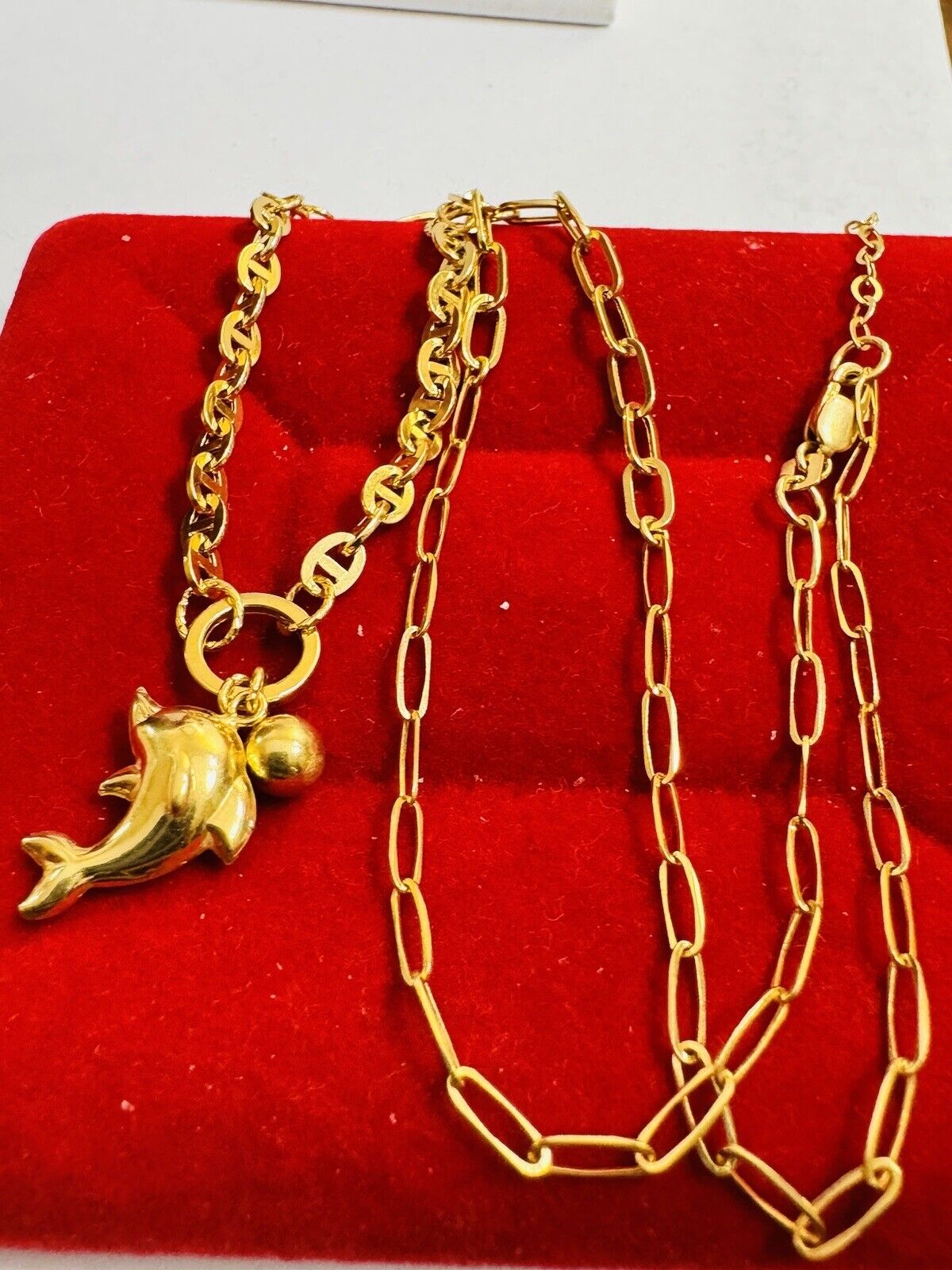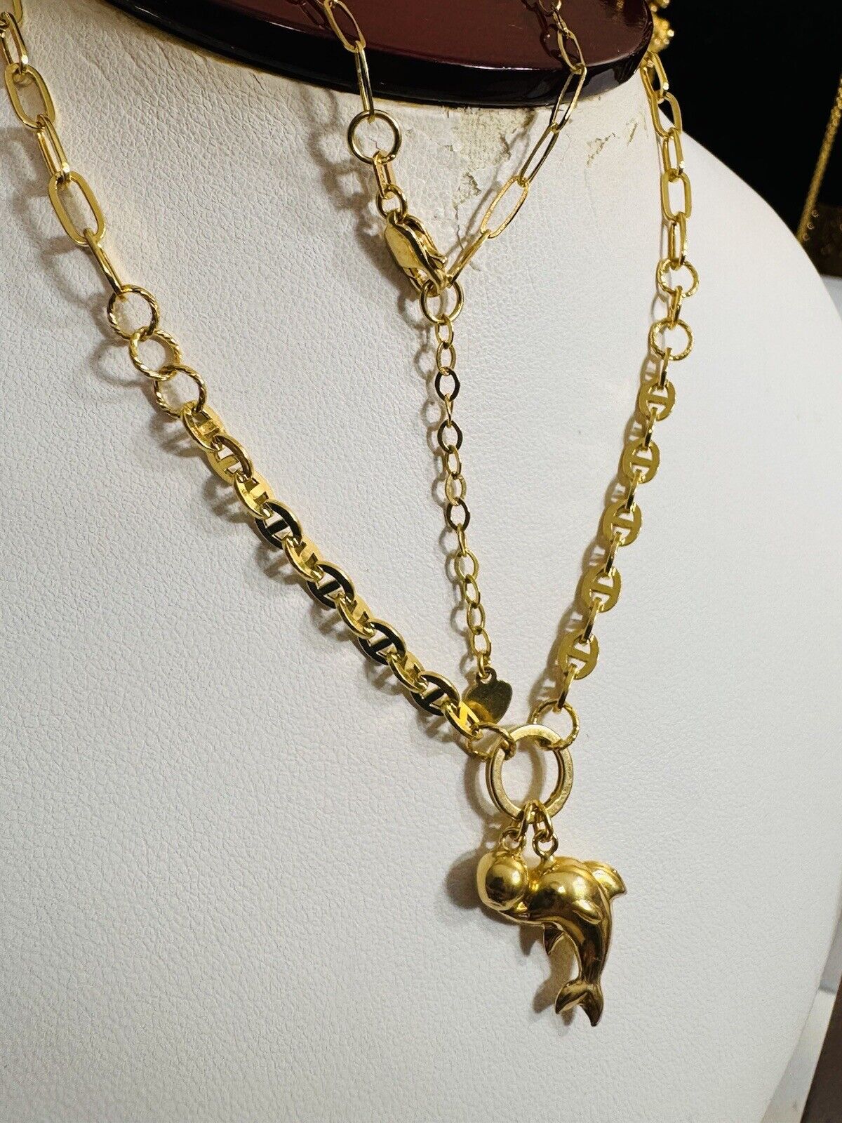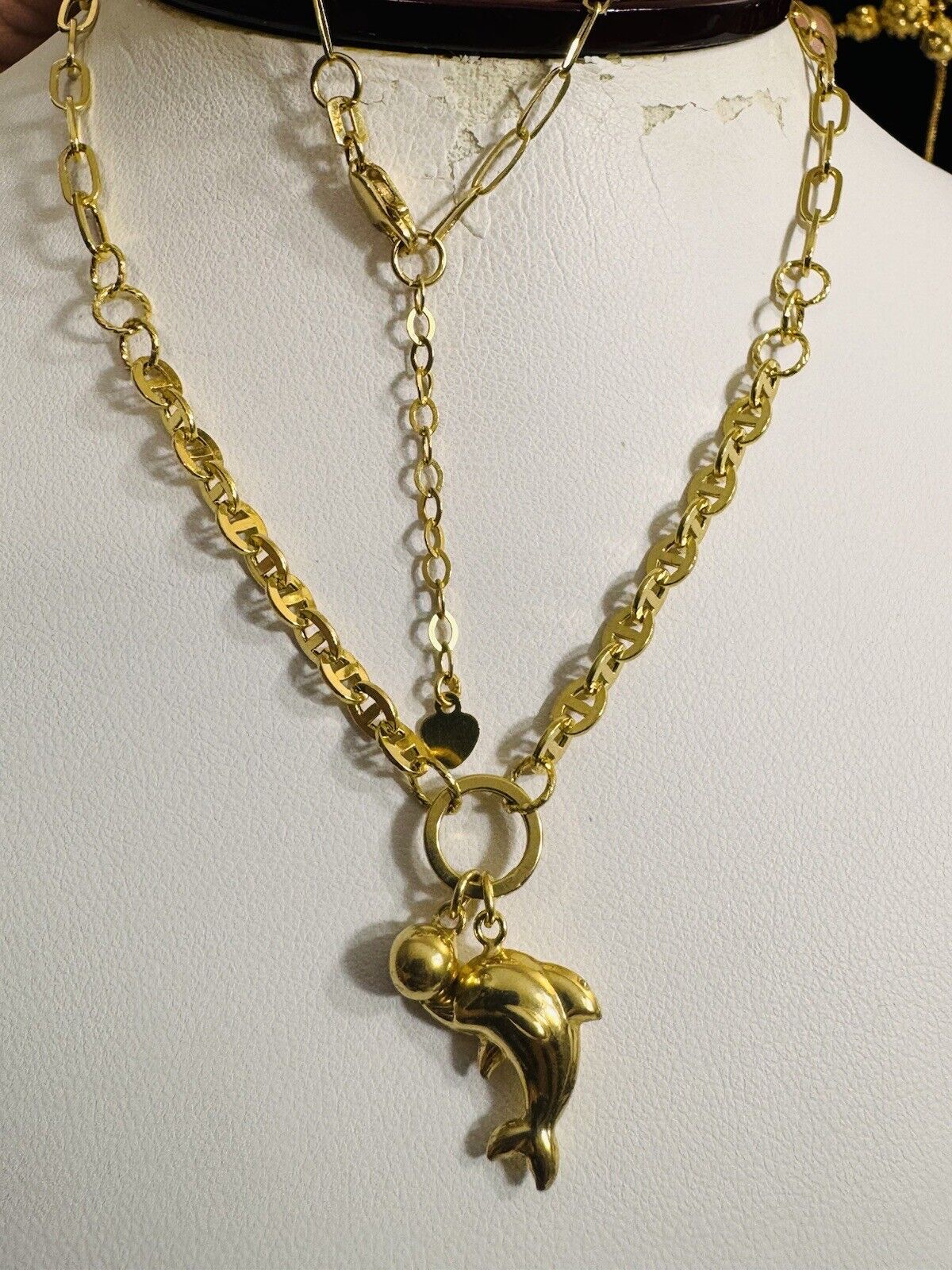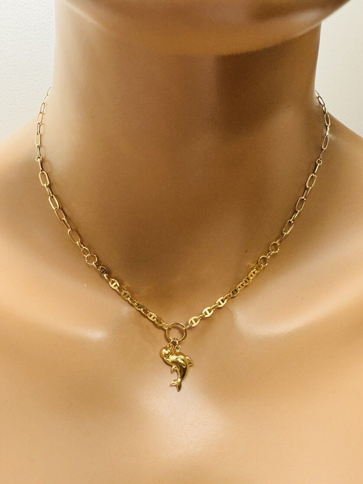 18K 750 Yellow fine Gold Dolphin Set Necklace 16” Long 5.2g Womens