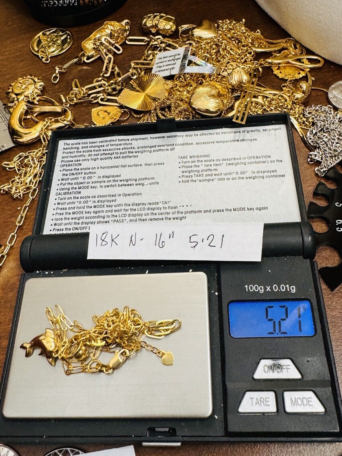 18K 750 Real Pure Gold Two Set Earring & Pendant Hoop & Heart Ring 6/6.5” 7.5g