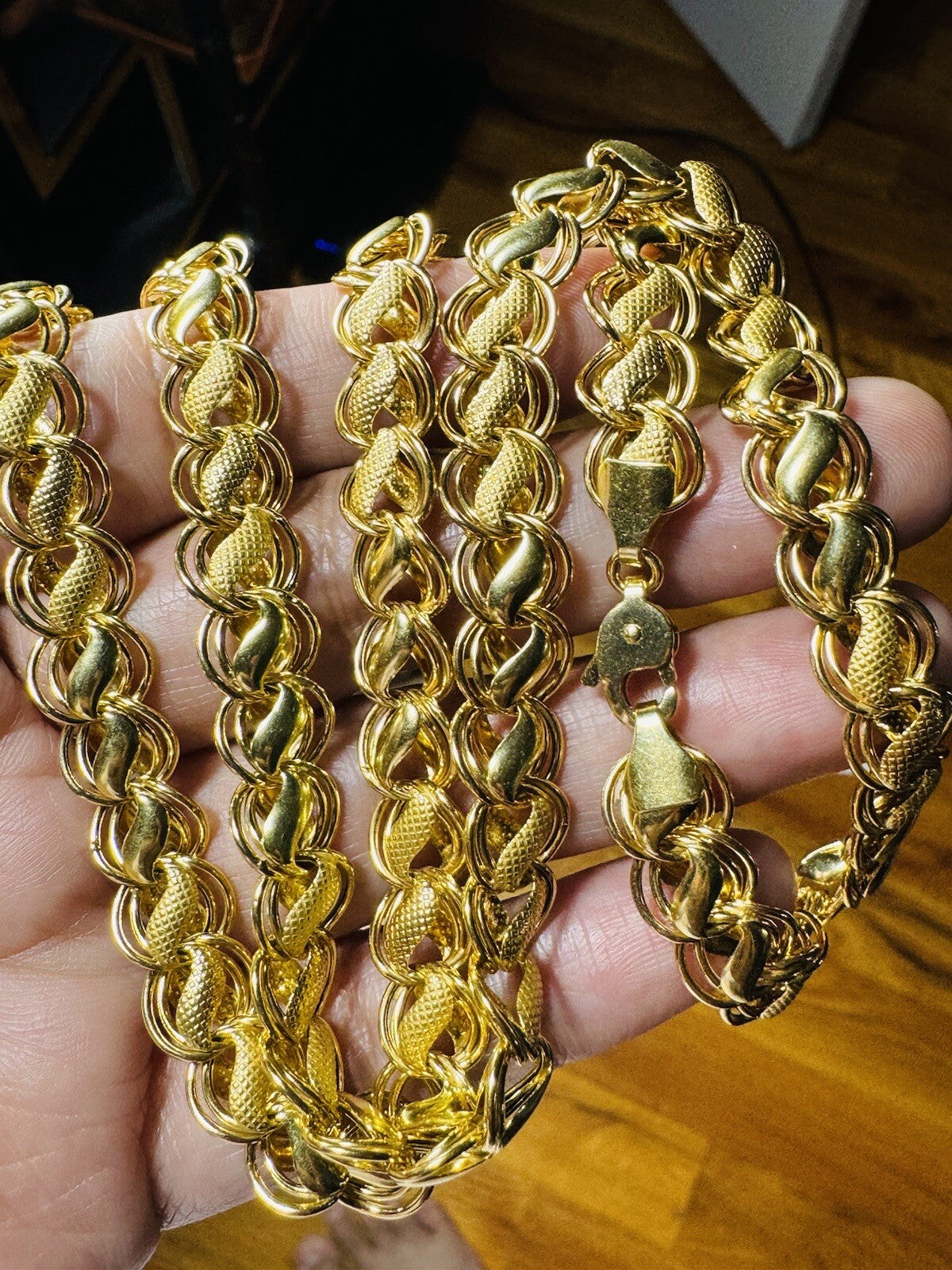 * Hello You are buying Real Brand New 18K 750 Real Fine Yellow Gold Damascus Chain Necklace 24.5” Long 10mm 18.4g Fast ship. Good weight Good size yet Hollow inside.