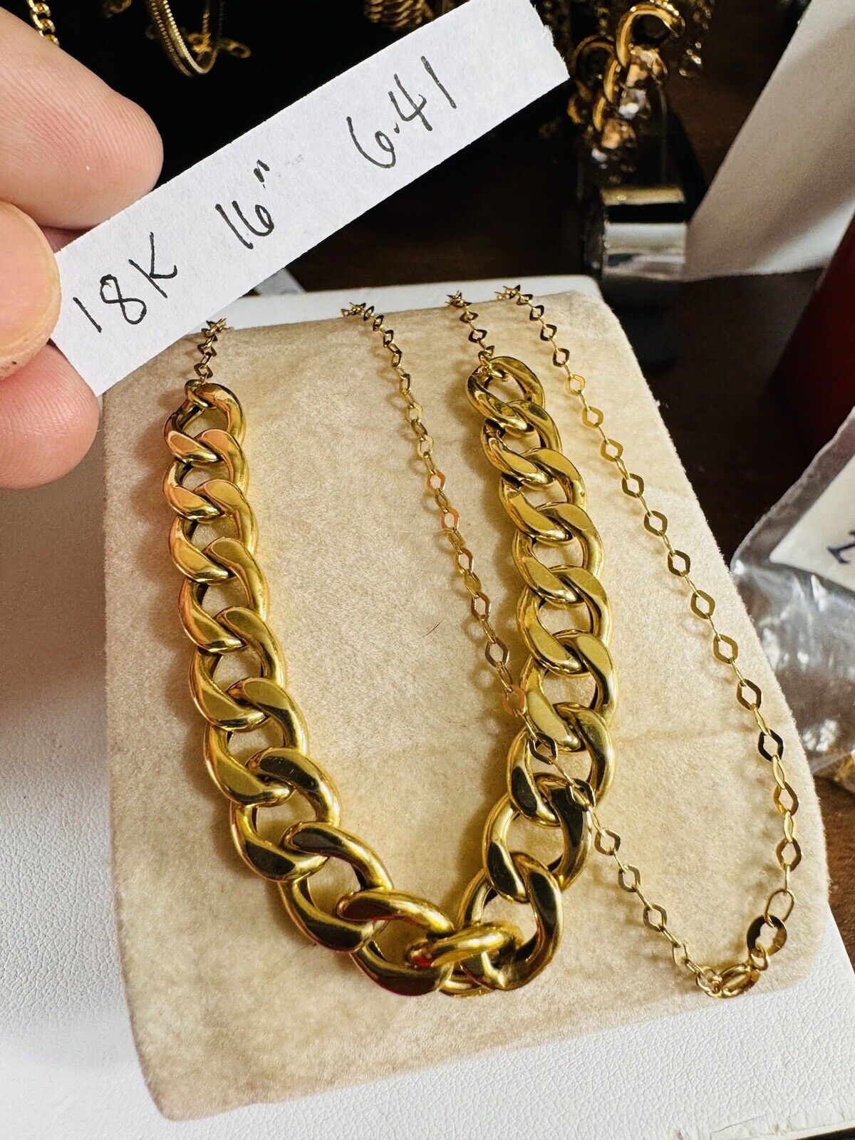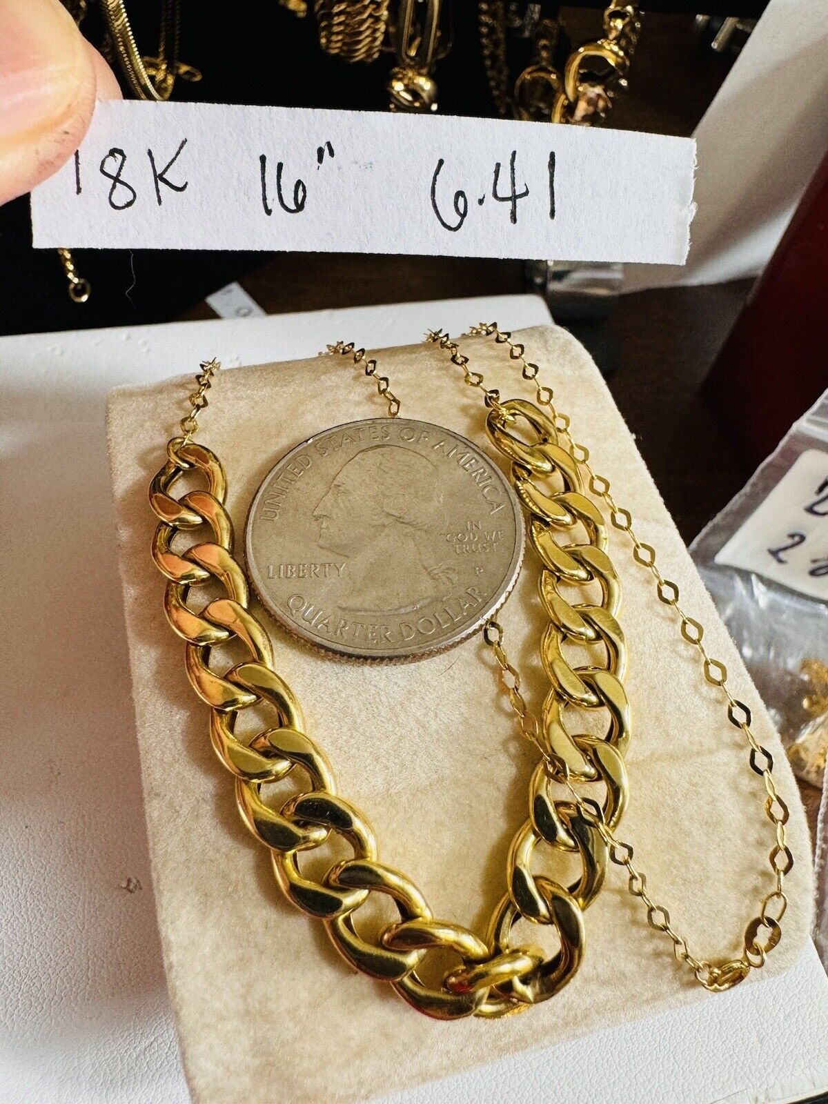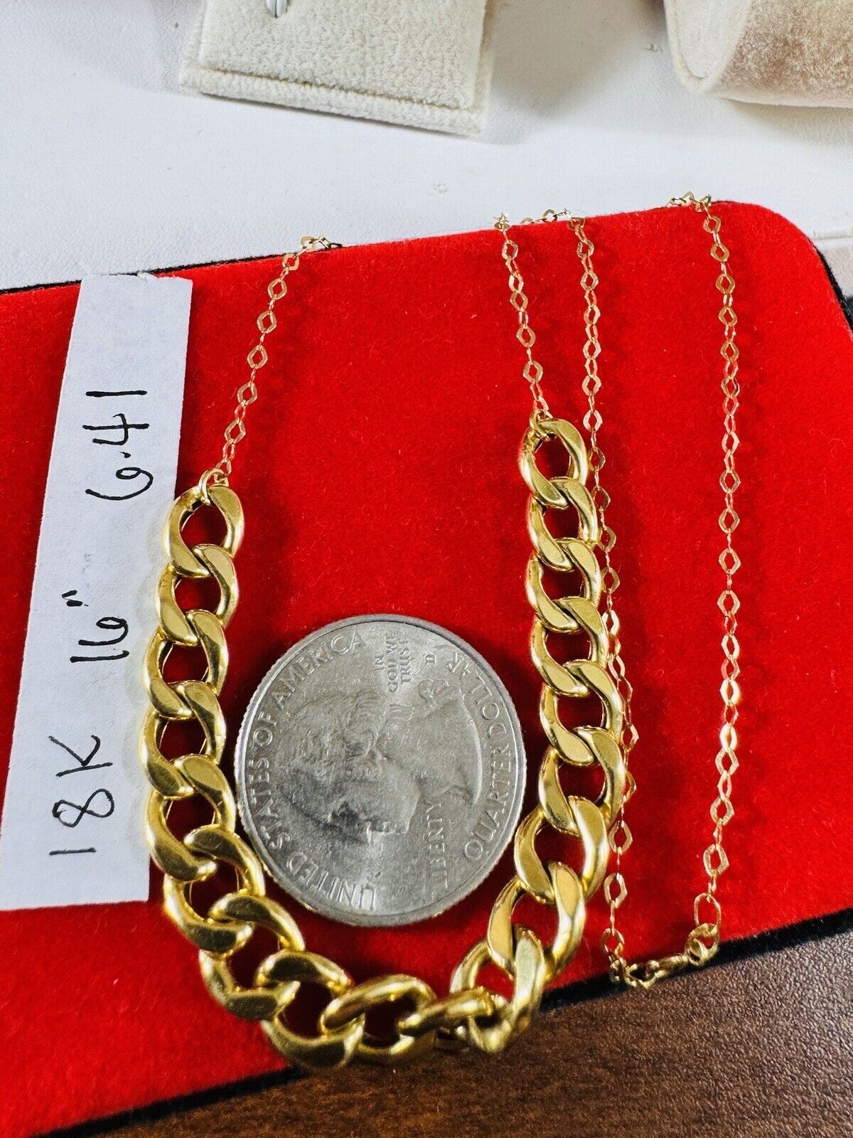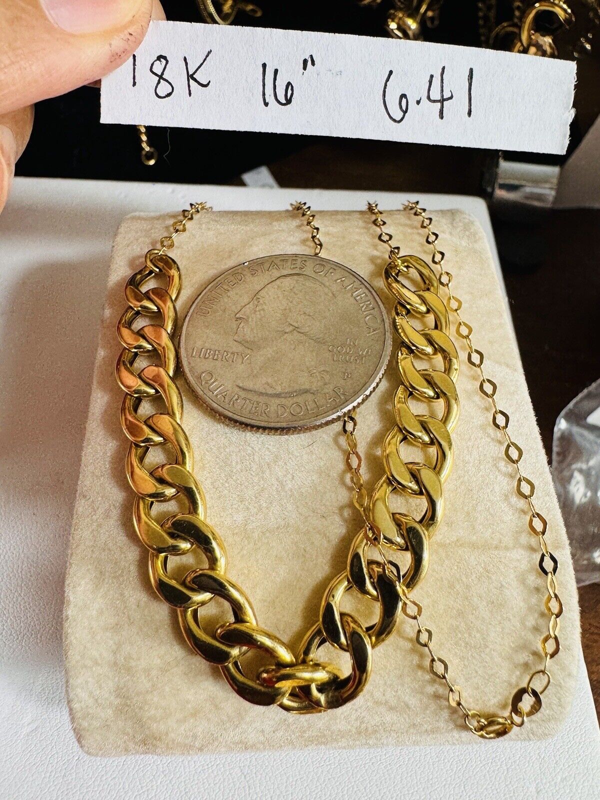 18K 750 Saudi Real Fine Yellow Gold Curb Cuban Chain Necklace 16” Long 7mm 6.4g