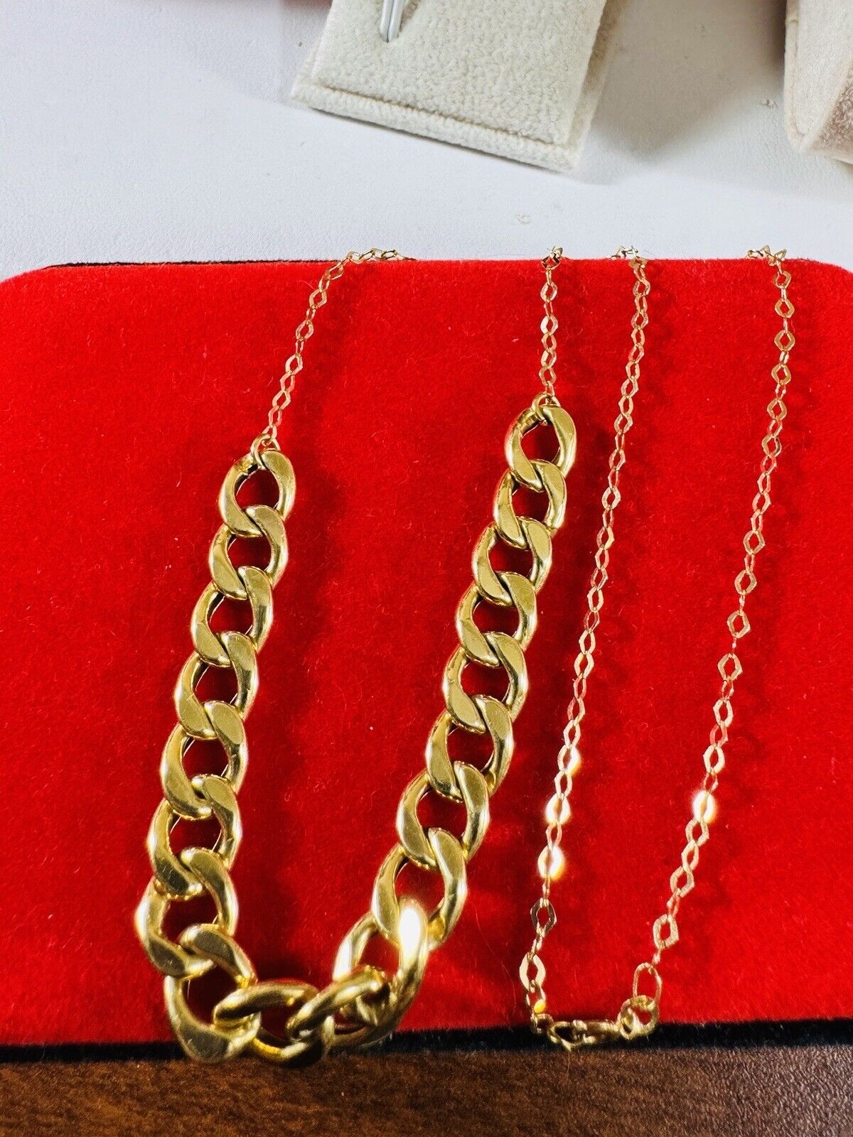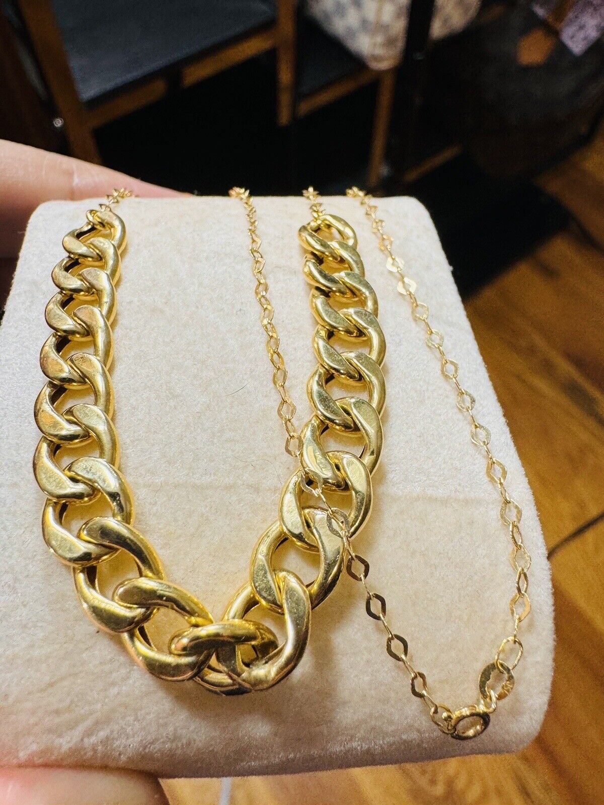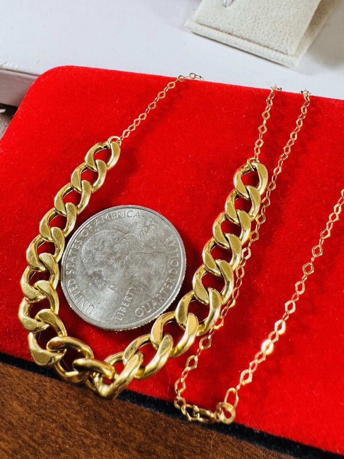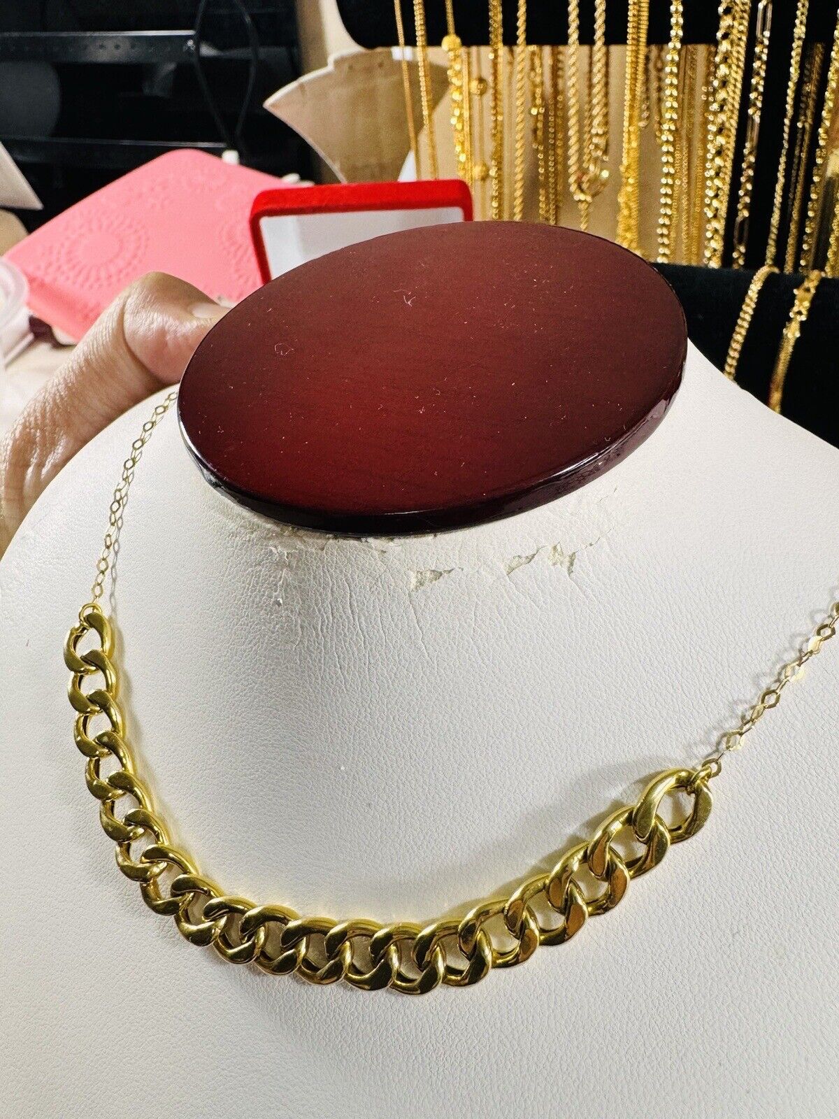 18K 750 Saudi Real Fine Yellow Gold Curb Cuban Chain Necklace 16” Long 7mm 6.4g