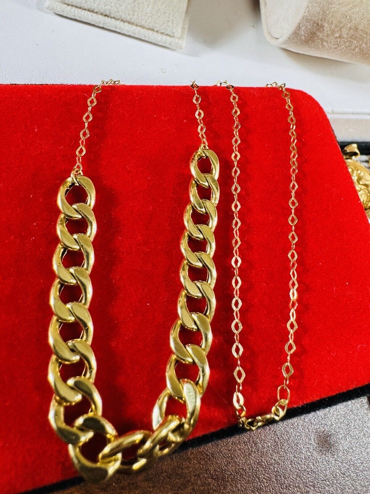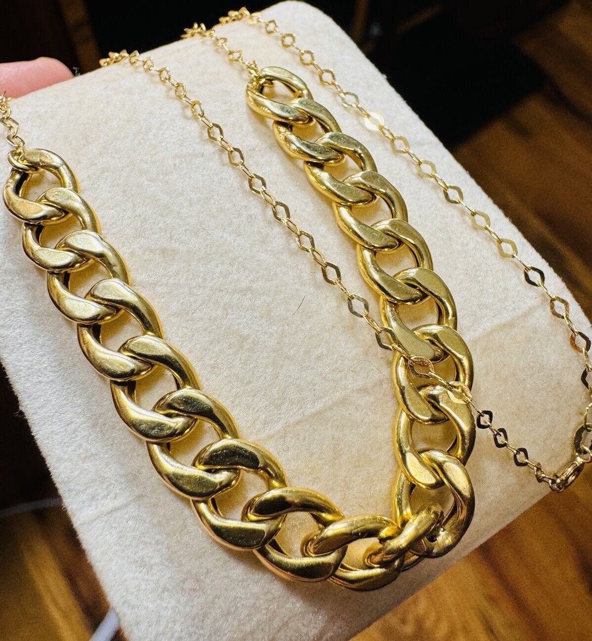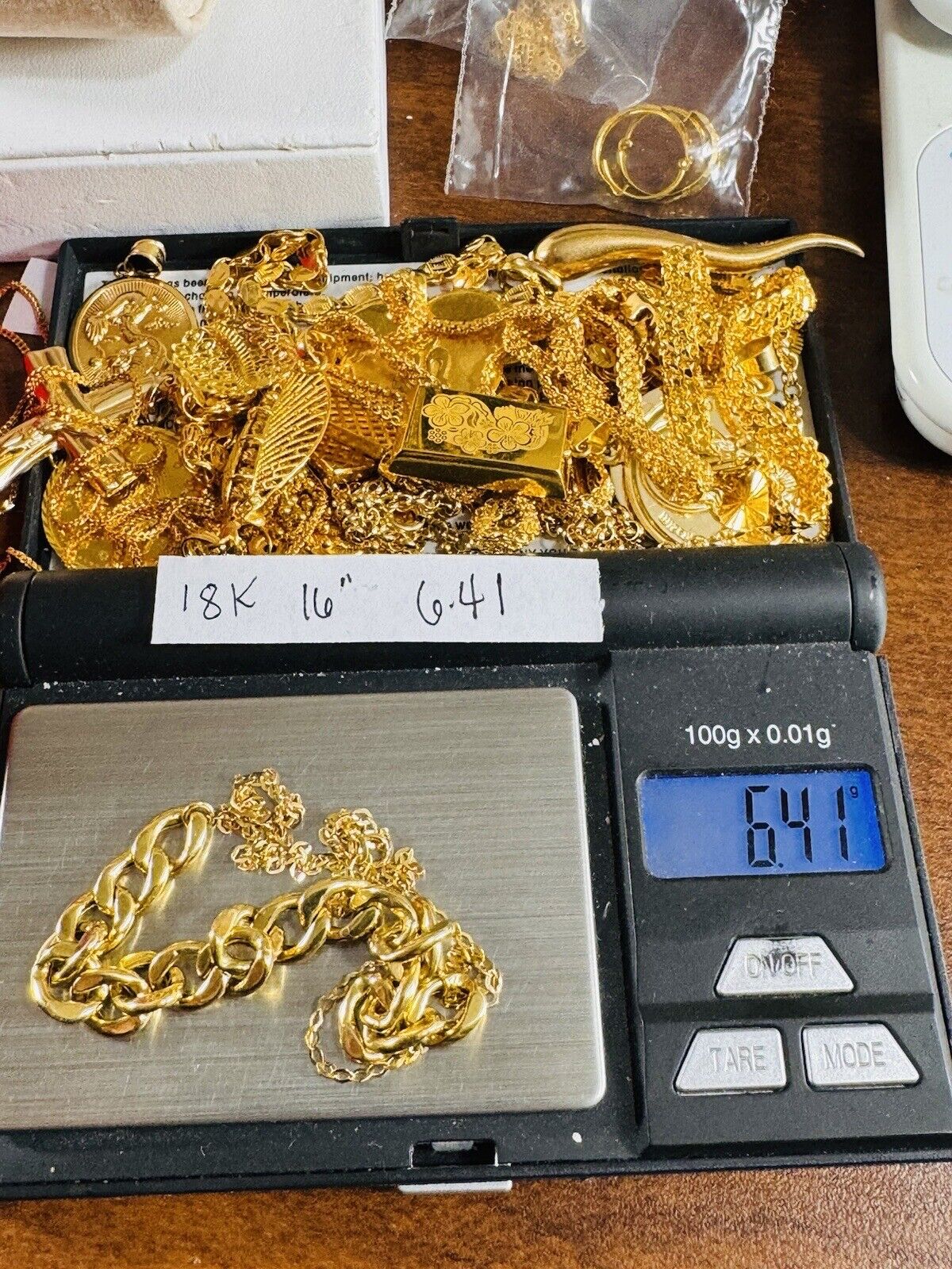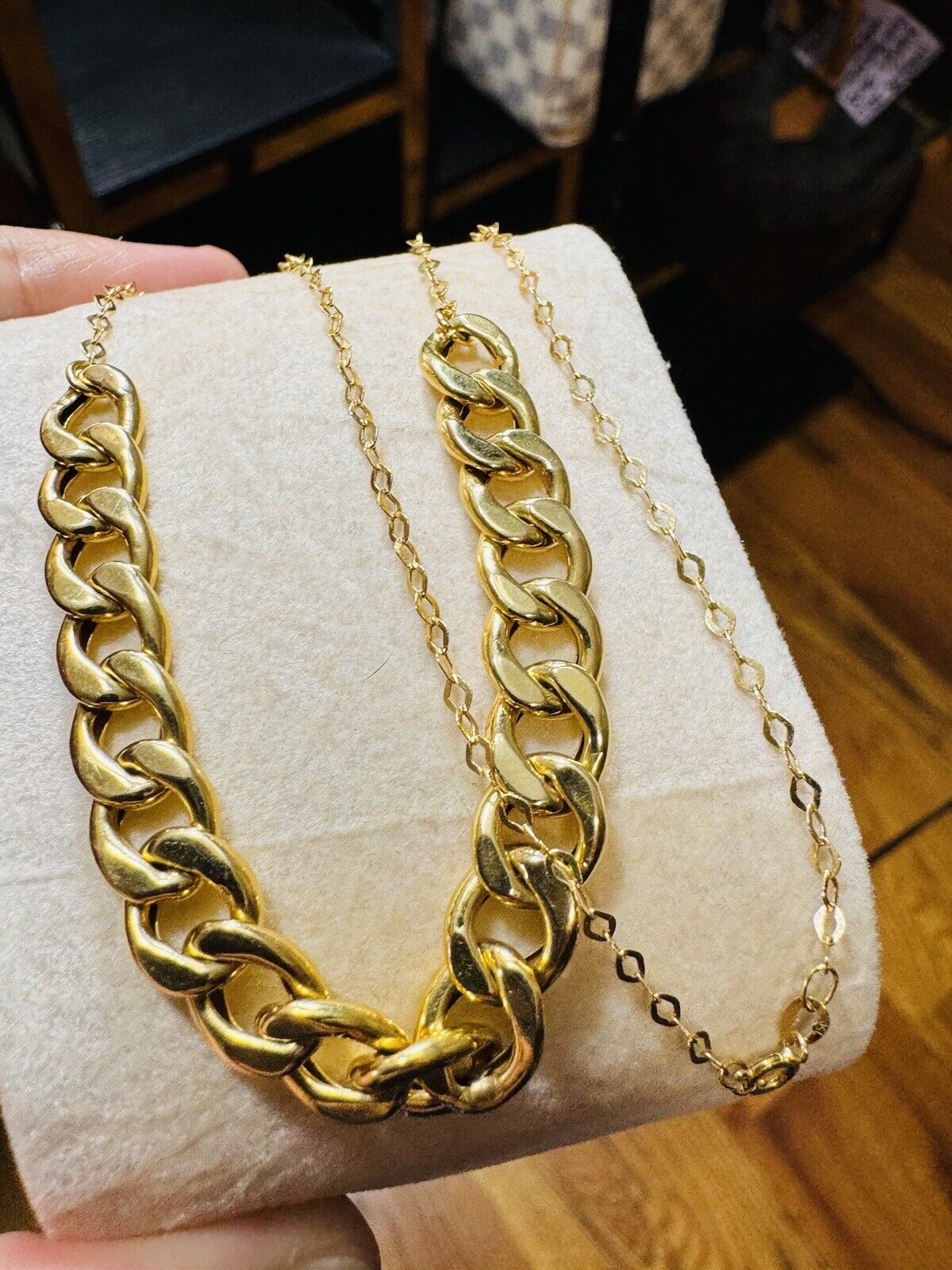 18K 750 Saudi Real Fine Yellow Gold Curb Cuban Chain Necklace 16” Long 7mm 6.4g