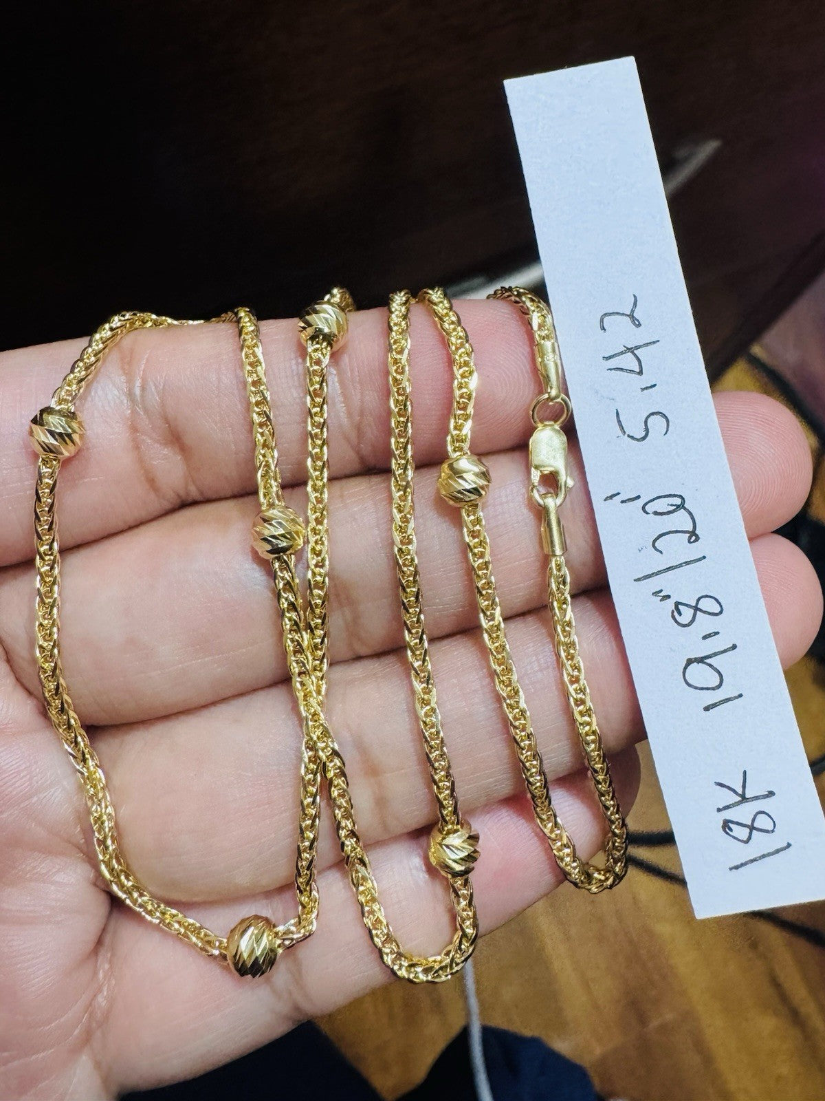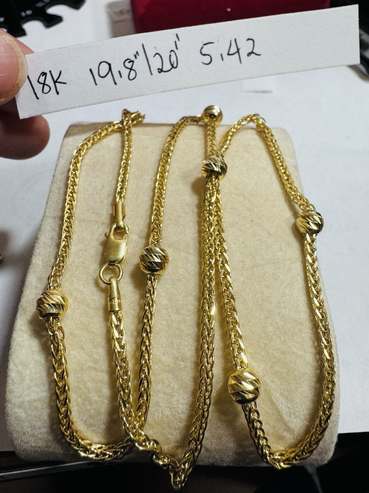 New 18C 18K 750 Fine Genuine Gold Ball Chain Necklace 19.8”/20” Long 5.4g 2mm