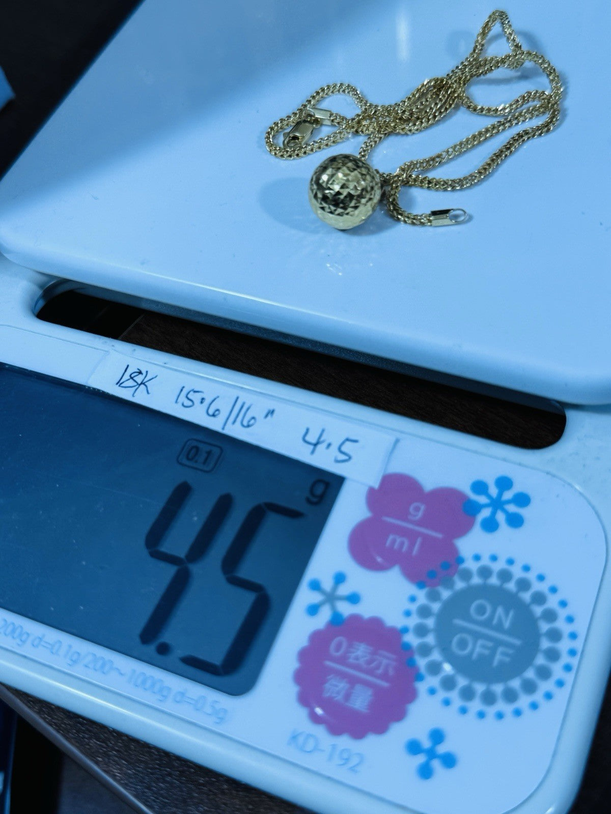 18K 750 Genuine Gold Ball Charm Necklace 15.6/16” Inch Long 4.5g 2.2mm Choker