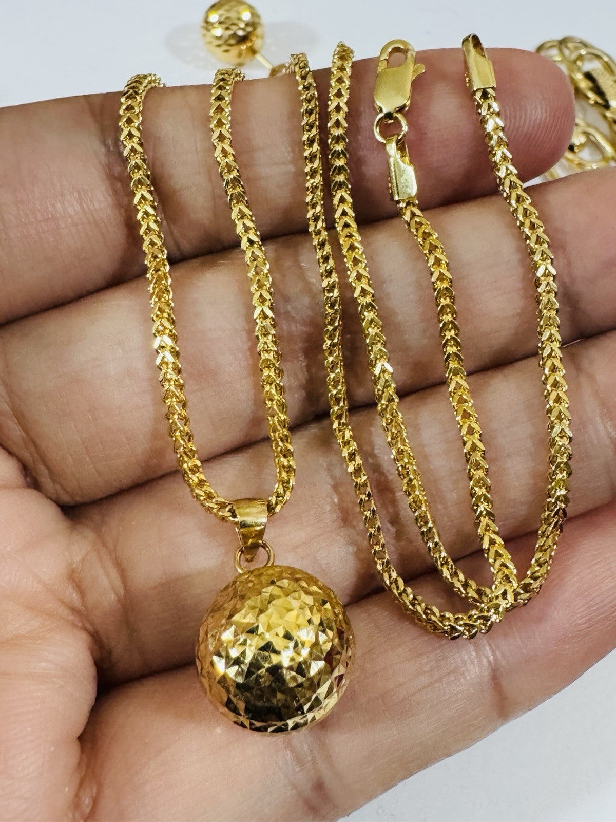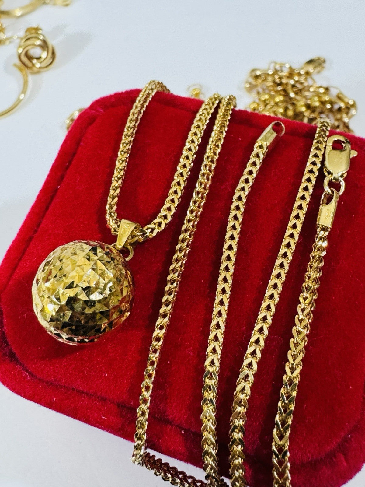 Enhanced Appearance: 18K jewelry complements the wearer's features, drawing attention to their best attributes and elevating their outfit to a more sophisticated level. For instance, a pendant necklace can highlight the collarbone