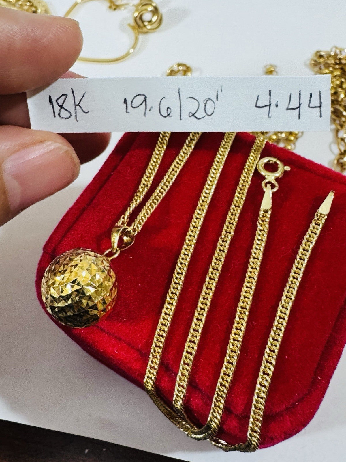 18K 750 Genuine Saudi Gold Ball Charm Necklace 19.6/20” Inch Long 4.44g 2.5mm