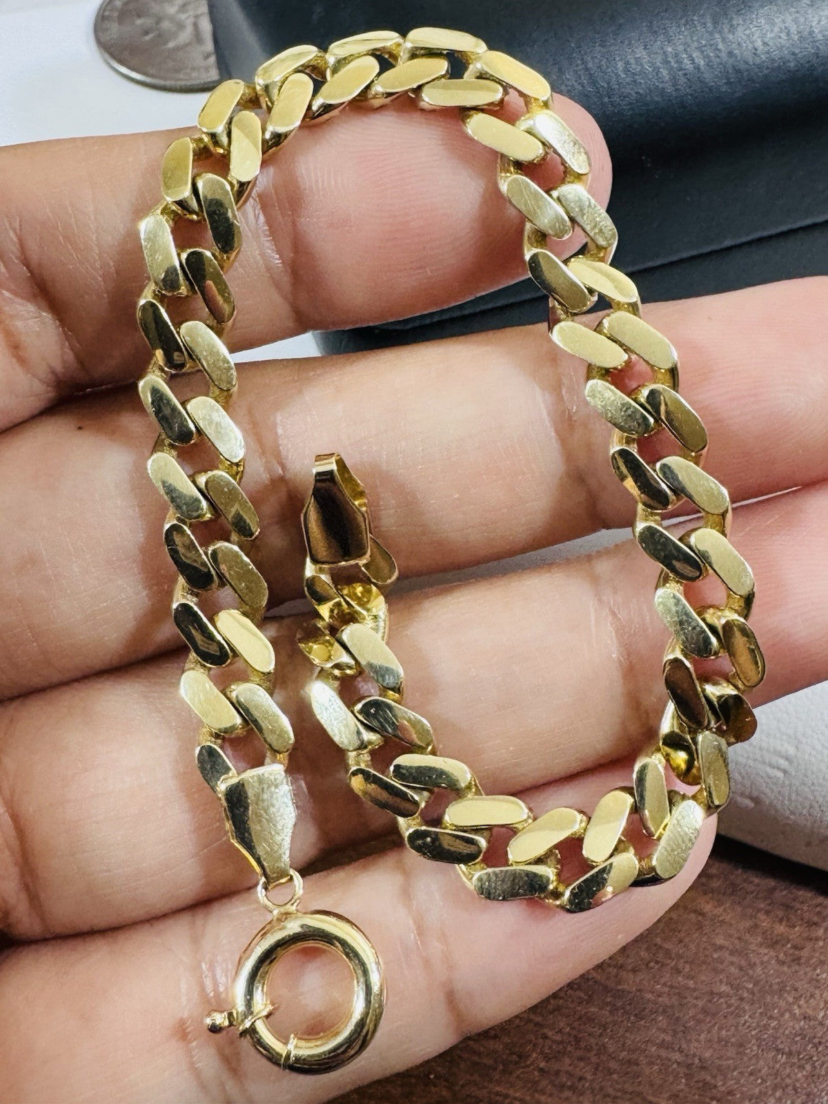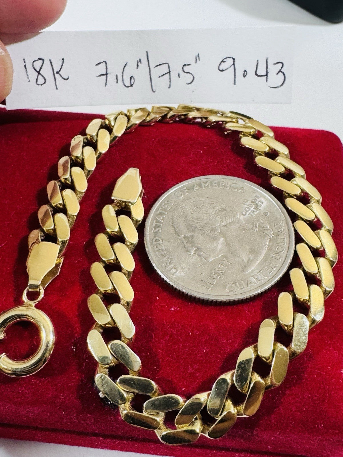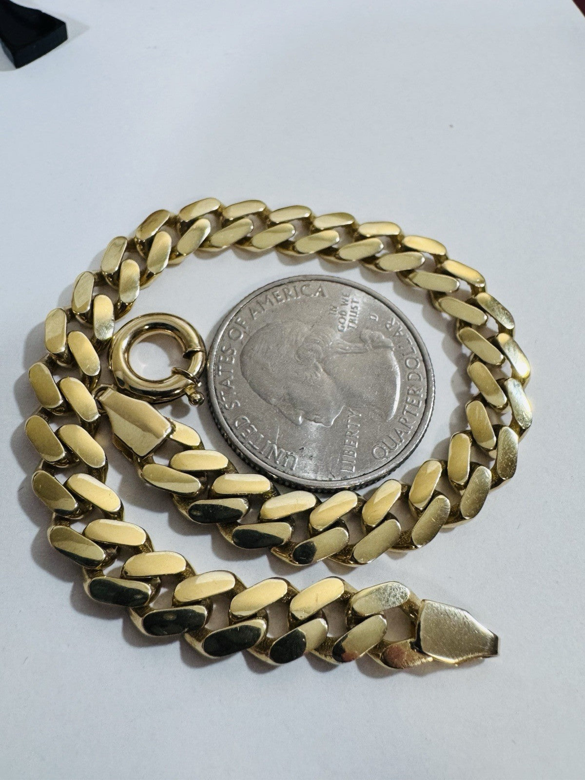 18K 750 Real Fine Pure Gold Curb Cuban Bracelet 7.5” Long 7mm 9.43g Unisex