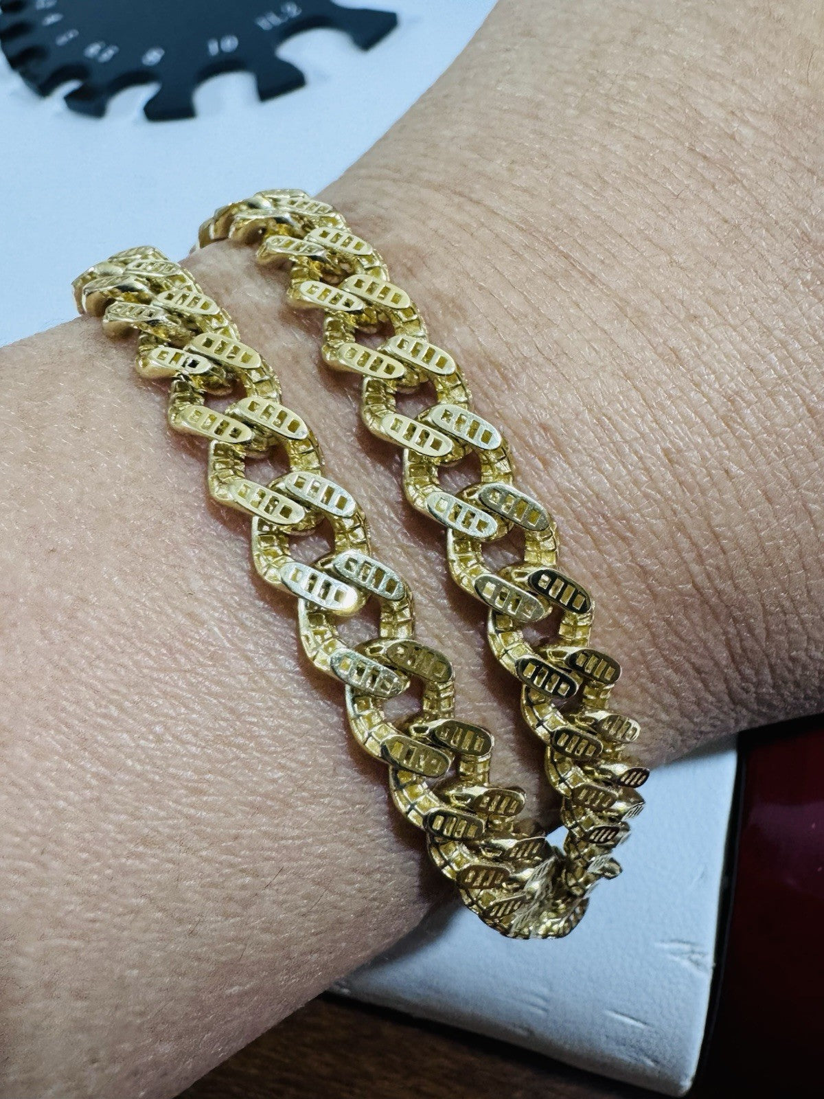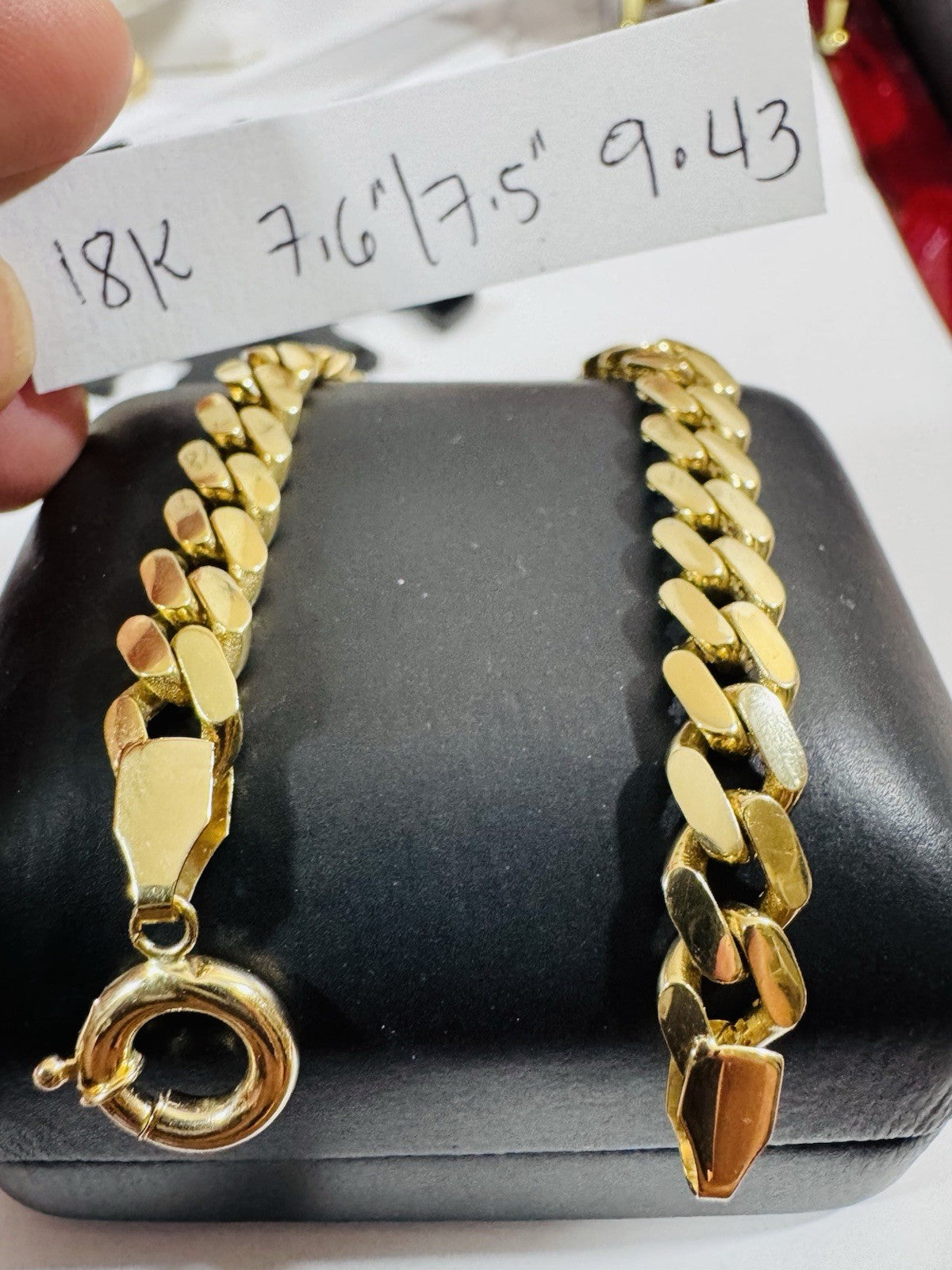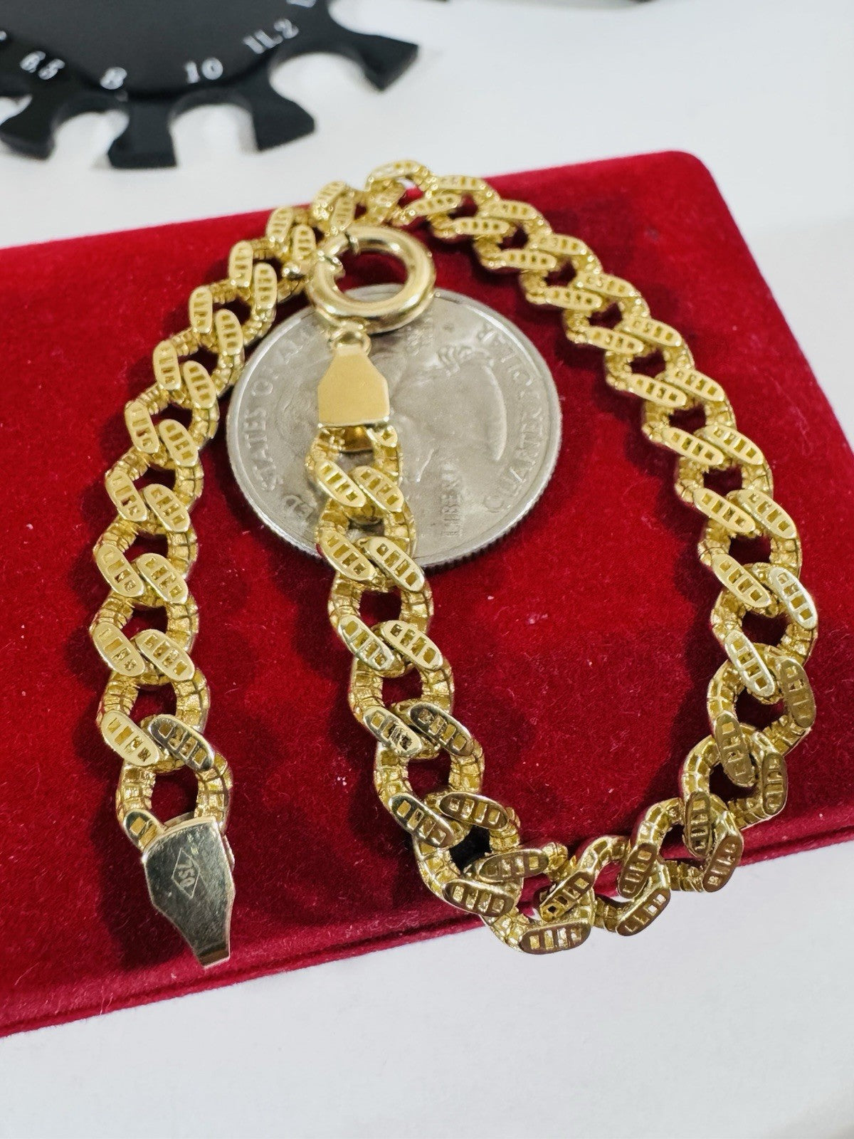 18K 750 Real Fine Pure Gold Curb Cuban Bracelet 7.5” Long 7mm 9.43g Unisex