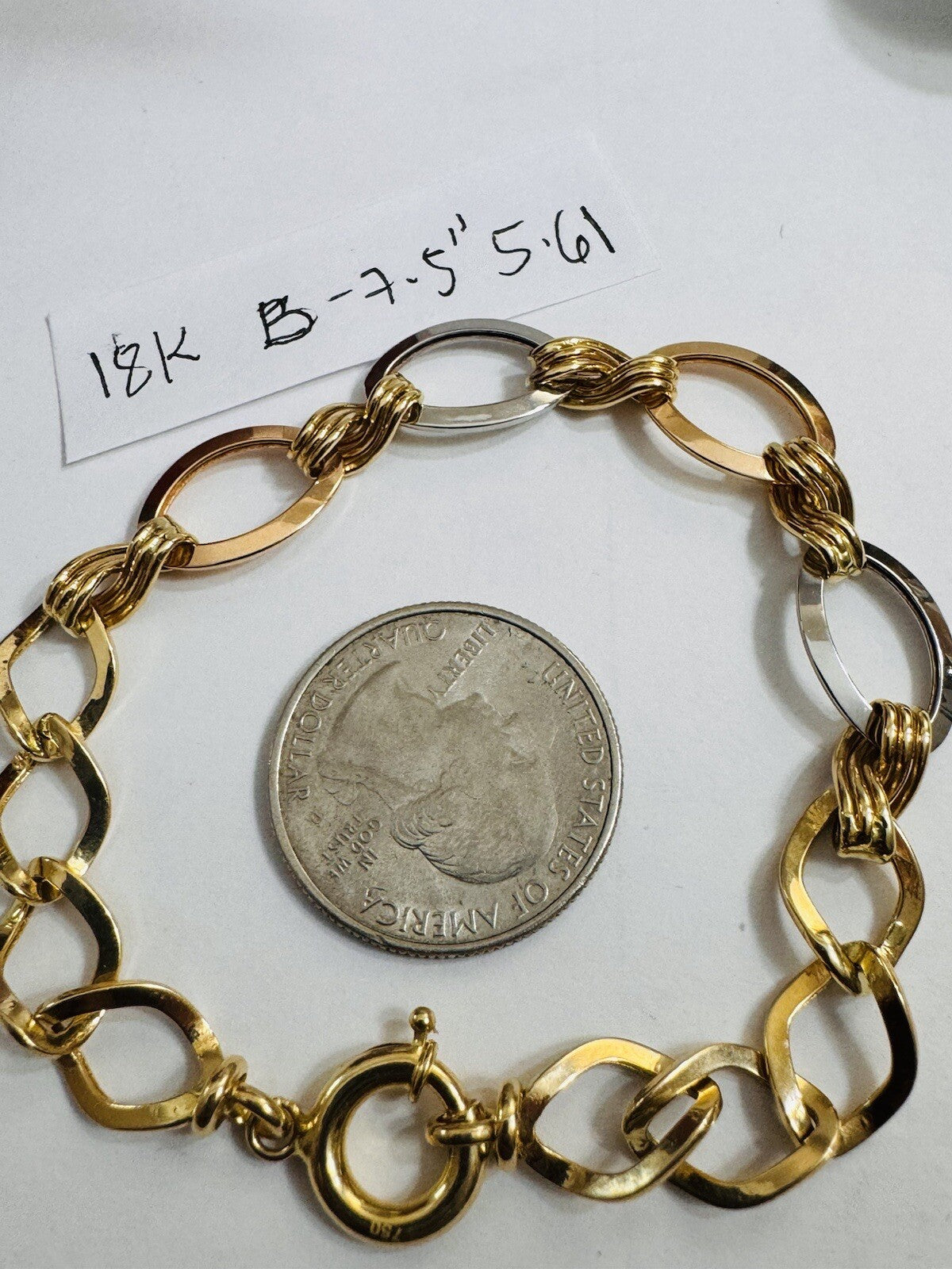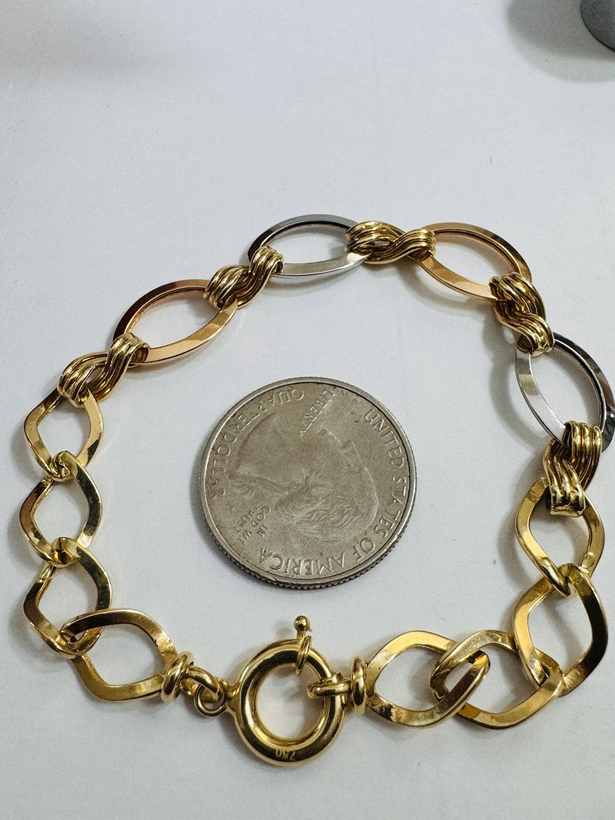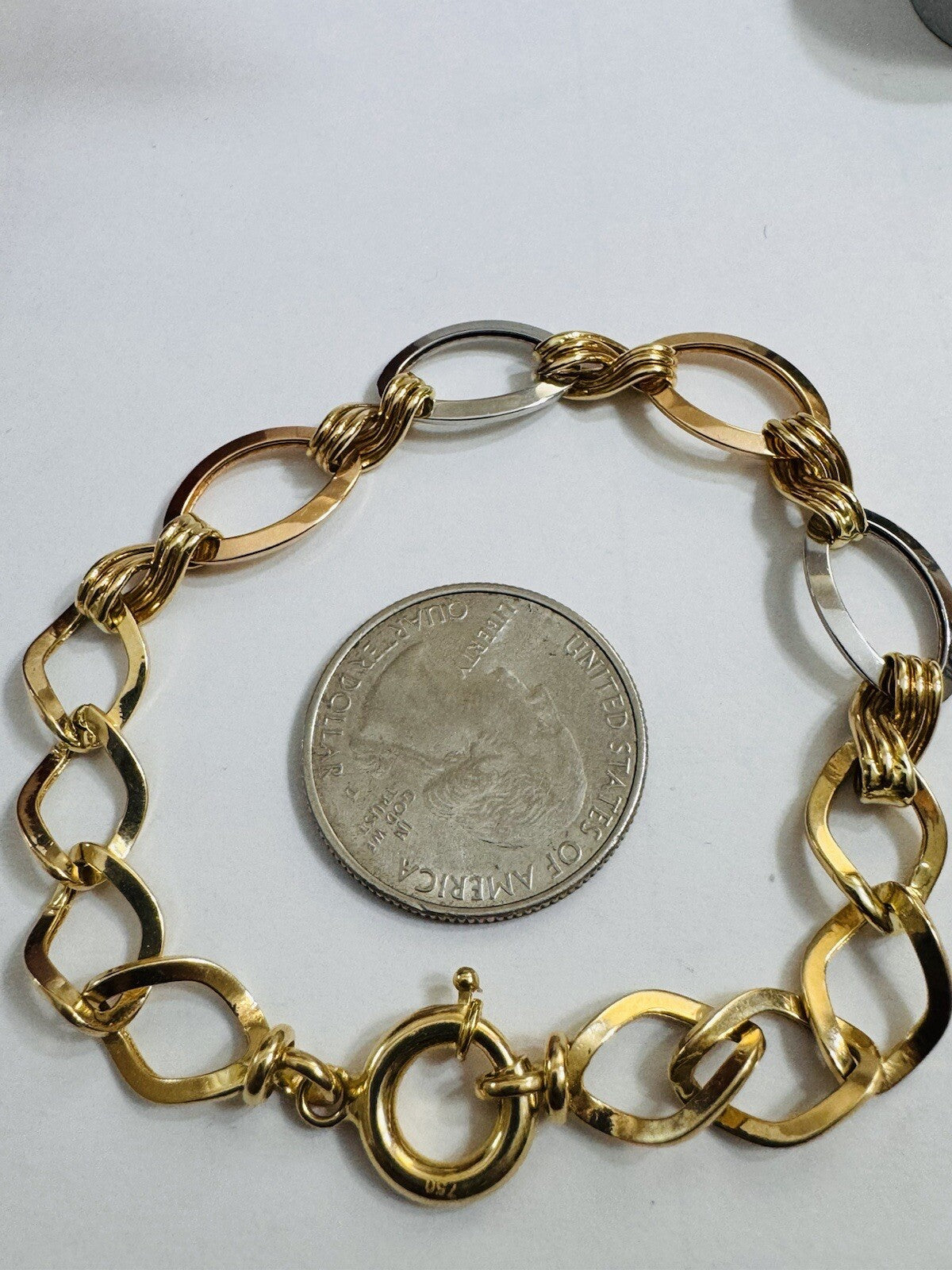 18K 750 Real Gold Cuban Curb Tricolors Bracelet 7.5” Long 9mm 5.6g